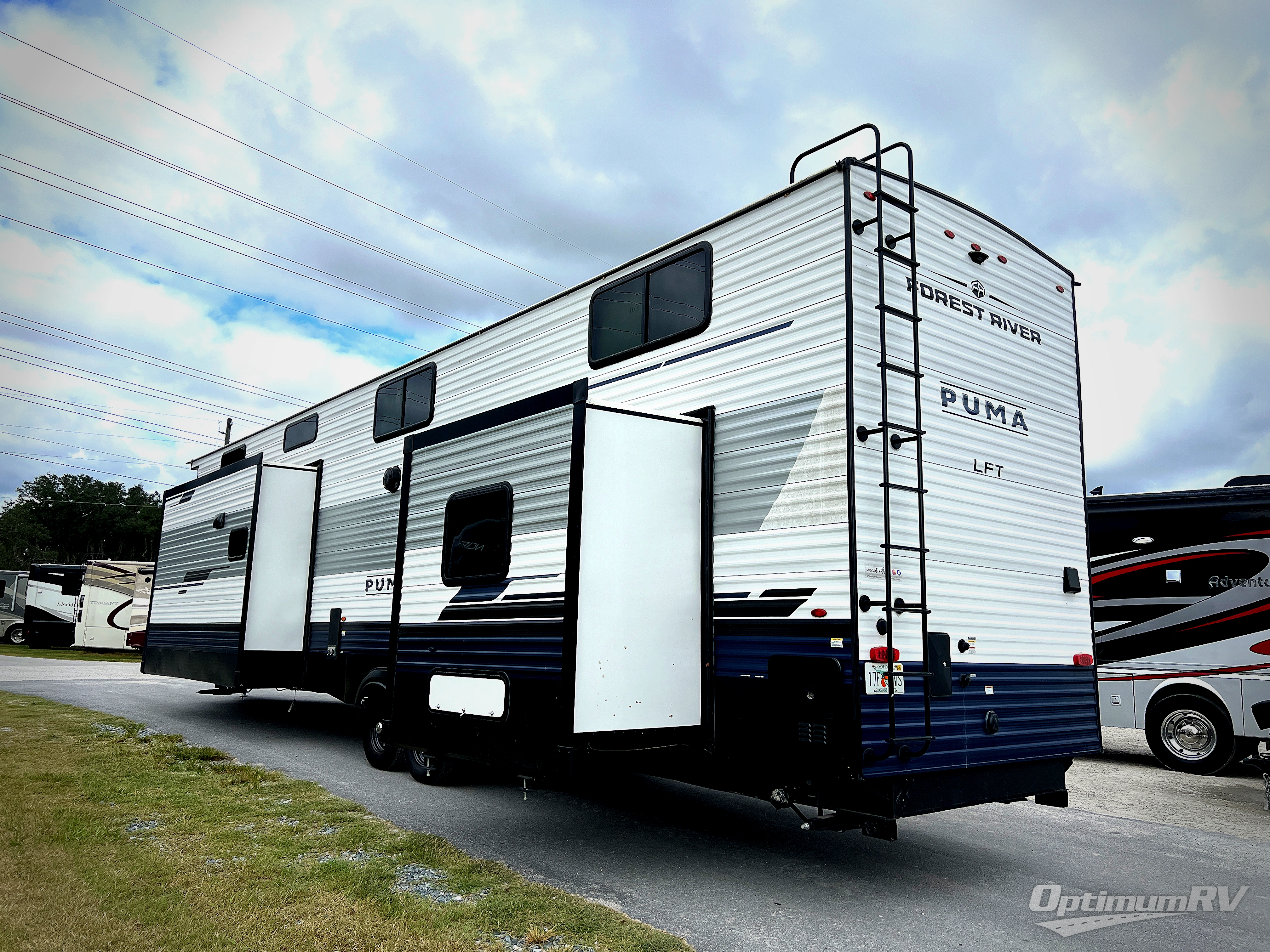 Each Puma Destination trailer by Palomino is designed to give you unforgettable getaways to the destination of your choice! The required Value Shopper Loft Package includes Congoleum designer linoleum, night roller shades, LED lighting, and a 24" stainless steel oven with a four burner stove so you can make meals just like you would at home. The tankless water heater is another feature you won't want to camp without, and there is WiFi prep, solar prep, plus optional washer and dryer prep for the option to further customize your trailer. An outside shower is included with the required Loft Package, along with two exterior speakers, solid surface countertops, four stabilizer jacks, and more!
