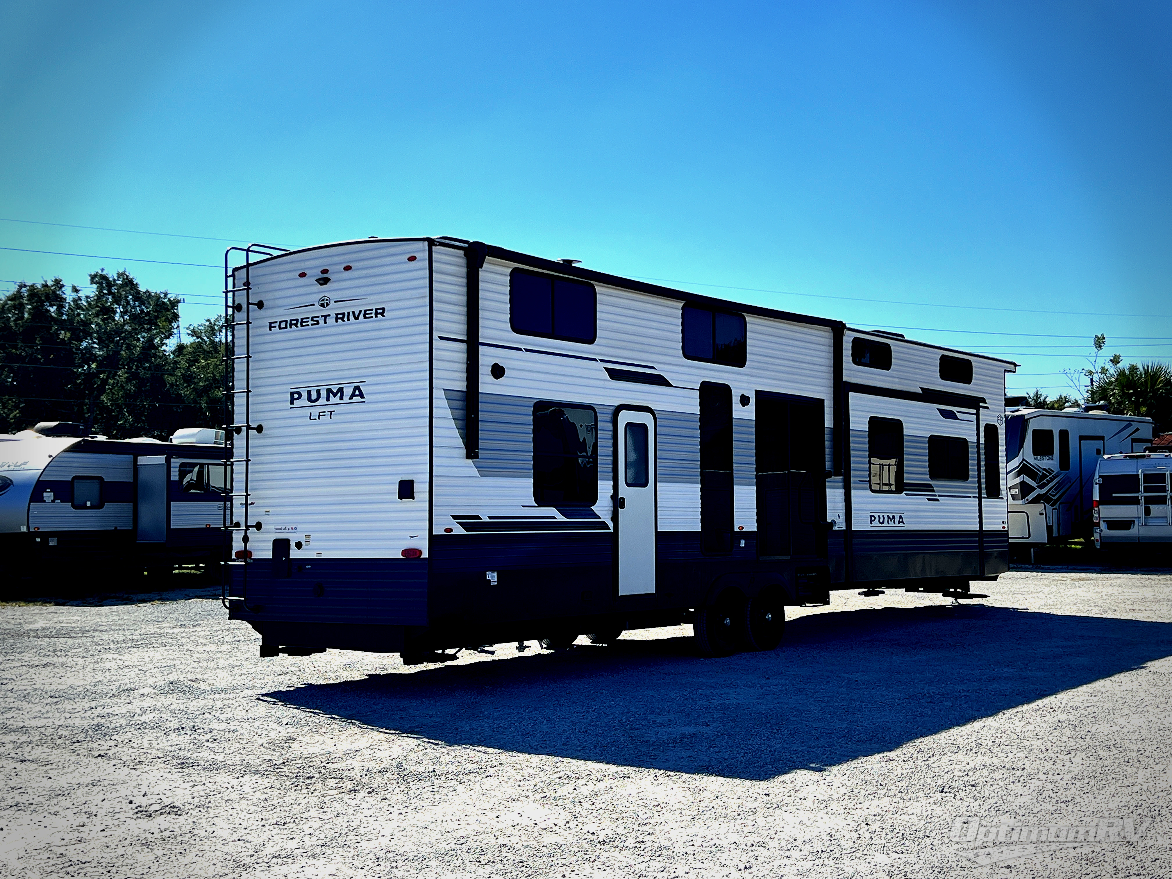 Each Puma Destination trailer by Palomino is designed to give you unforgettable getaways to the destination of your choice! The required Value Shopper Loft Package includes Congoleum designer linoleum, night roller shades, LED lighting, and a 24" stainless steel oven with a four burner stove so you can make meals just like you would at home. The tankless water heater is another feature you won't want to camp without, and there is WiFi prep, solar prep, plus optional washer and dryer prep for the option to further customize your trailer. An outside shower is included with the required Loft Package, along with two exterior speakers, solid surface countertops, four stabilizer jacks, and more!
