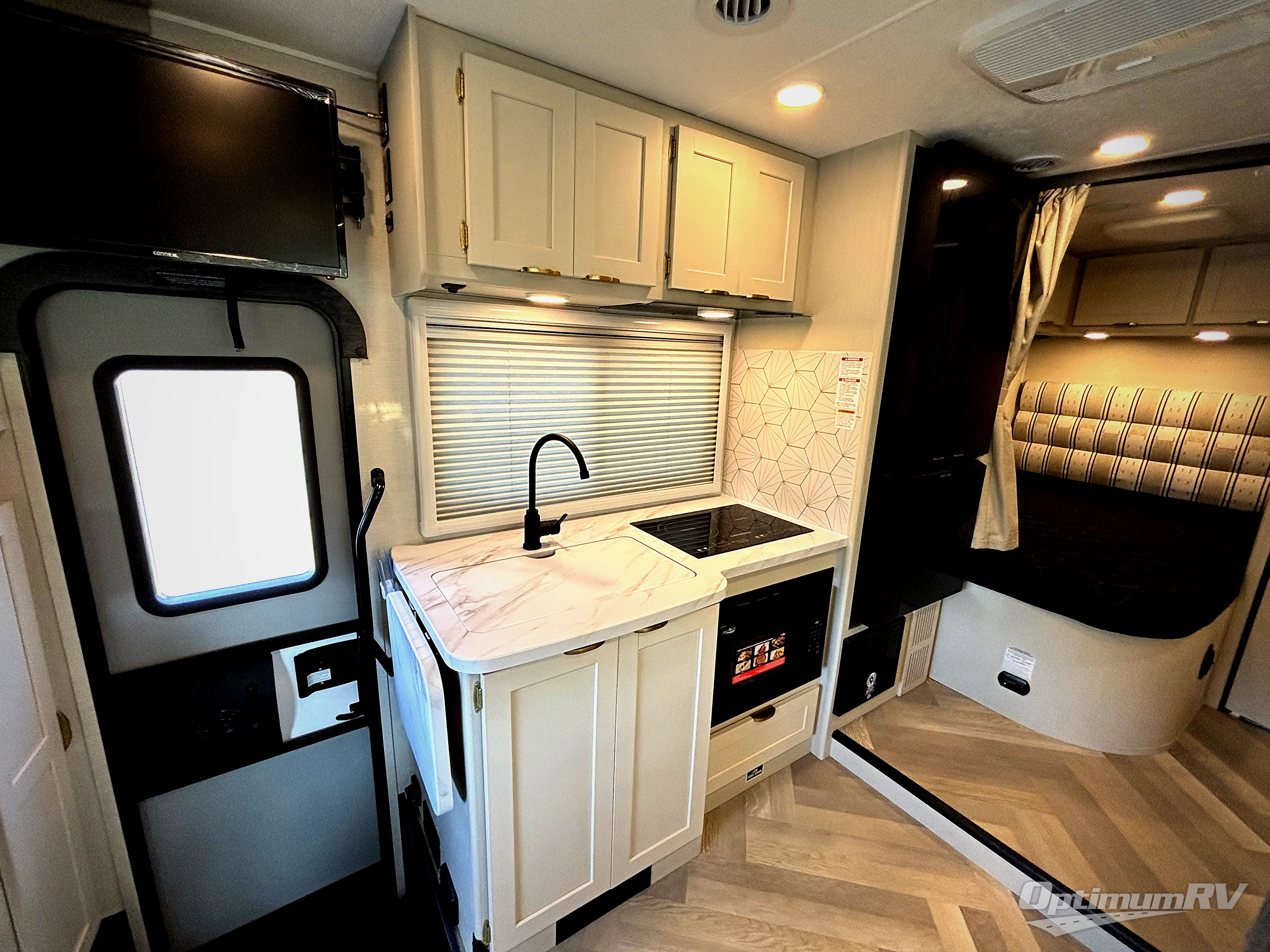 You will find comfort, convenience, and affordability in this Prism Select Class C diesel motorhome! The kitchen is equipped with a two-burner induction cooktop, large sink, 12V refrigerator, countertop extension, and a pantry so that you can eat your favorite meals no matter where you are. You can also enjoy those meals at the dinette. Sleeping space is easy to find in this coach because there is a full-size bed and a bunk above the cab, and the dinette can also provide sleeping space once it's folded into position. This coach gives you the opportunity to customize as you wish because it comes with a couple of options, like the optional recliners in place of the dinette, an optional cockpit folding table, or optional 200W roof solar power!