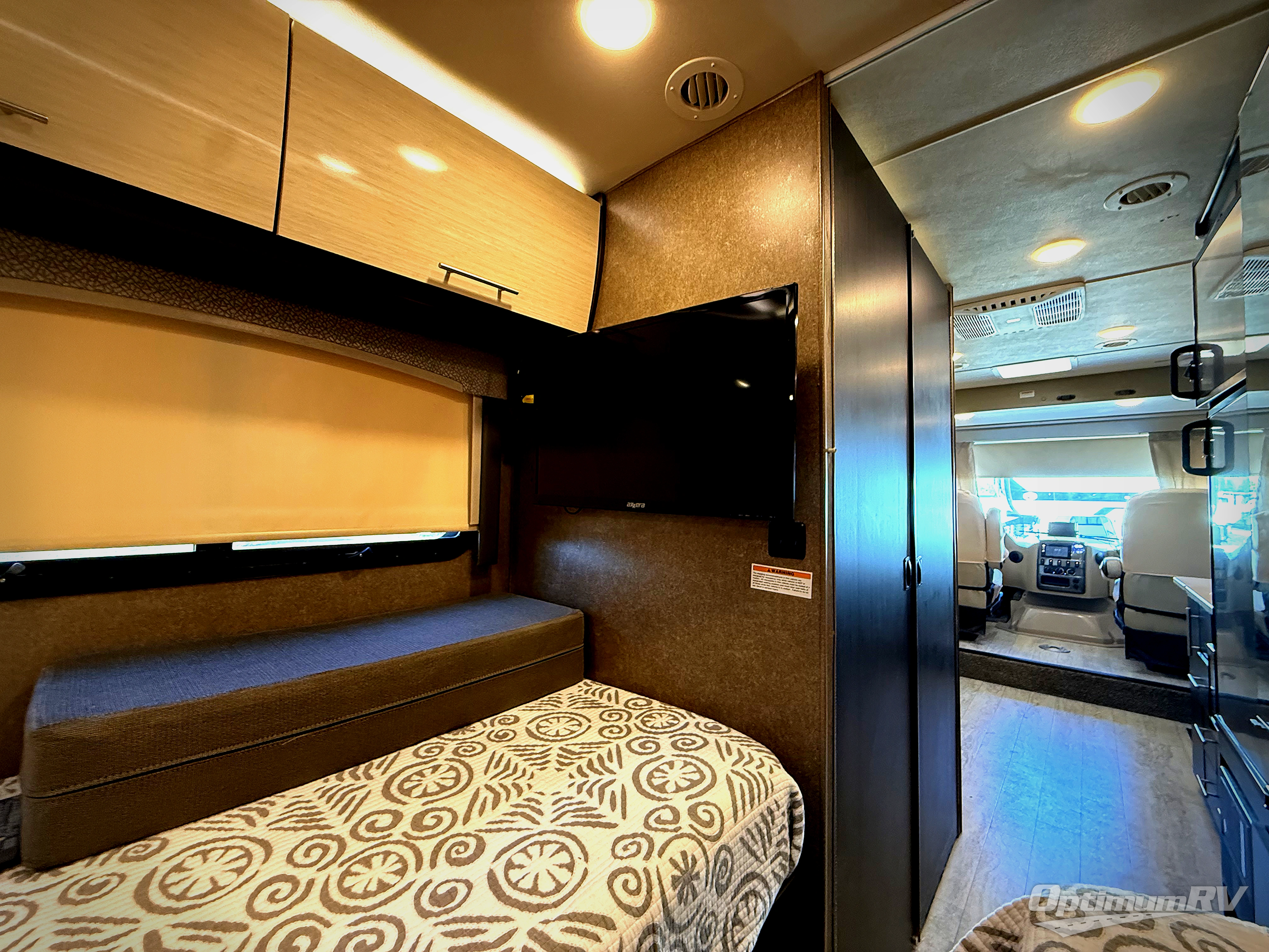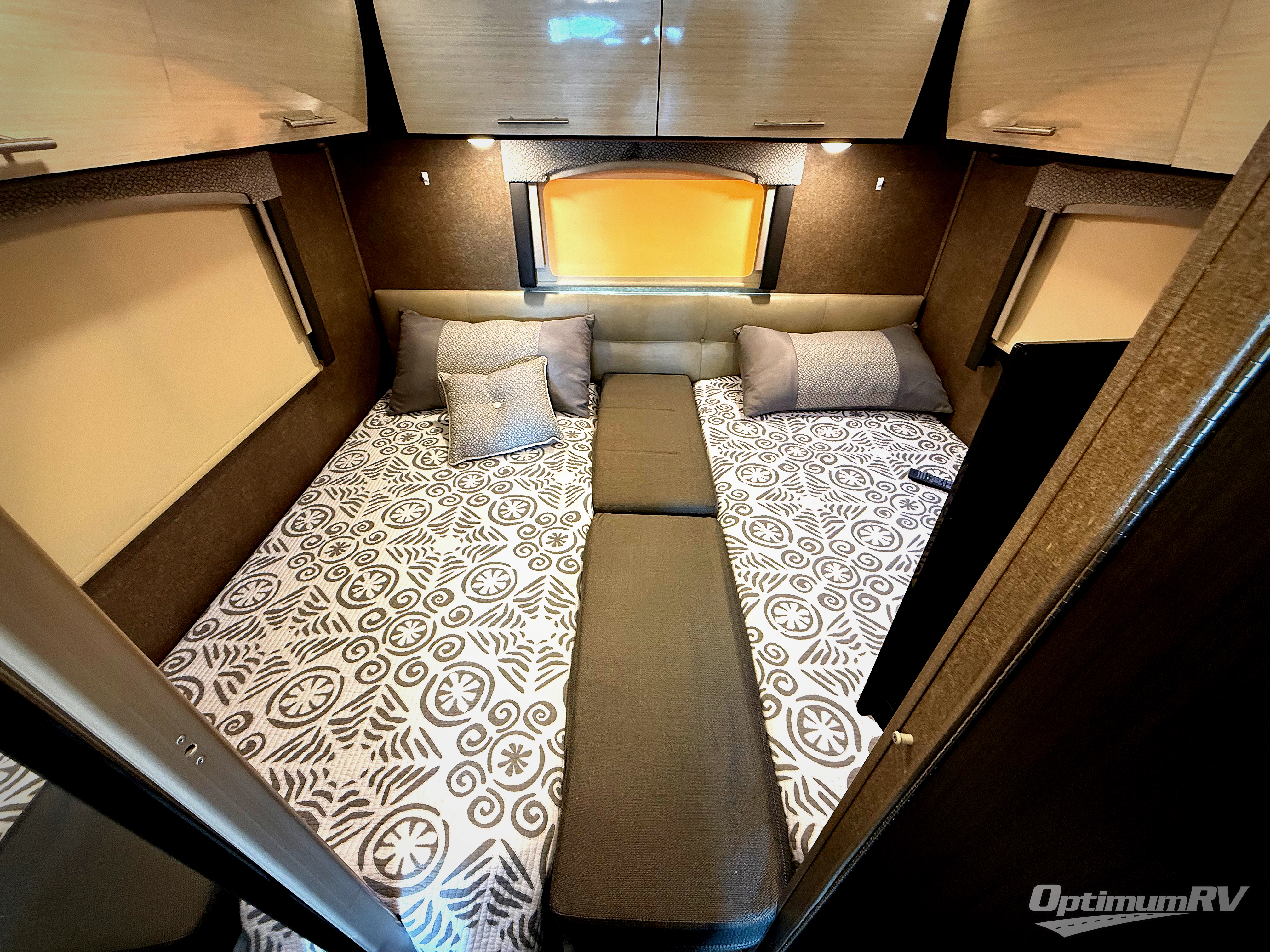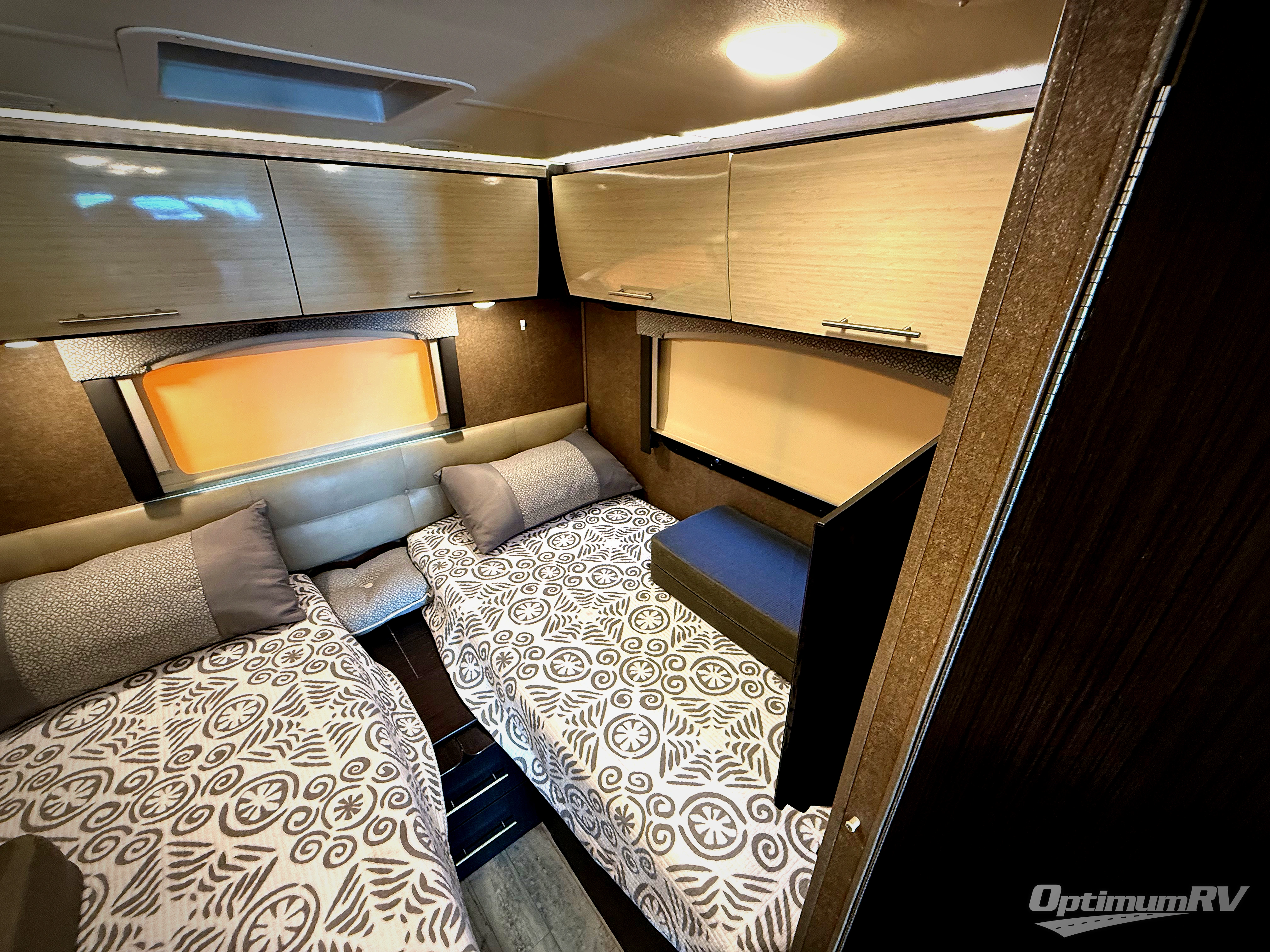 The very rear features two 38" x 75" twin beds with a small nightstand between including storage below. If you would like a little more sleeping space, the twin beds will convert to a king size bed. There is a 32" LED TV to enjoy here as well.