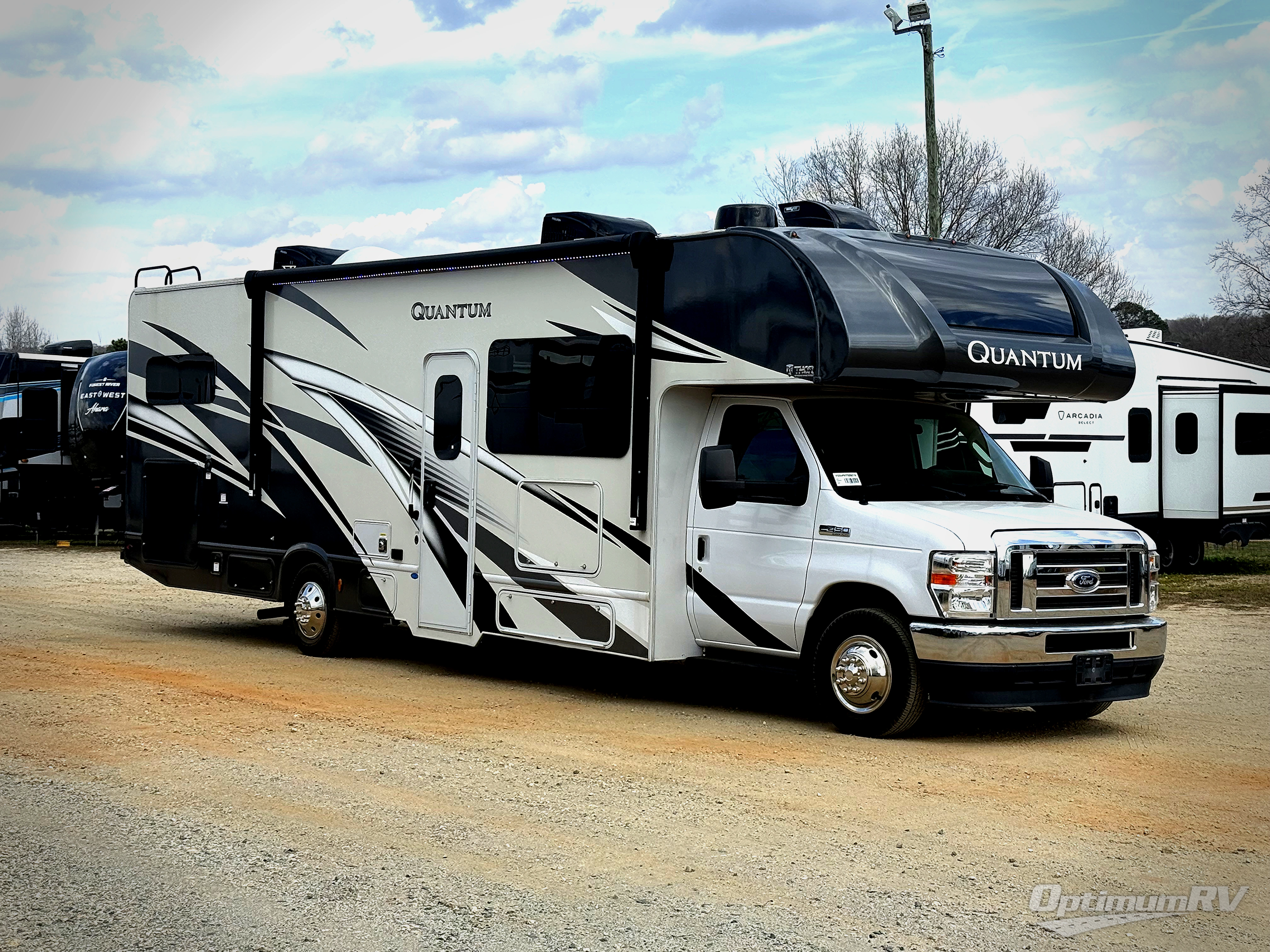 With any Quantum Class C gas motorhome, the construction includes a welded tubular steel floor, a welded tubular aluminum roof and sidewall cage construction, premium one-piece exterior roofing, plus frameless slider windows. The interior offers decorative glass inserts in the kitchen overhead cabinet doors and kitchen accent countertop lights for style, full extension metal ball-bearing drawer guides, plus a 7-inch touchscreen dash radio with Google Android Auto-Apple CarPlay with a back-up monitor the driver will appreciate. all 31-foot Quantum motorhomes offer the SmoothTECH ride suspension by Mor-Ryde to provide you the most comfort as you travel. No more dreaming, you can choose your favorite Quantum and start your RVing lifestyle!