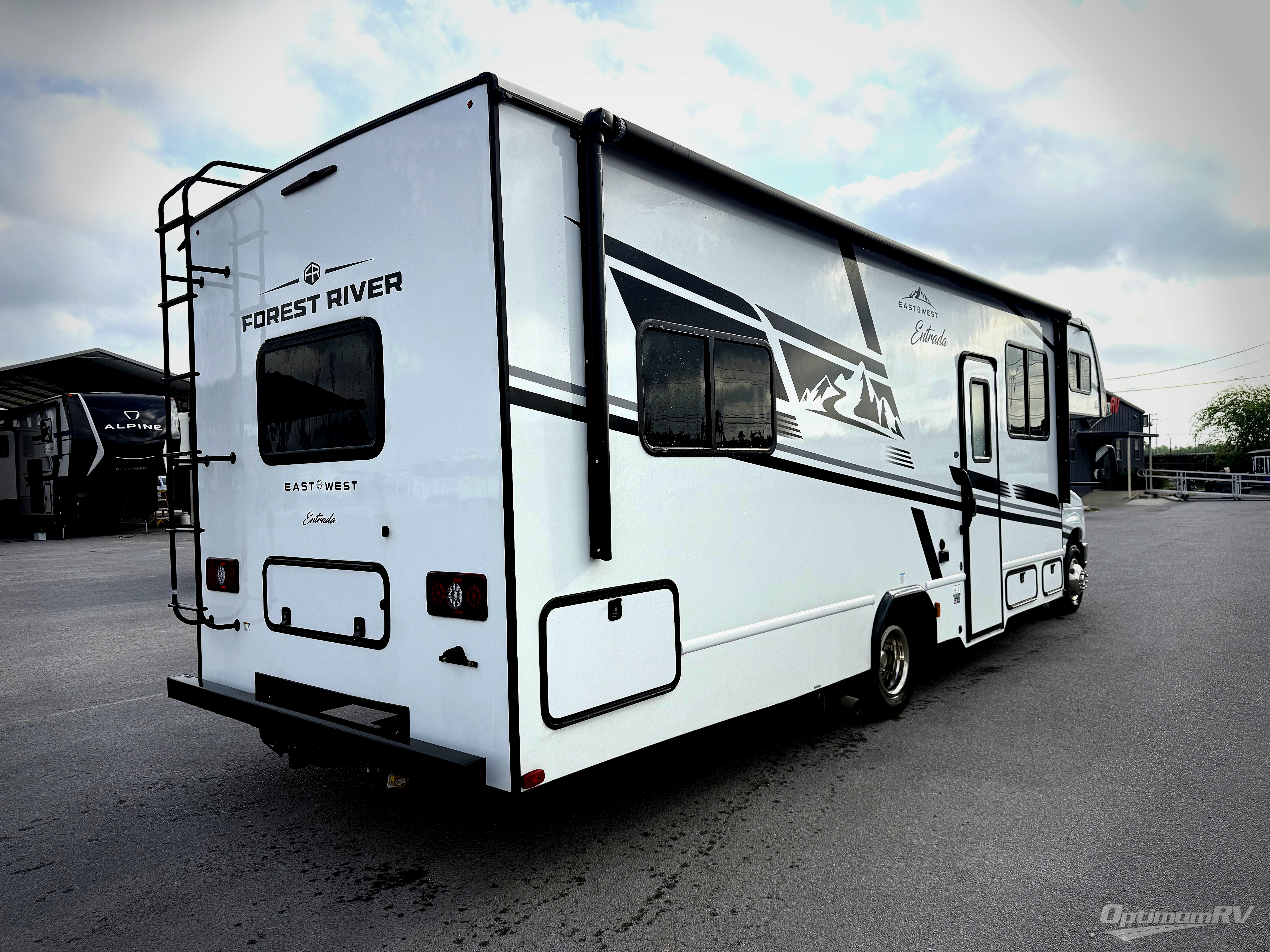 With any Entrada Class C gas motorhome from EAST TO WEST, the construction consists of a one-piece painted fiberglass front cap, a TPO roof membrane, and 2" Azdel composite sidewalls for added durability. There are rotocast exterior storage compartments with slam latch doors, along with an exterior LP Quick Connect, and a power awning with an LED light strip. You will also find rear and sideview cameras to help make maneuvering and parking your RV easier than ever. Inside, you'll feel right at home with soft close hardwood cabinet doors and drawers, a high-altitude tankless water heater, plus a 12V smart TV and USB ports to keep your electronics charged up!
