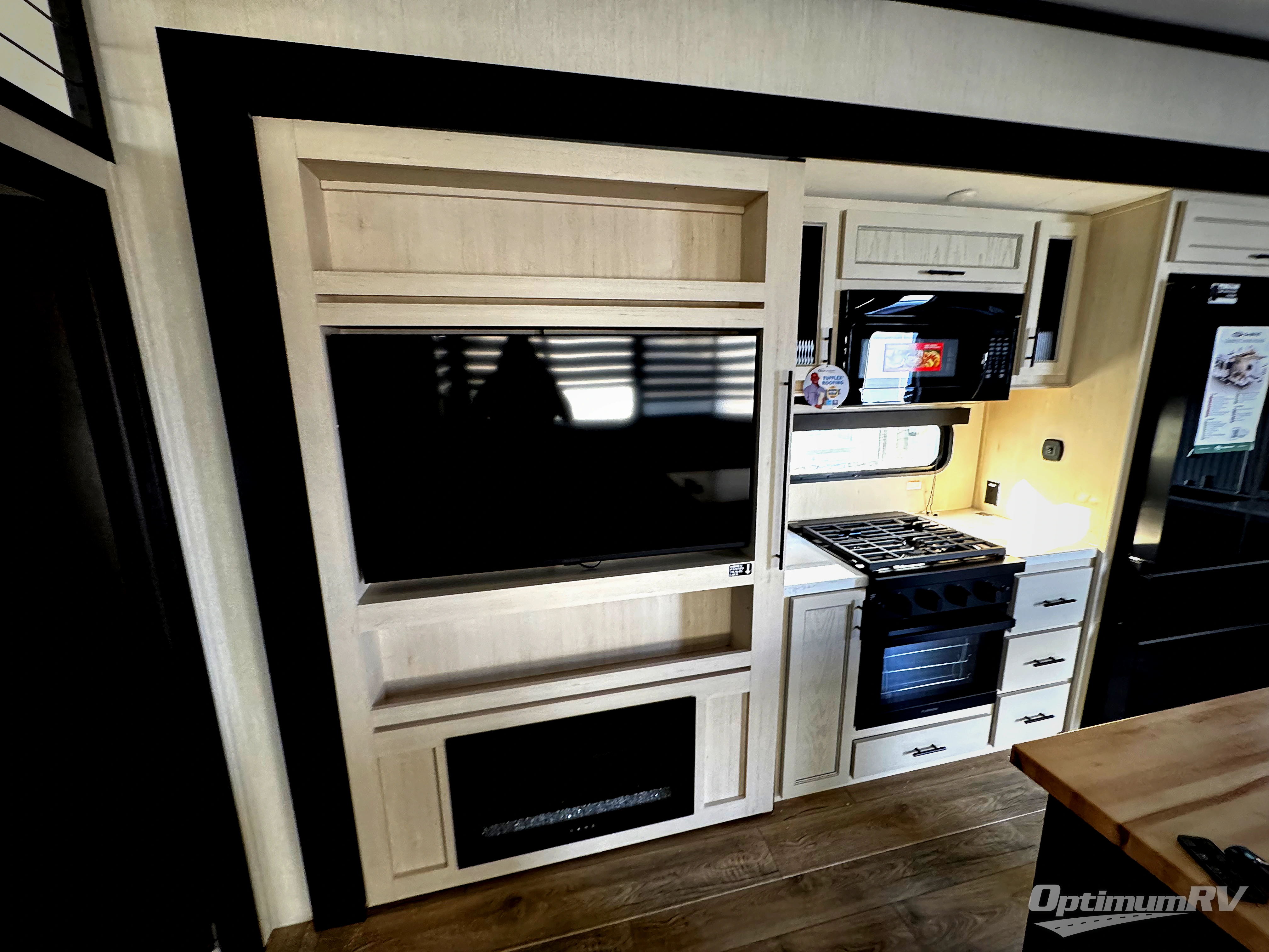 You will experience luxurious camping trips at an affordable price with any one of these Forest River Cherokee Sabre fifth wheels! These models are durable and ready to travel anytime of the year thanks to features like the high-gloss gel-coat front cap with LED lighting, the PVC roof membrane, and the forced air underbelly with enclosed gate valves. The electric auto-leveling system makes setting up easy and safe, and the adjustable power awning with LED lighting will create an inviting outdoor living space. Each model includes a universal docking station which includes a black tank flush and an outside shower, and adjustable stable steps for you to enter and exit the unit safely. Inside, you will love the design of the ambient accent lighting in the living area, the real wood lumbercore cabinetry, and the linoleum flooring!