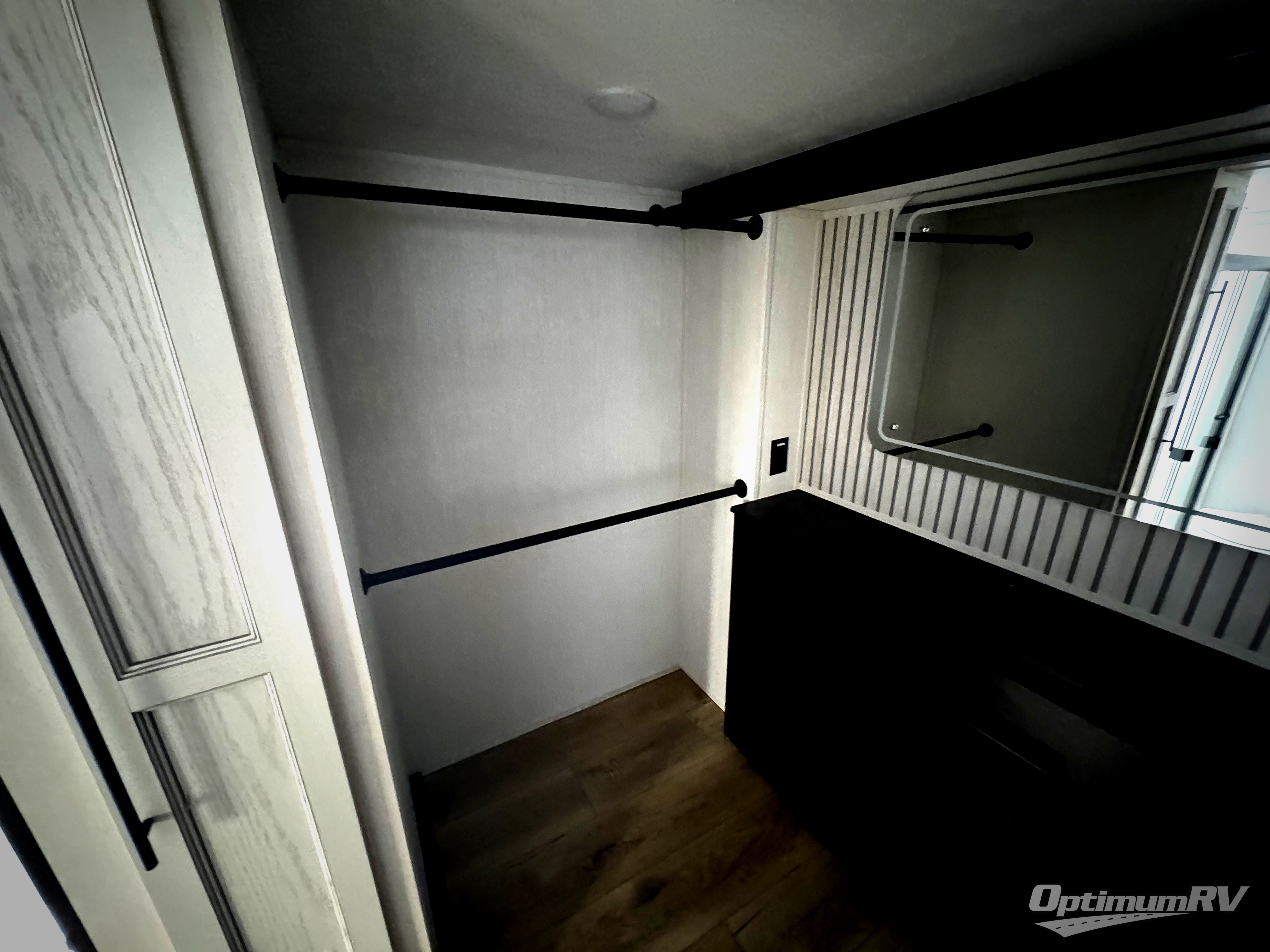 Get ready to elevate your travels to new heights with this show-stopping fifth wheel, designed for thrill-seekers. The rear kitchen is a culinary powerhouse, featuring a spacious layout, overhead cabinets, ample countertop, three-burner cooktop, microwave, oversized fridge, and pantry. In the living area section, the sectional sofa creates a warm and inviting space, perfect for socializing, relaxing, and making memories. The fireplace crackles with warmth, while the entertainment center provides endless entertainment options. Also, the dinette is a charming spot for meals, laughter, and storytelling. Unwind and recharge in style, with plenty of room to get ready for the day ahead, thanks to the full bath with dual sinks, ample dresser space, and a half-bath in the middle of this unit for added convenience. Moving to the main bedroom, the camper king bed is perfect for a restful night's sleep, and the dresser with hidden storage keeps your belongings organized, while the projector above the dresser adds a touch of magic to movie nights.
