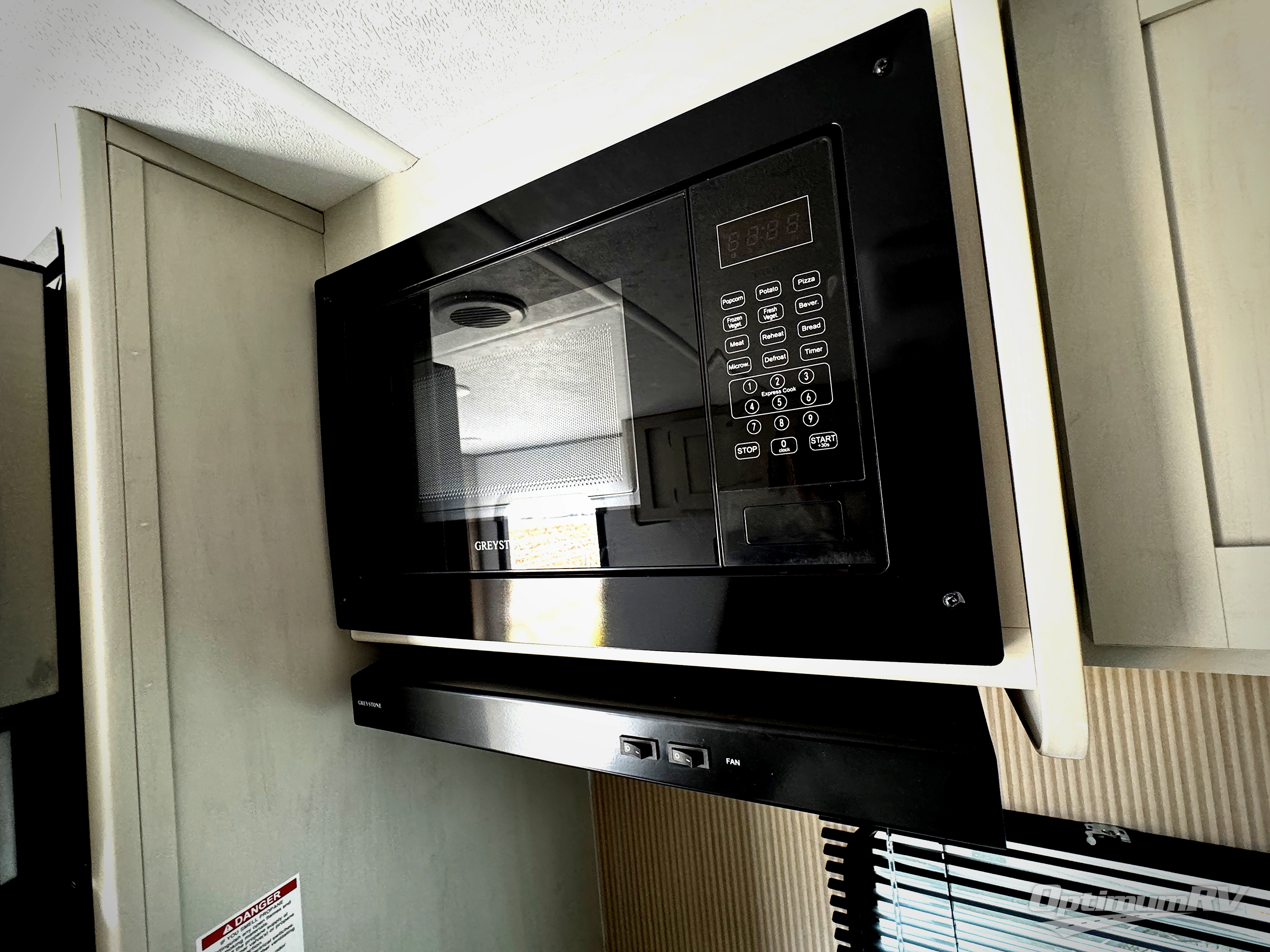 Whatever reason you camp, this lightweight trailer allows you to easily tow to your campsite, and enjoy comforts of home such as your own residential queen bed, wardrobe storage, and a full bathroom with a shower. The booth dinette provides both seating space and sleeping space for a guest. The cook will have an oven and a microwave to make meals, and a 10 cu. ft. 12V refrigerator for cold items, plus a galley sink with high rise faucet to keep the dishes clean.