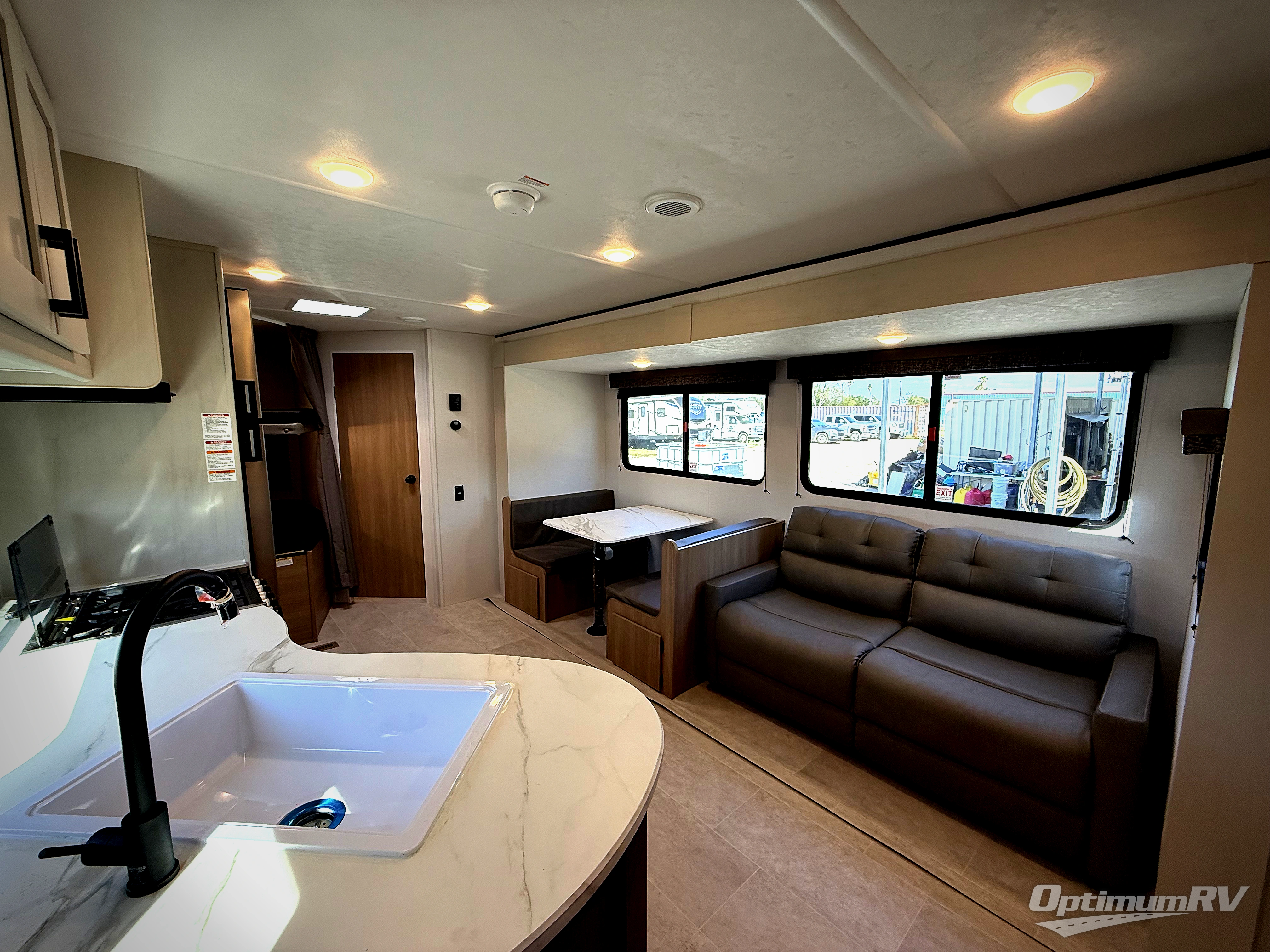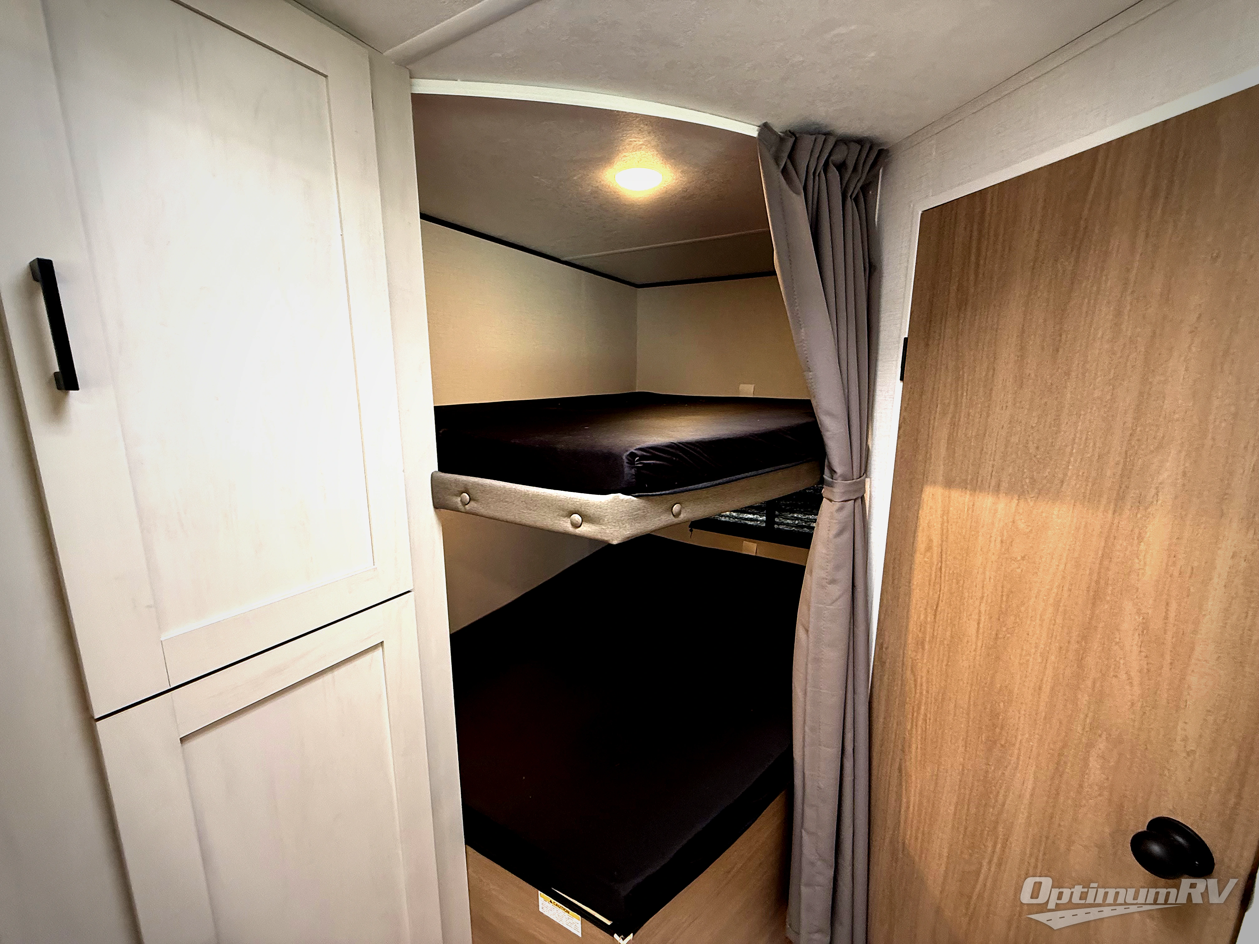 Get ready for fun and relaxation at the campgrounds with this trailer in your campsite. You can fish in the river, hike the trails and relax under the power awning before heading inside to enjoy the comforts of home. You will also enjoy having double access to the private bedroom which offers a residential queen bed and dual closets, plus the full bathroom will keep you refreshed after outdoor fun. The double-size bunks offer sleeping for four, and the furniture doubles as extra sleeping space. The cook will have full amenities including a 10 cu. ft. 12V refrigerator to store lots of cold items. And the large slide gives everyone more floor space.