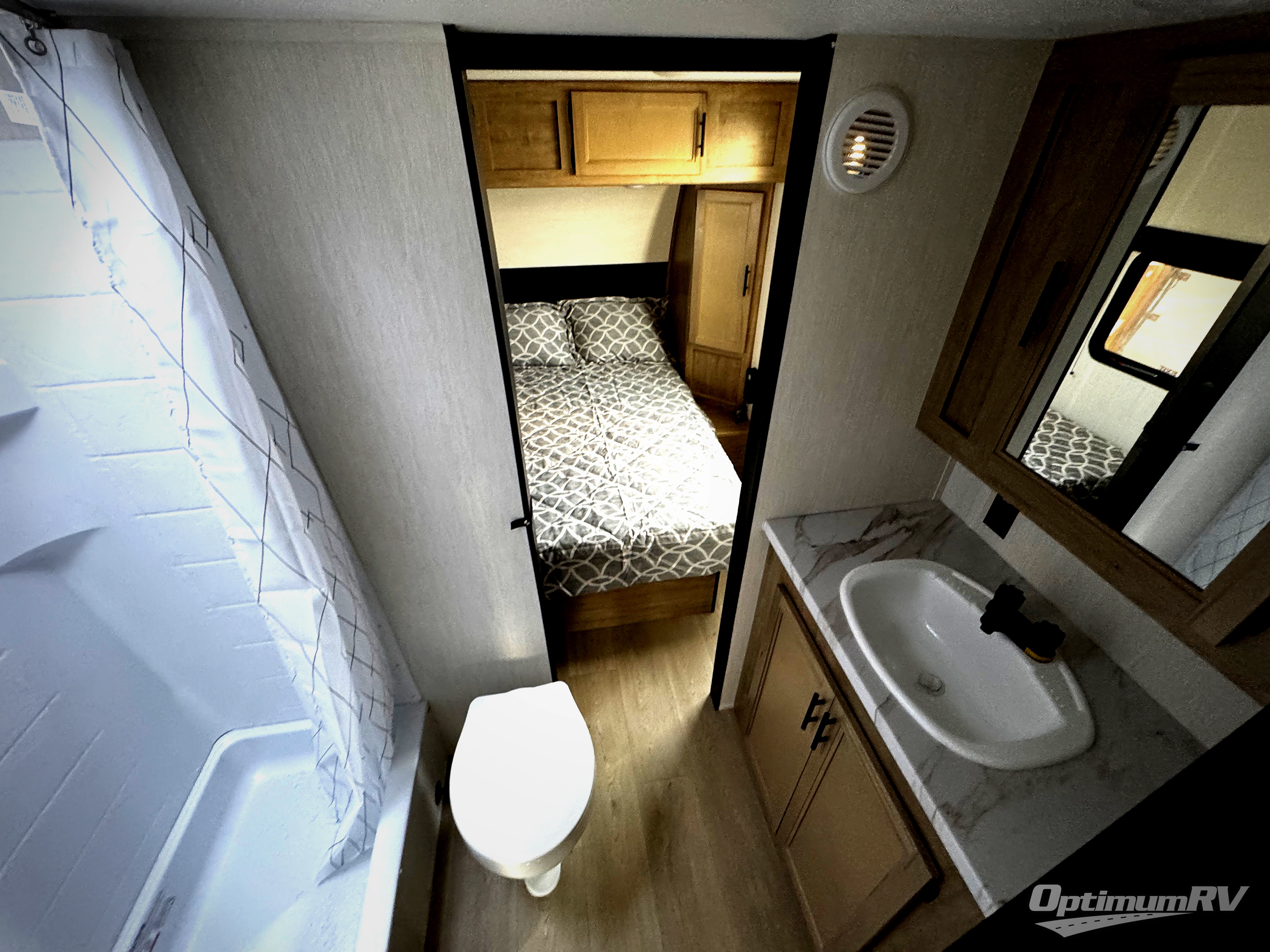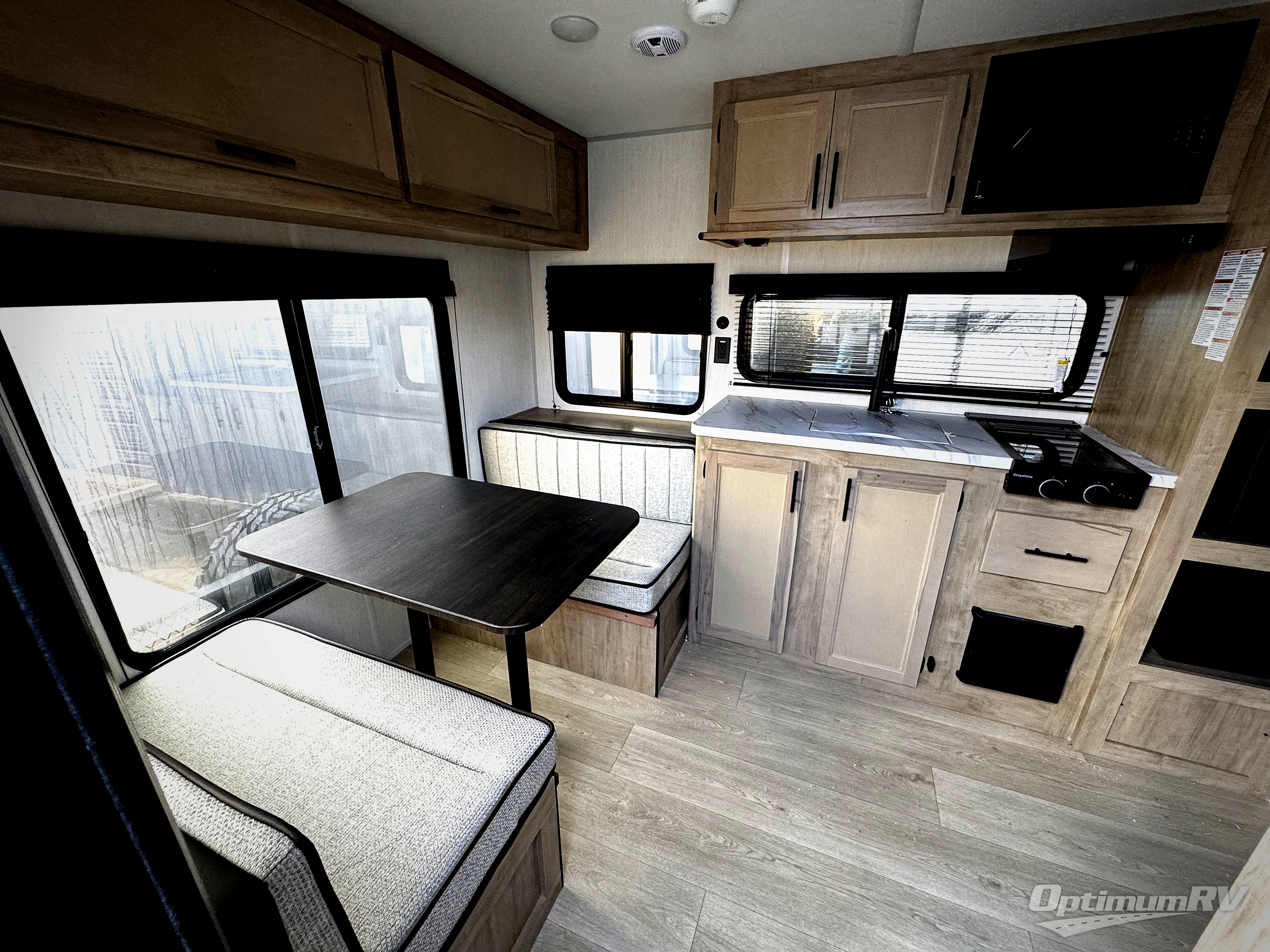 Convenient camping is found with this lightweight travel trailer! Once you arrive at your destination, put out the 15' power awning, then make lunch on the exterior mini kitchen. Inside, you can dine at the booth dinette, freshen up in the tub/shower, and sleep soundly on the queen bed in the master bedroom. And you're sure to find plenty of storage spaces both inside and outside.