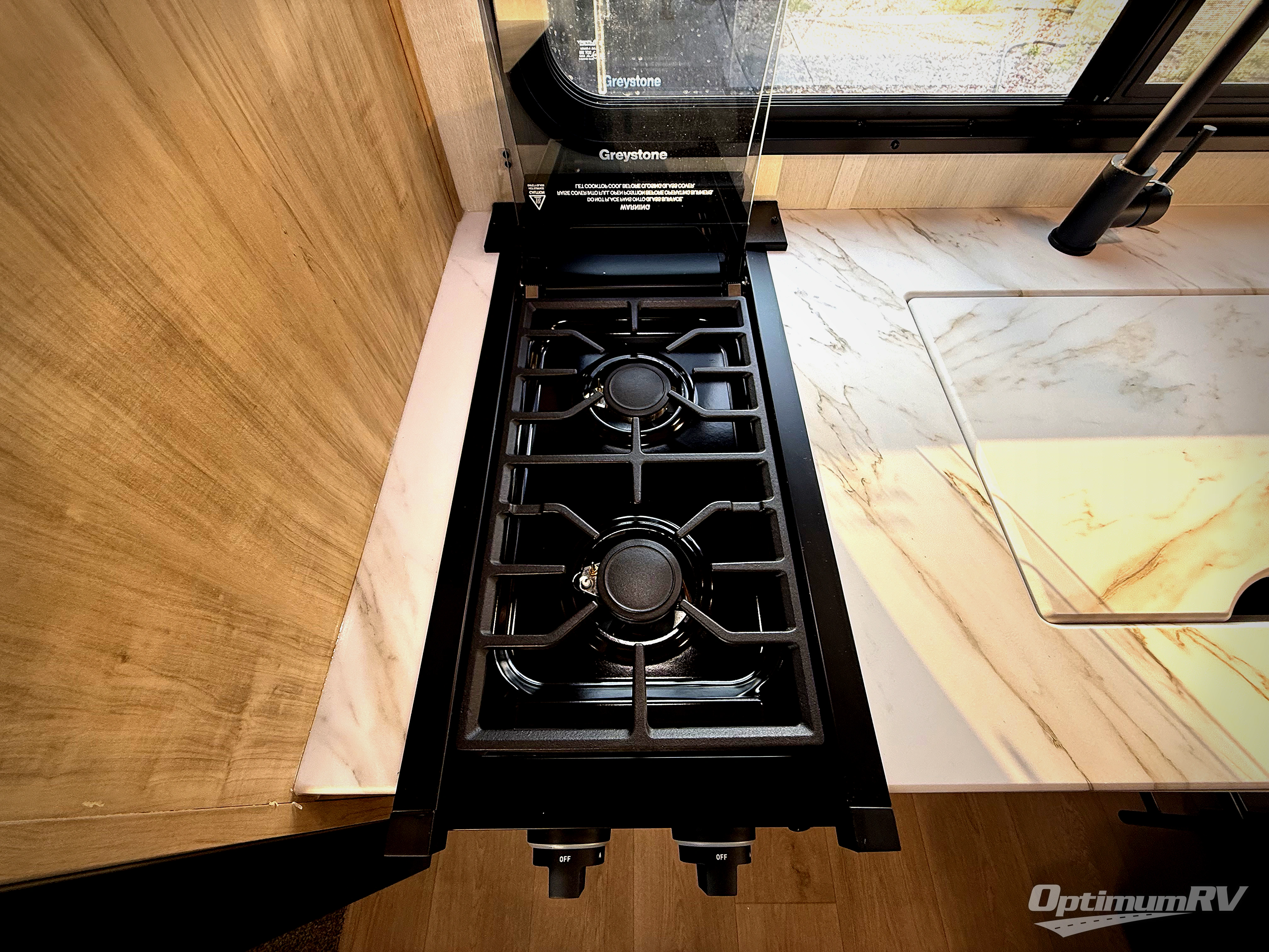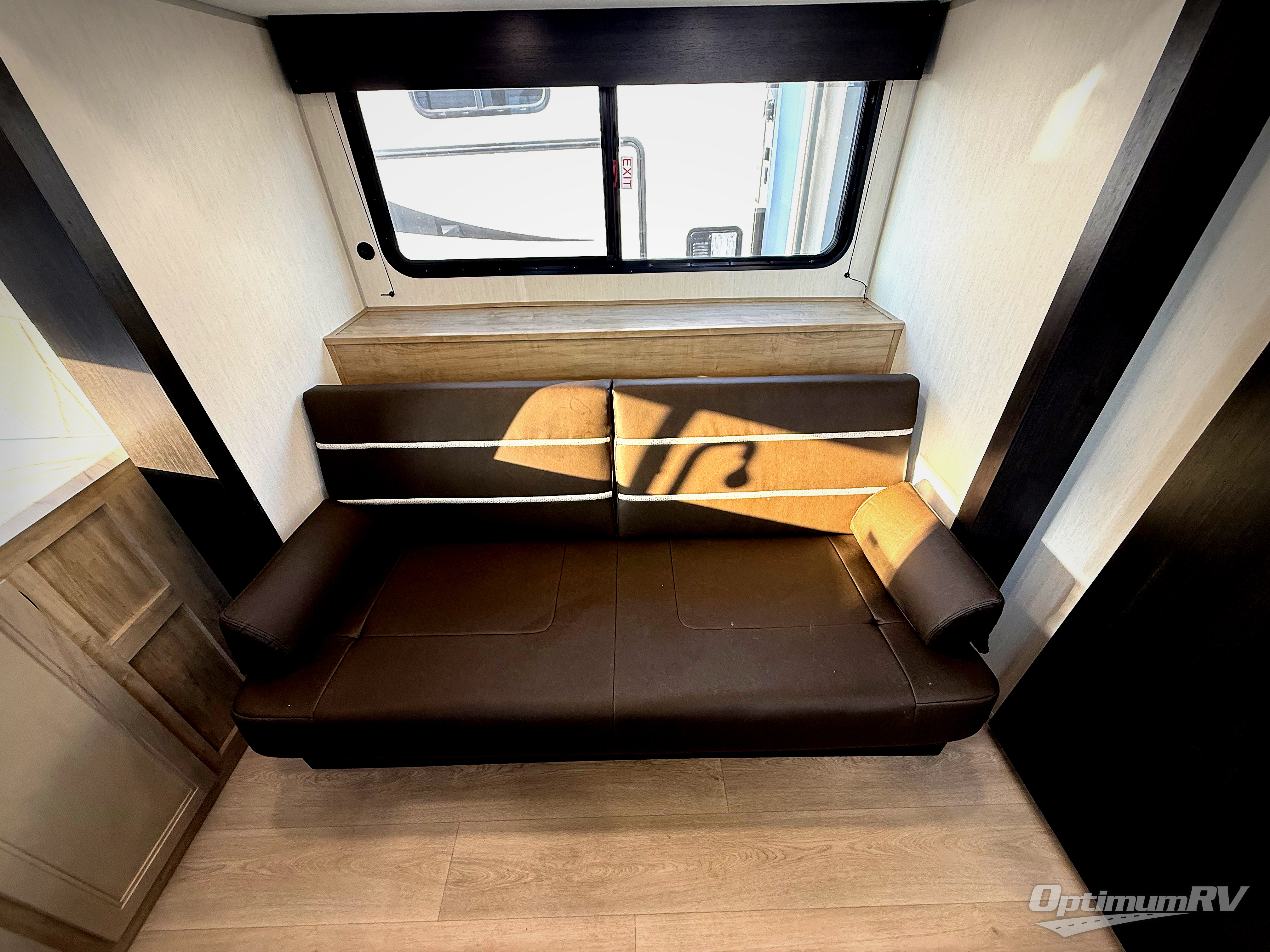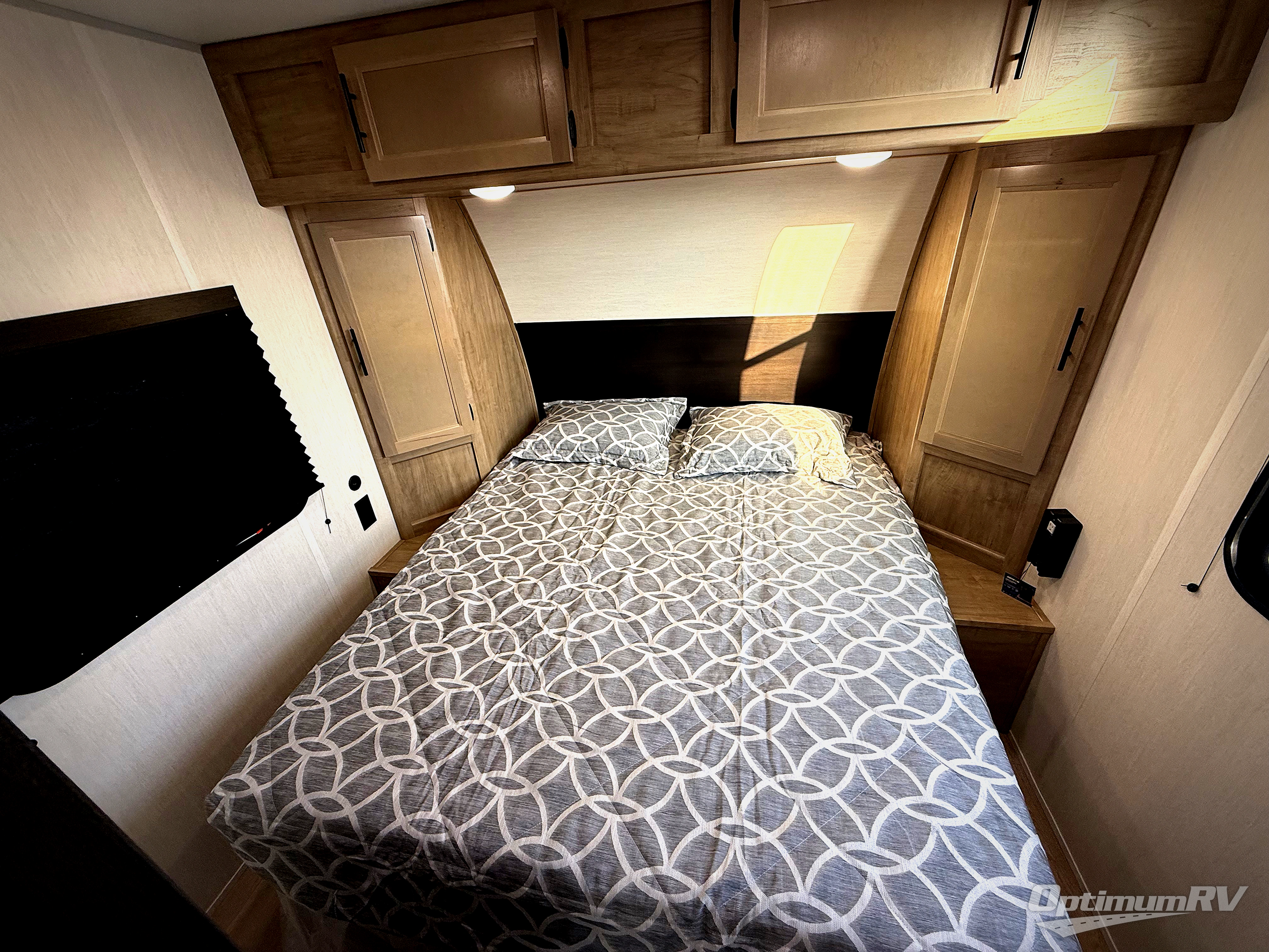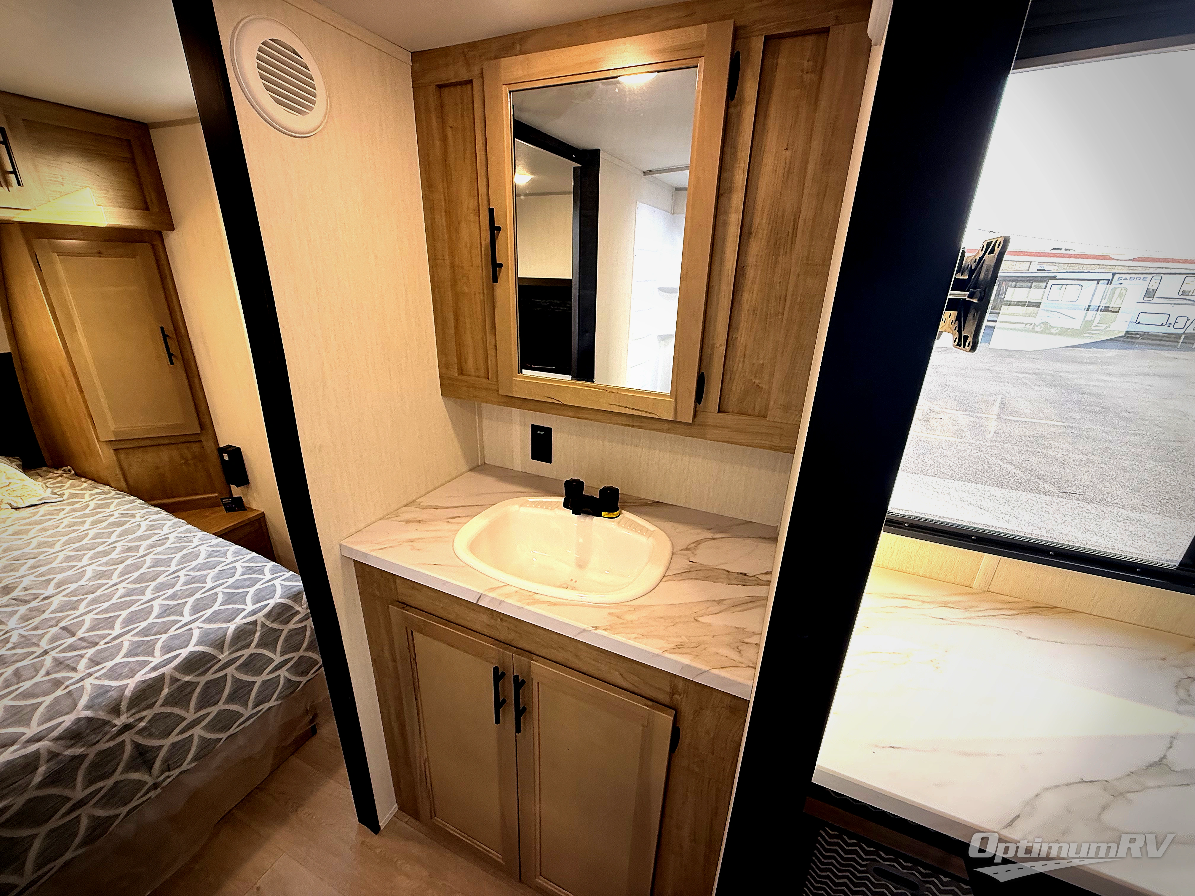 Convenient camping is found with this lightweight travel trailer! Once you arrive at your destination, put out the power awning, then make lunch on the exterior mini kitchen. Inside, you can dine at the bar top with stools, freshen up in the tub/shower, and sleep soundly on the queen bed in the master bedroom. There is also a sofa slide out to provide additional seating, sleeping, and interior space! And you're sure to find plenty of storage spaces both inside and outside, including a rear storage rack!