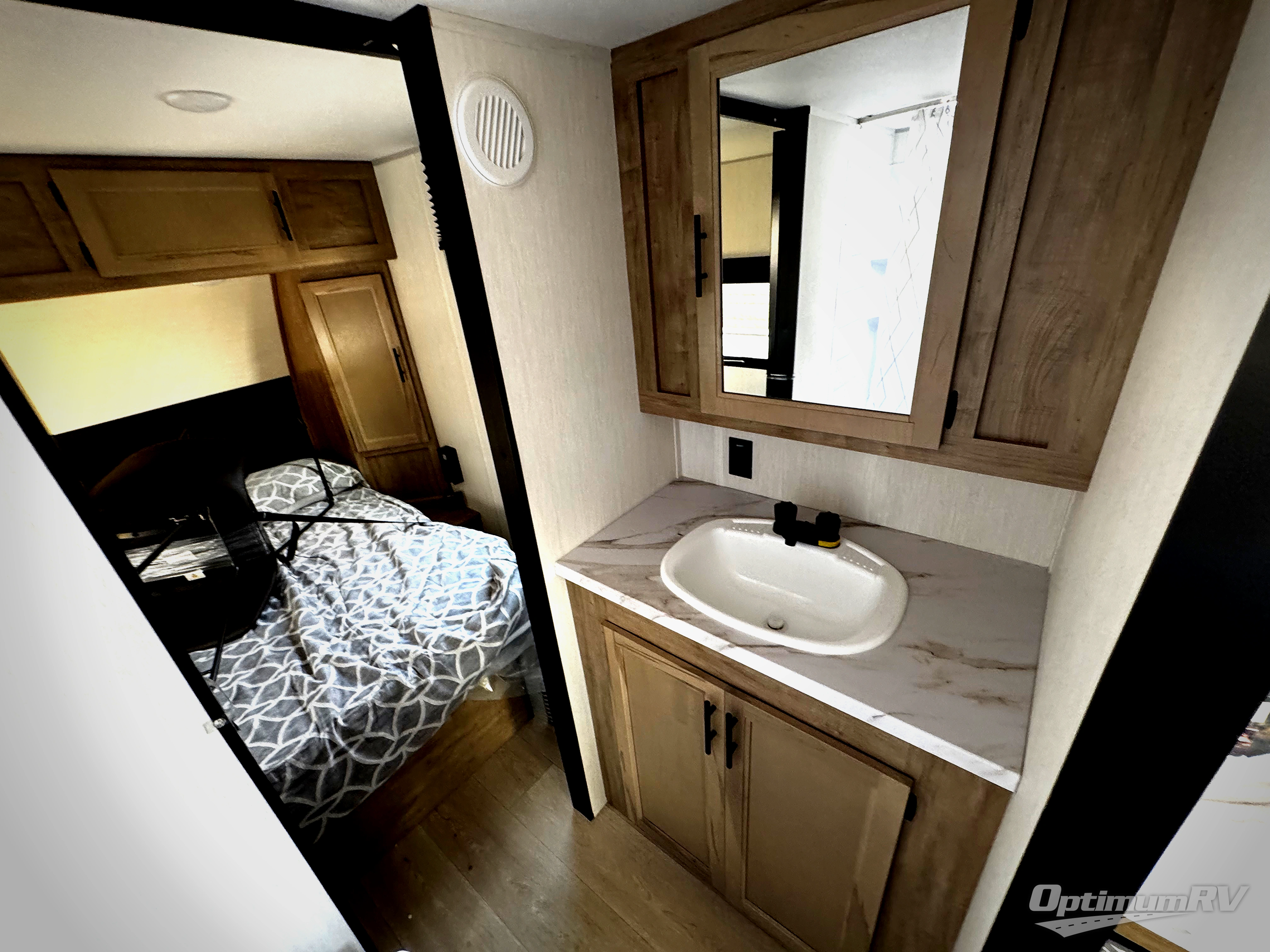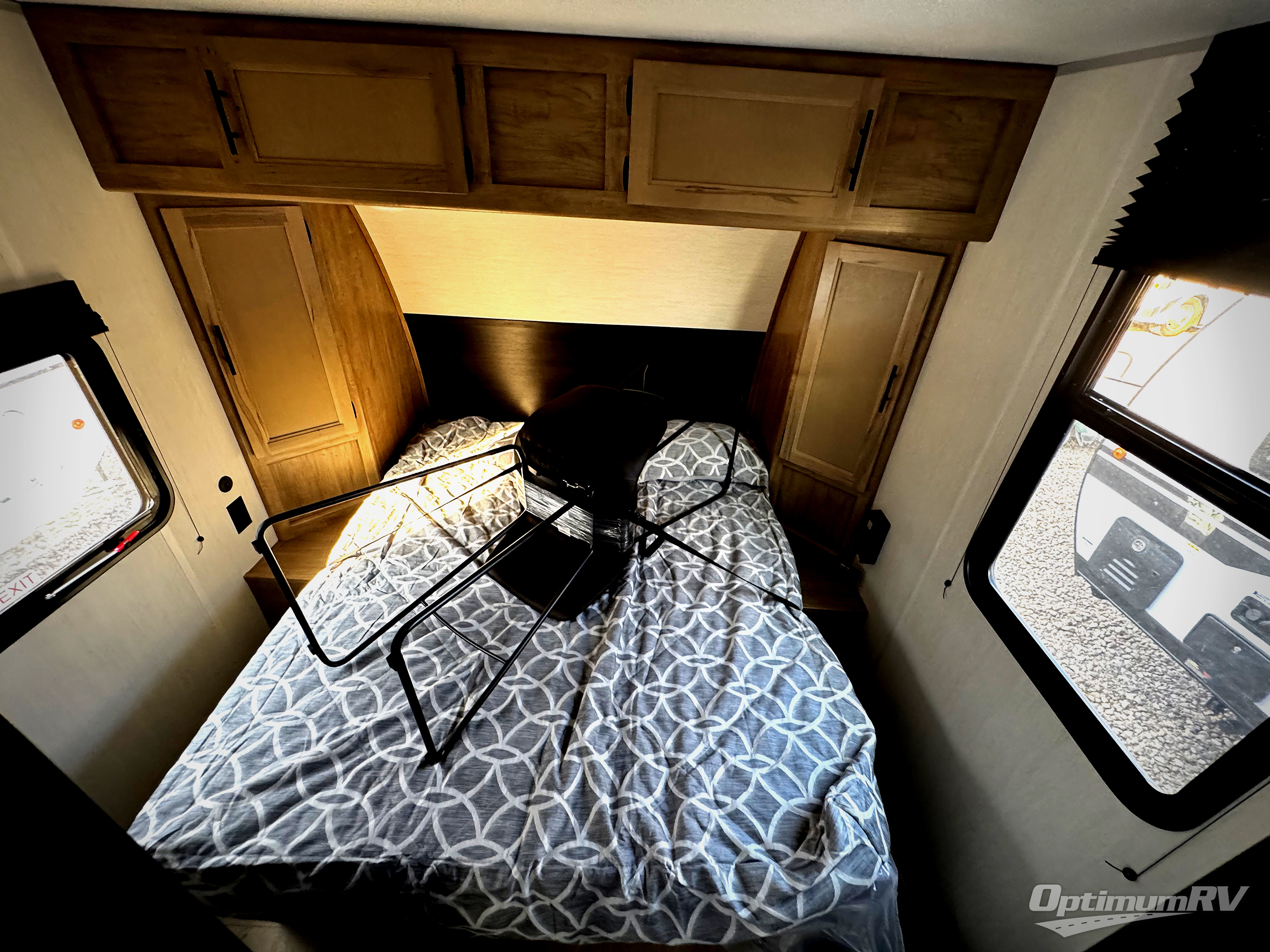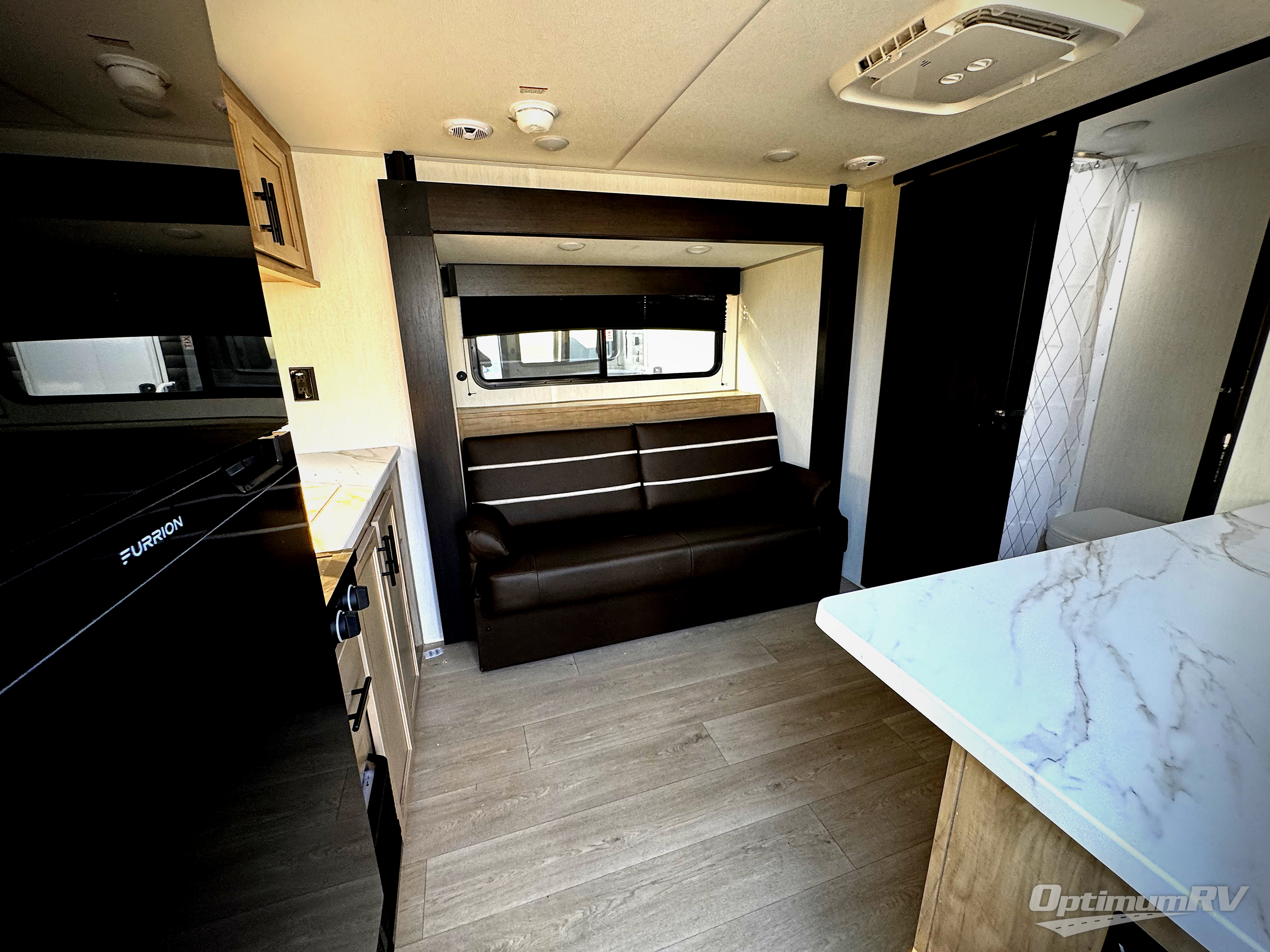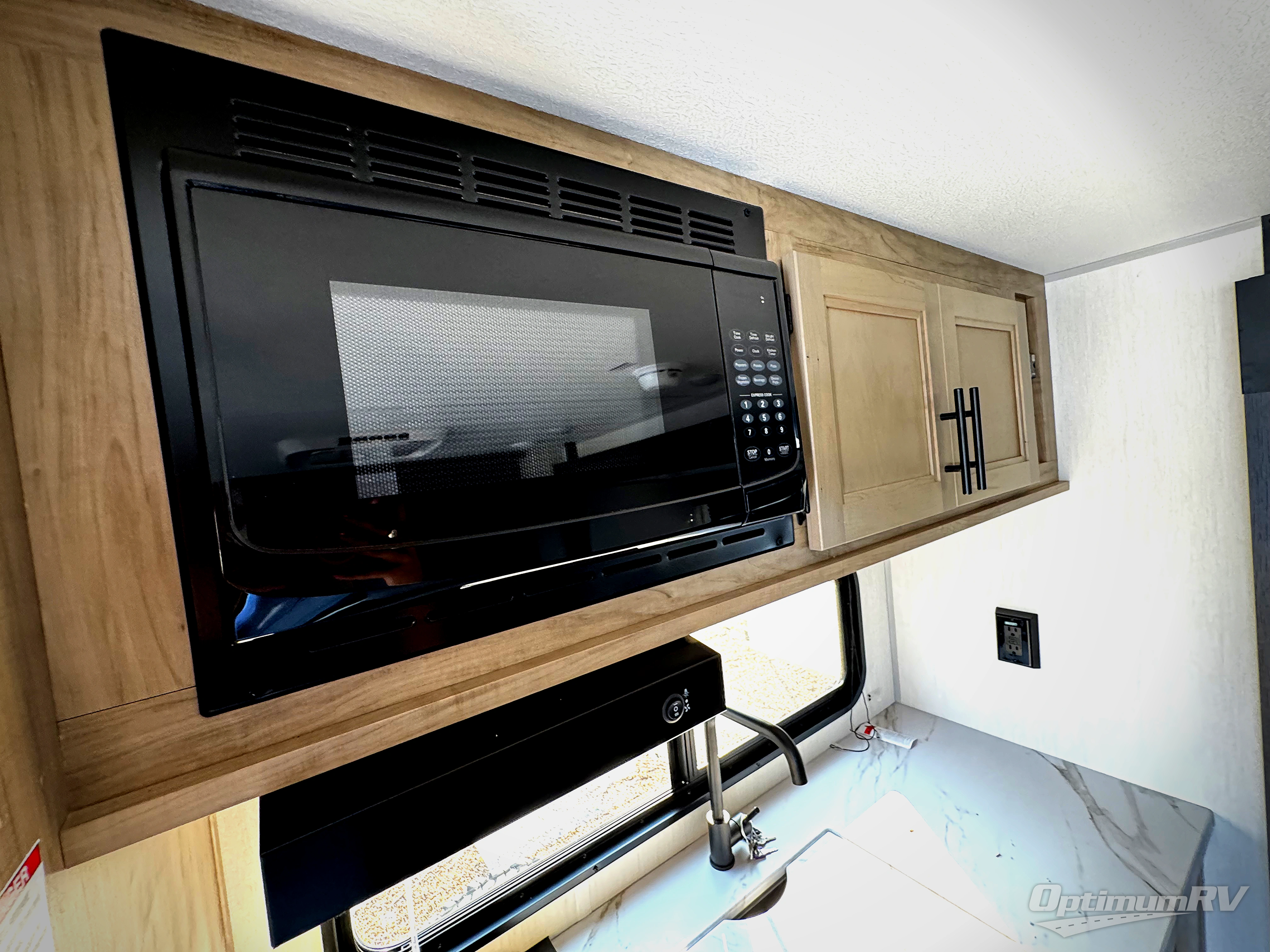 Convenient camping is found with this lightweight travel trailer! Once you arrive at your destination, put out the power awning, then make lunch on the exterior mini kitchen. Inside, you can dine at the bar top with stools, freshen up in the tub/shower, and sleep soundly on the queen bed in the master bedroom. There is also a sofa slide out to provide additional seating, sleeping, and interior space! And you're sure to find plenty of storage spaces both inside and outside, including a rear storage rack!