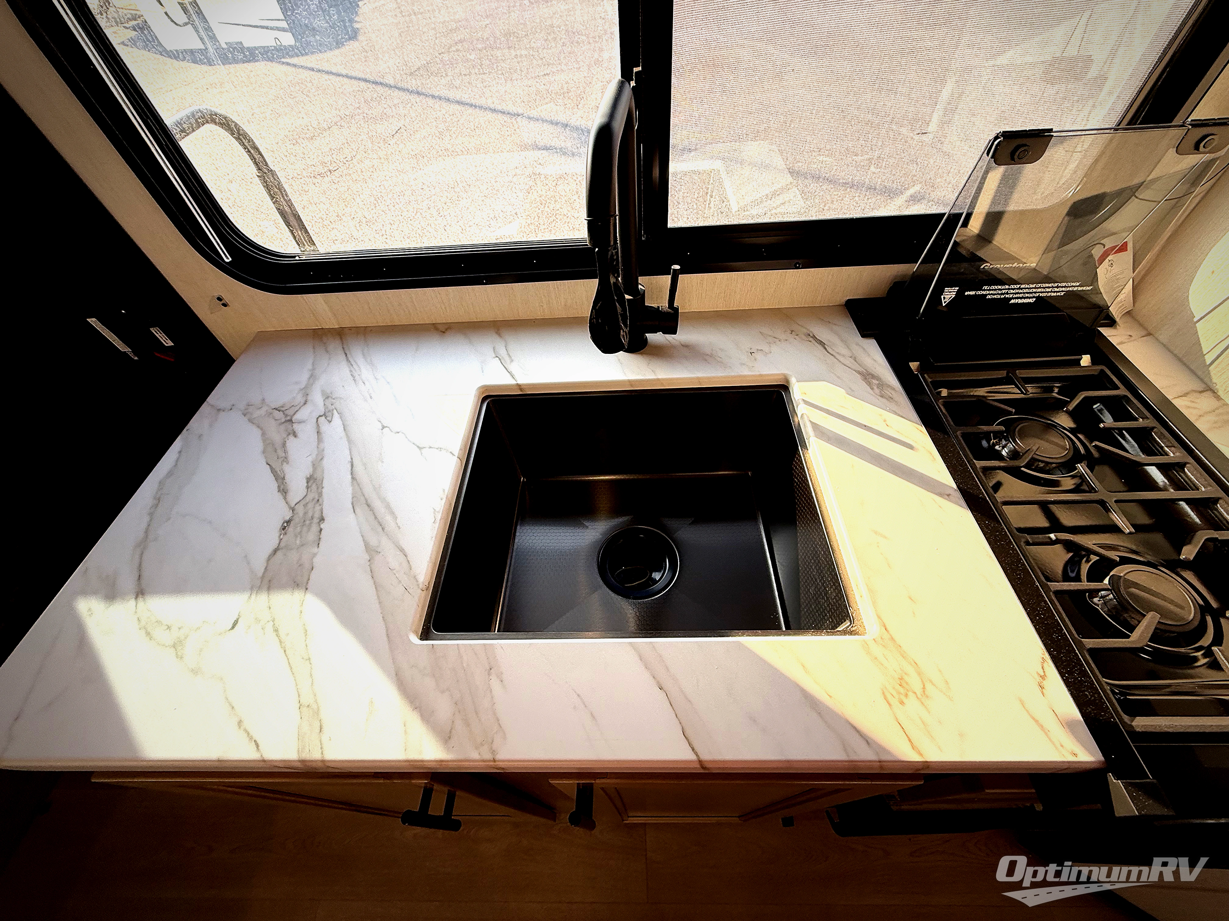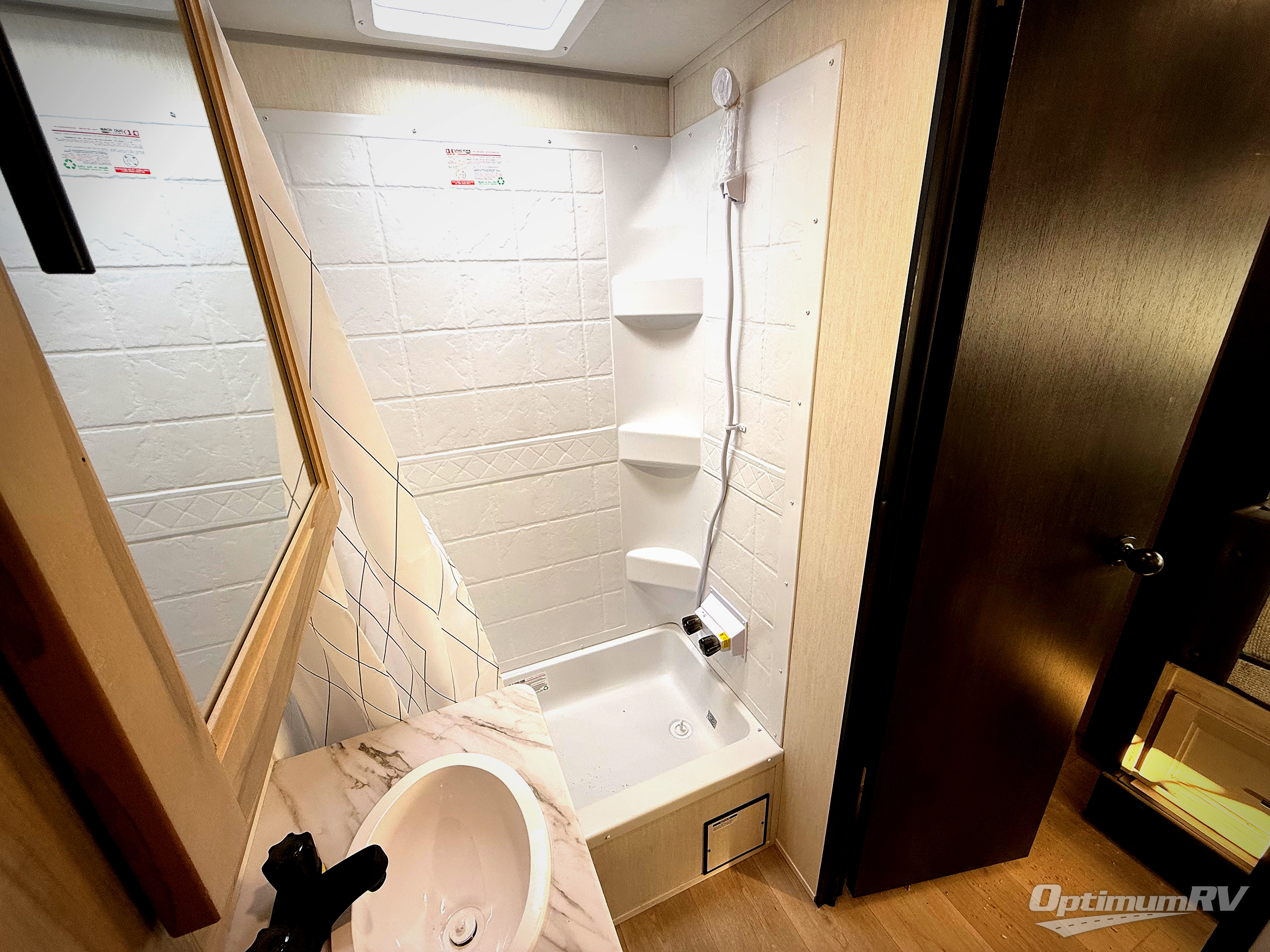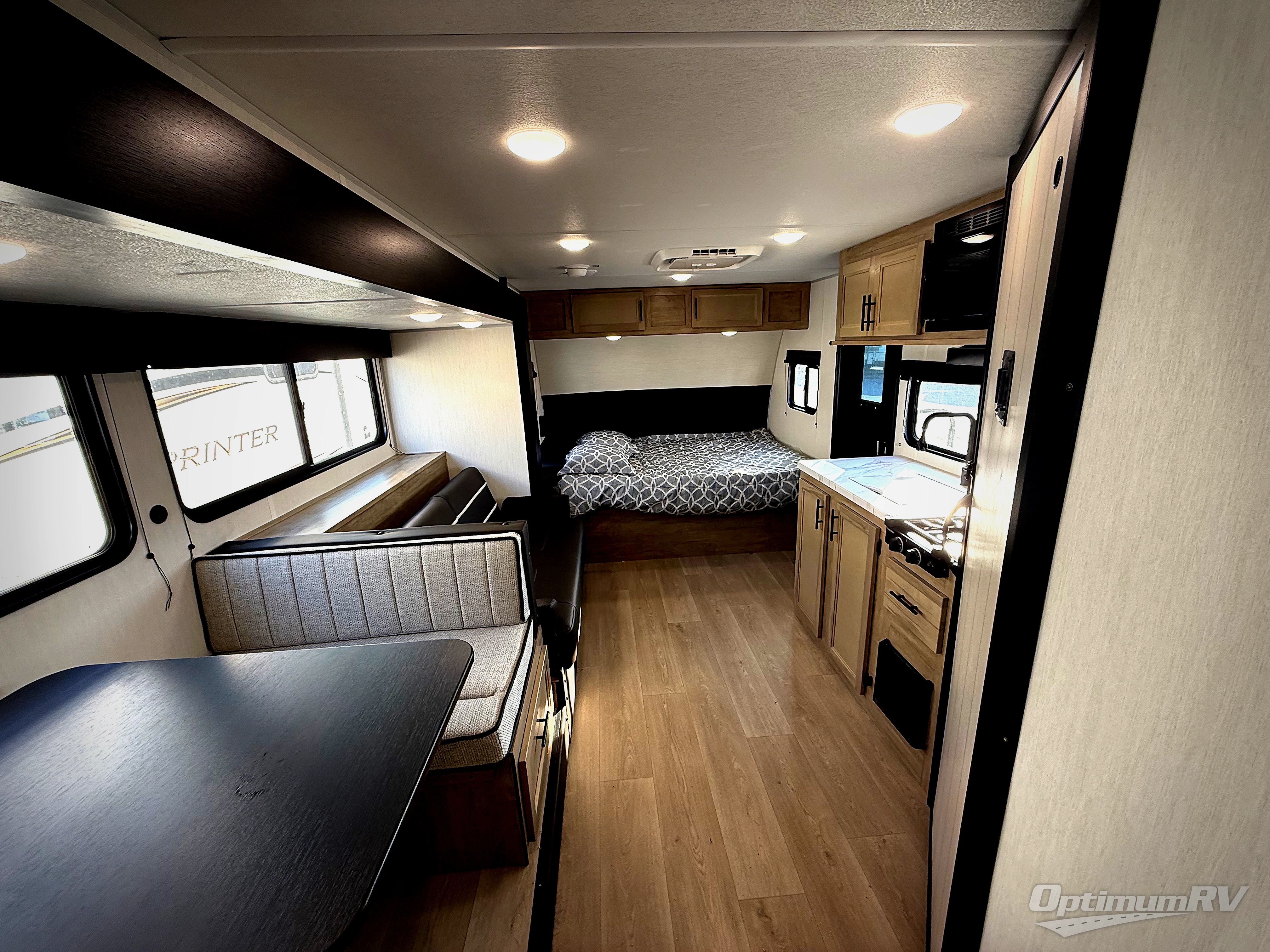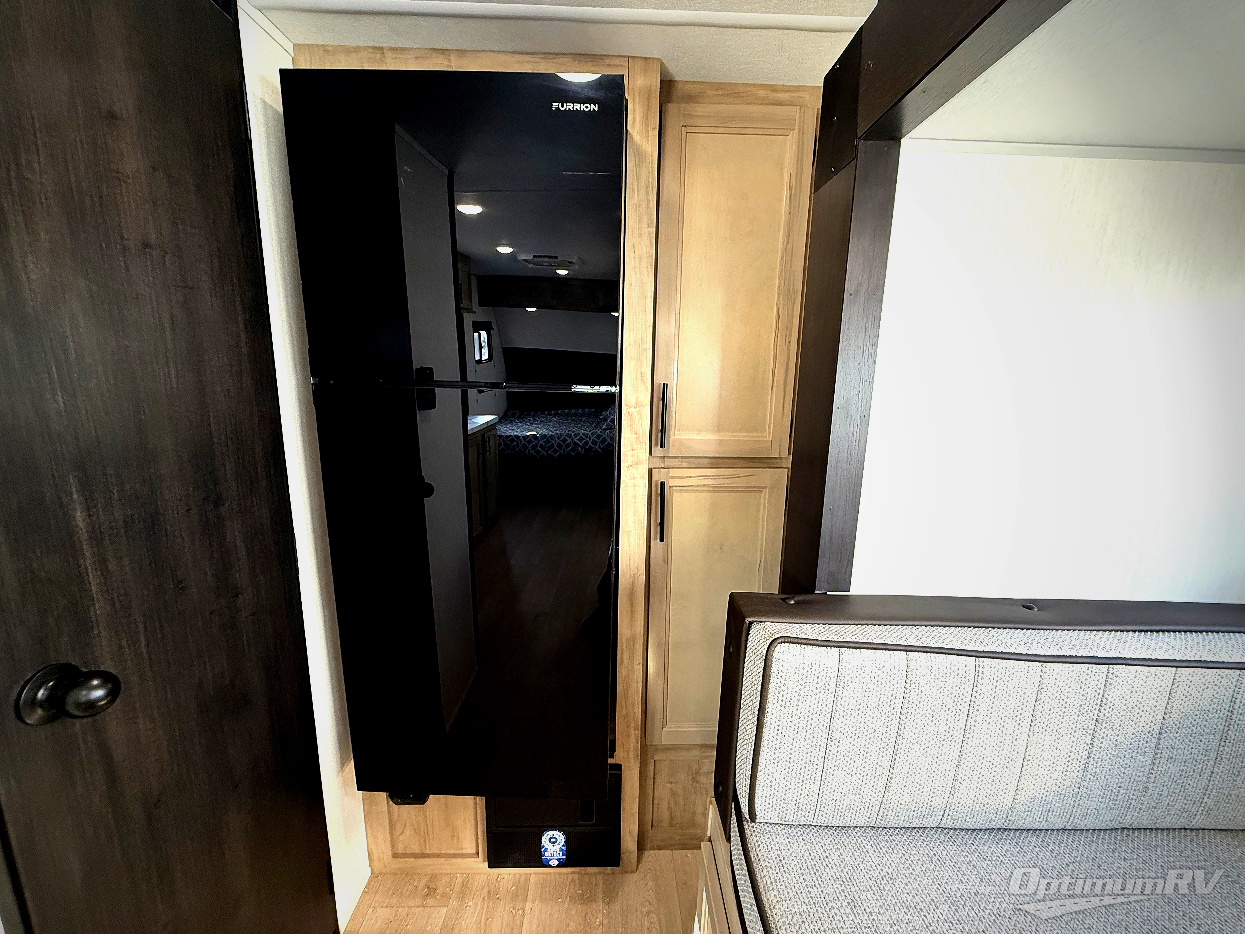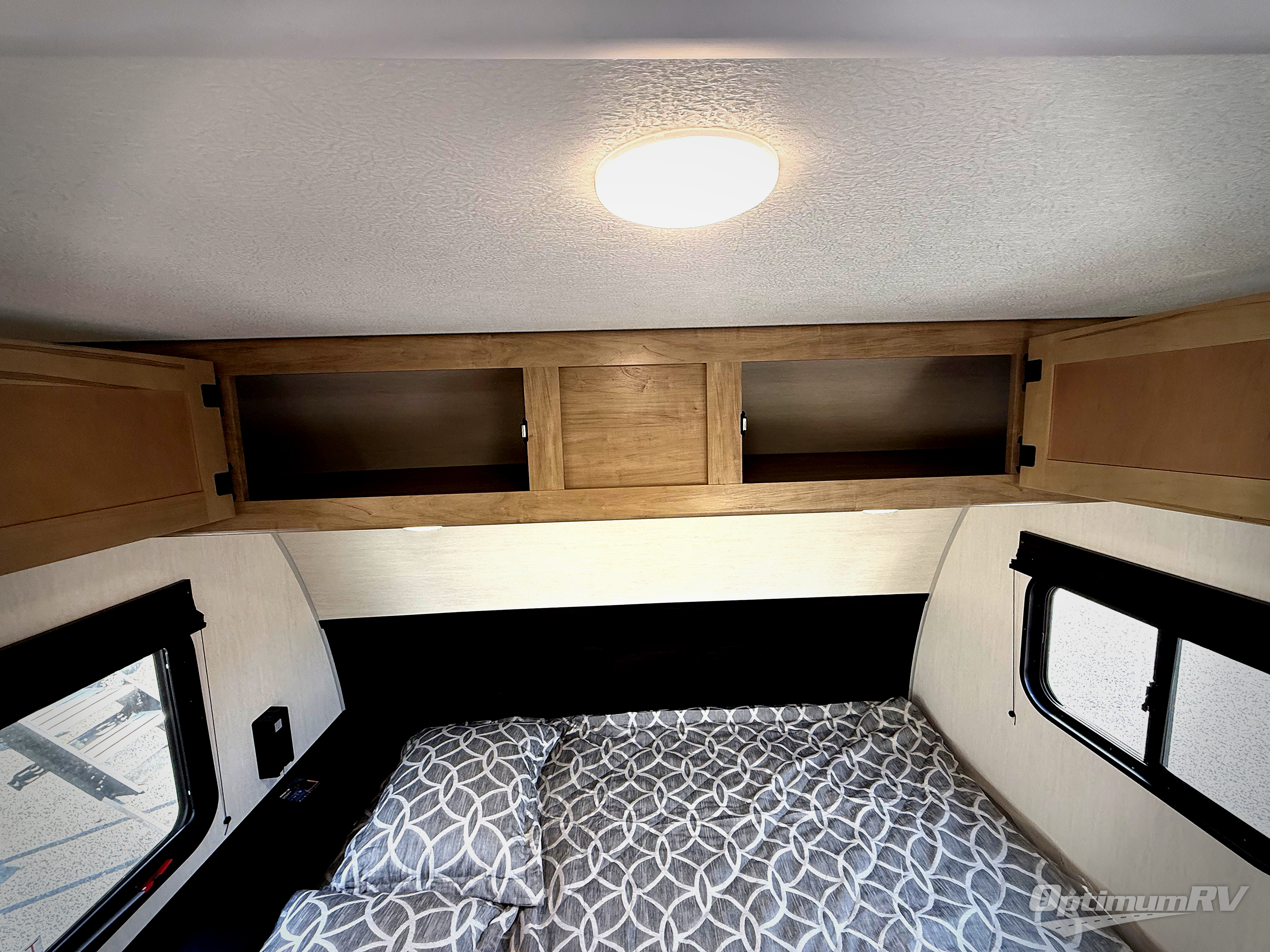 Camping trips in this spacious travel trailer are sure to bring memories! Once you arrive at the campground, you can unload the outside storage, put out the 12' awning, and enjoy the outdoor mini kitchen. Once inside, you can dine at the booth dinette, relax on the sofa, and freshen up in the full bath with a tub/shower. The front queen bed will provide a great night's rest, while your guests sleep on the living area furniture. This travel trailer also includes ample interior storage, including a spacious kitchen pantry, an overhead cabinet above the bed, plus additional storage beside the refrigerator!