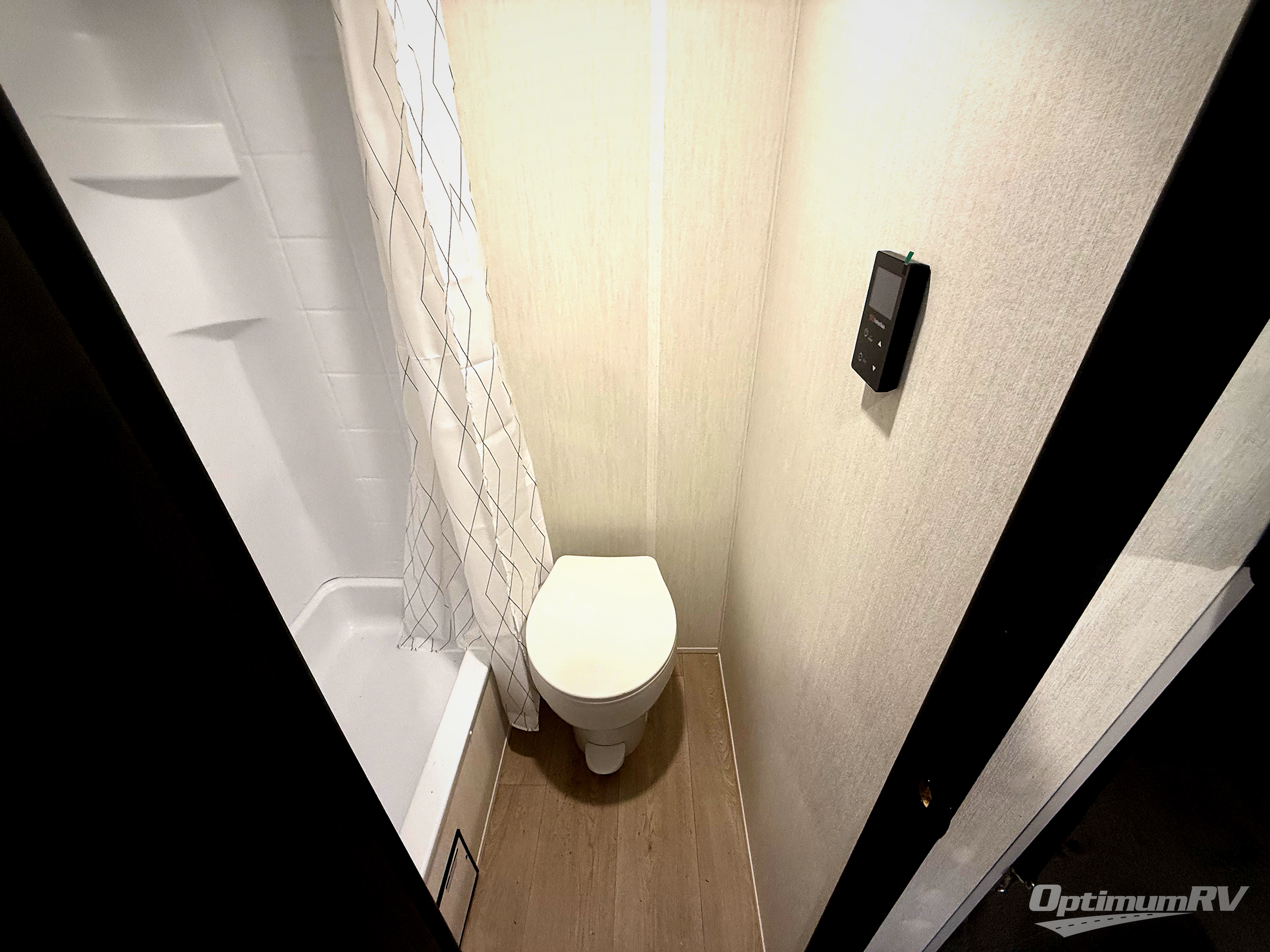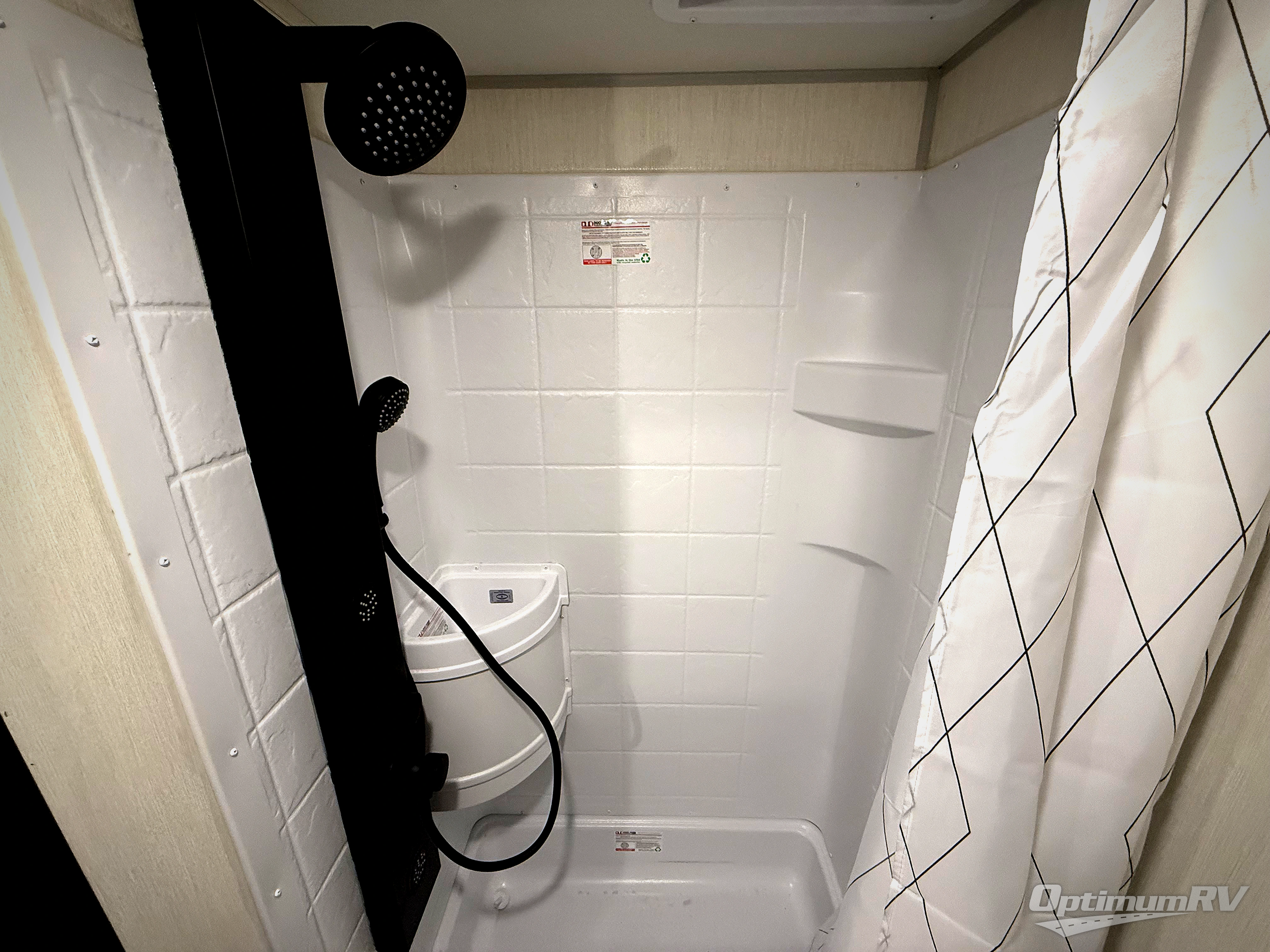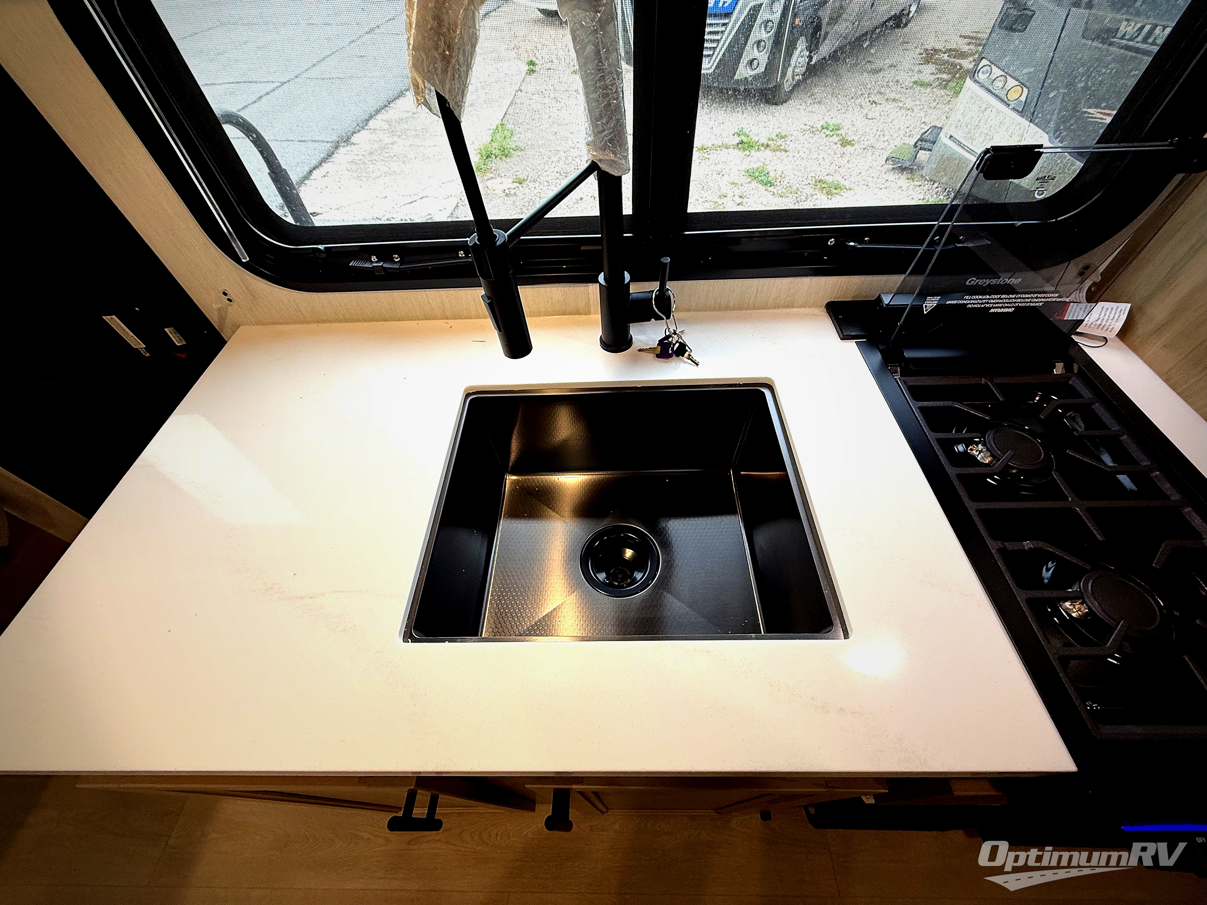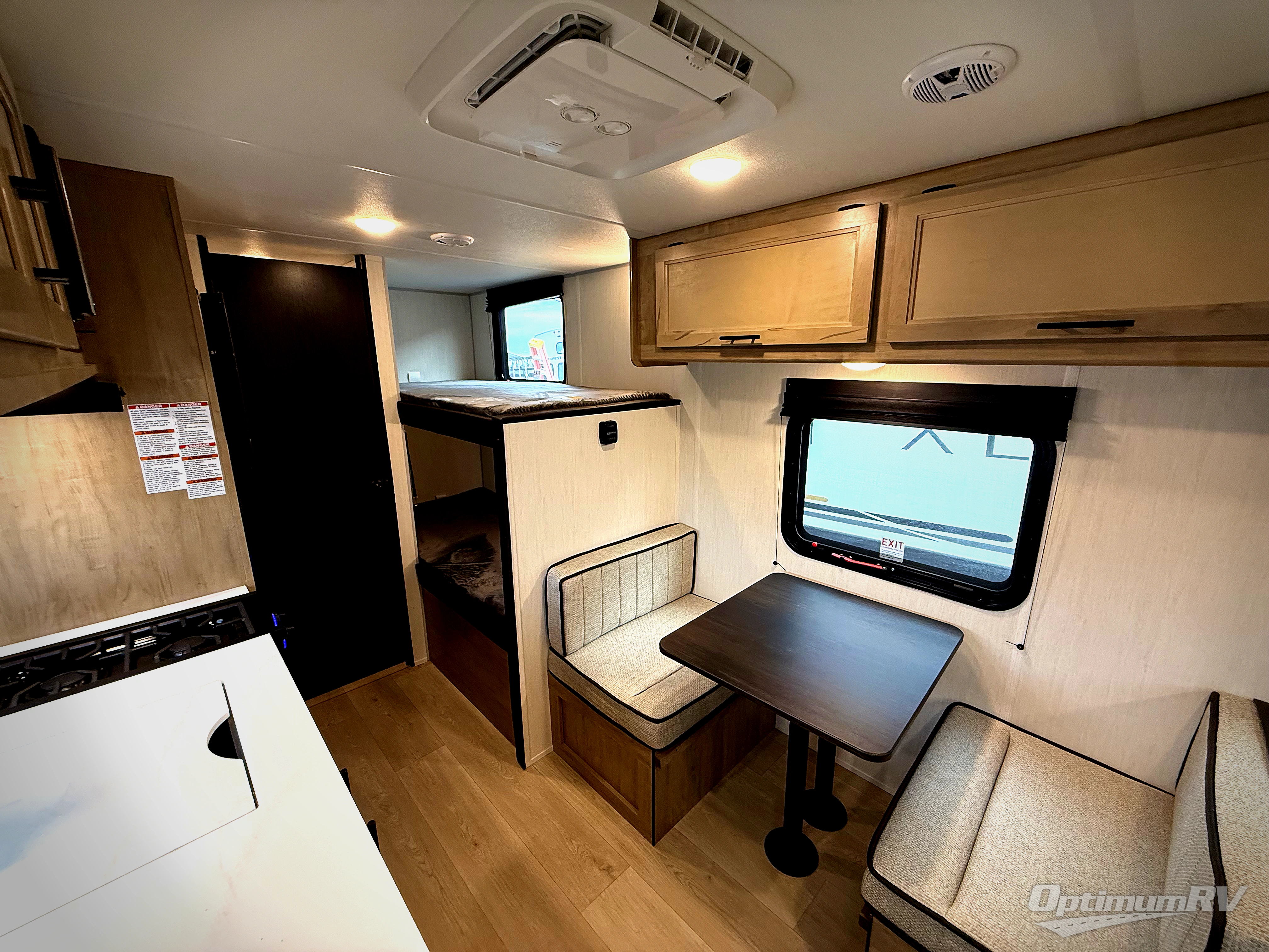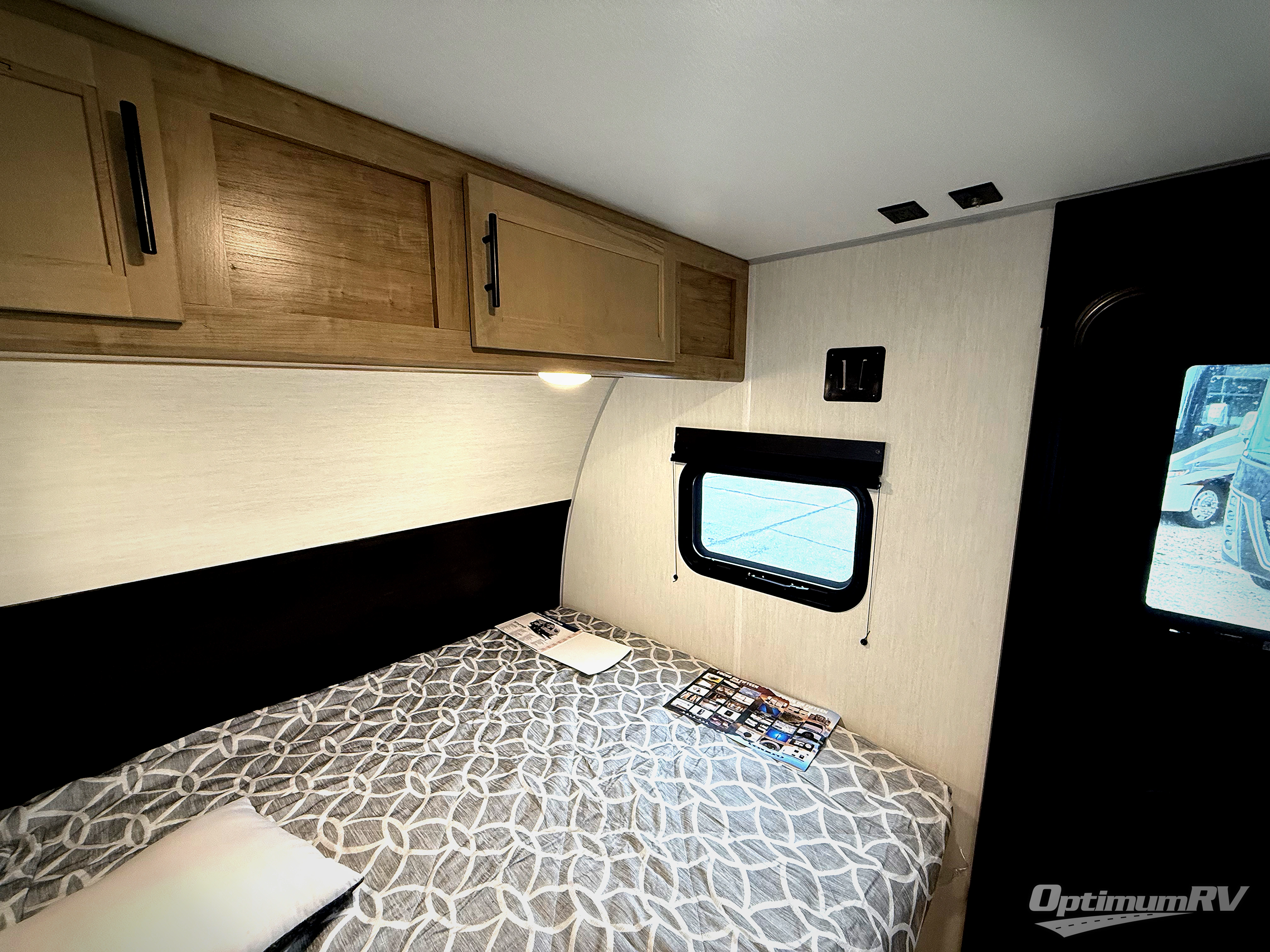 The whole family can sleep comfortably in this travel trailer! It has a set of bunk beds for the kids or guests to sleep on, and you can sleep comfortably on the front queen bed with overhead cabinets and a shelf. There is even an exterior storage plus door that accesses the storage space under the bottom bunk. The chef will enjoy preparing their best home cooked meals either indoors with the cooktop or at the outside mini kitchen while staying protected by the 12' power awning!
