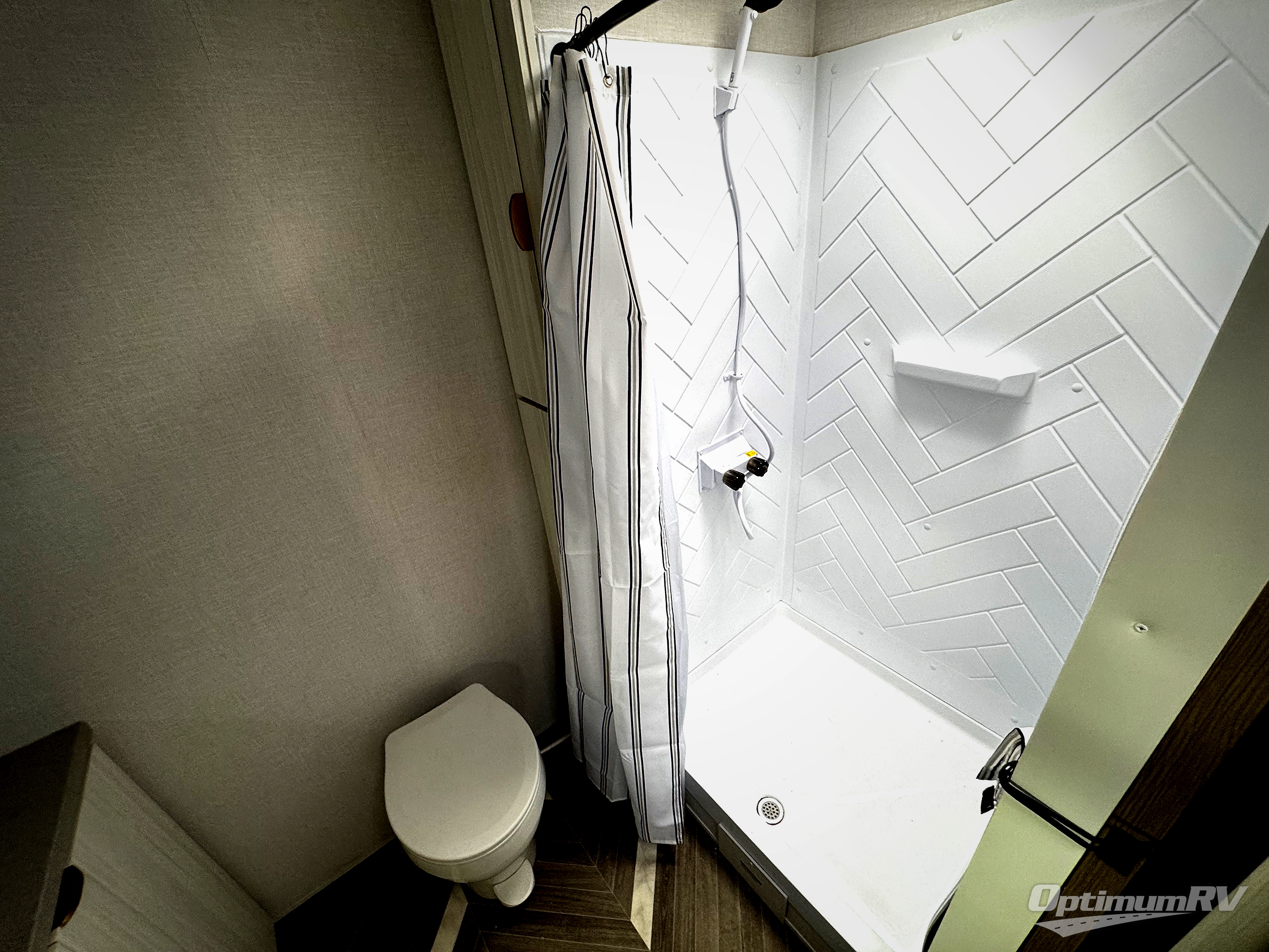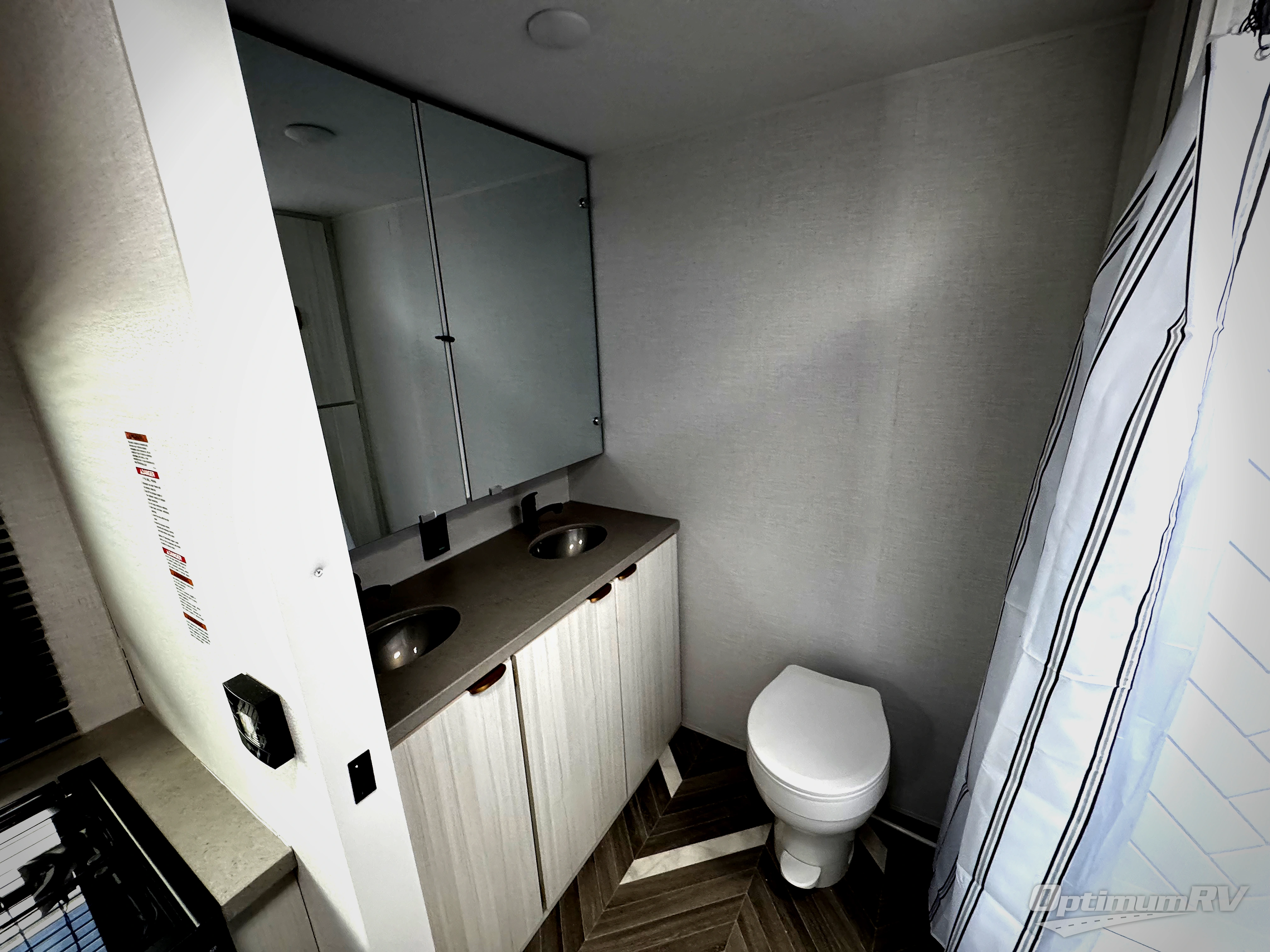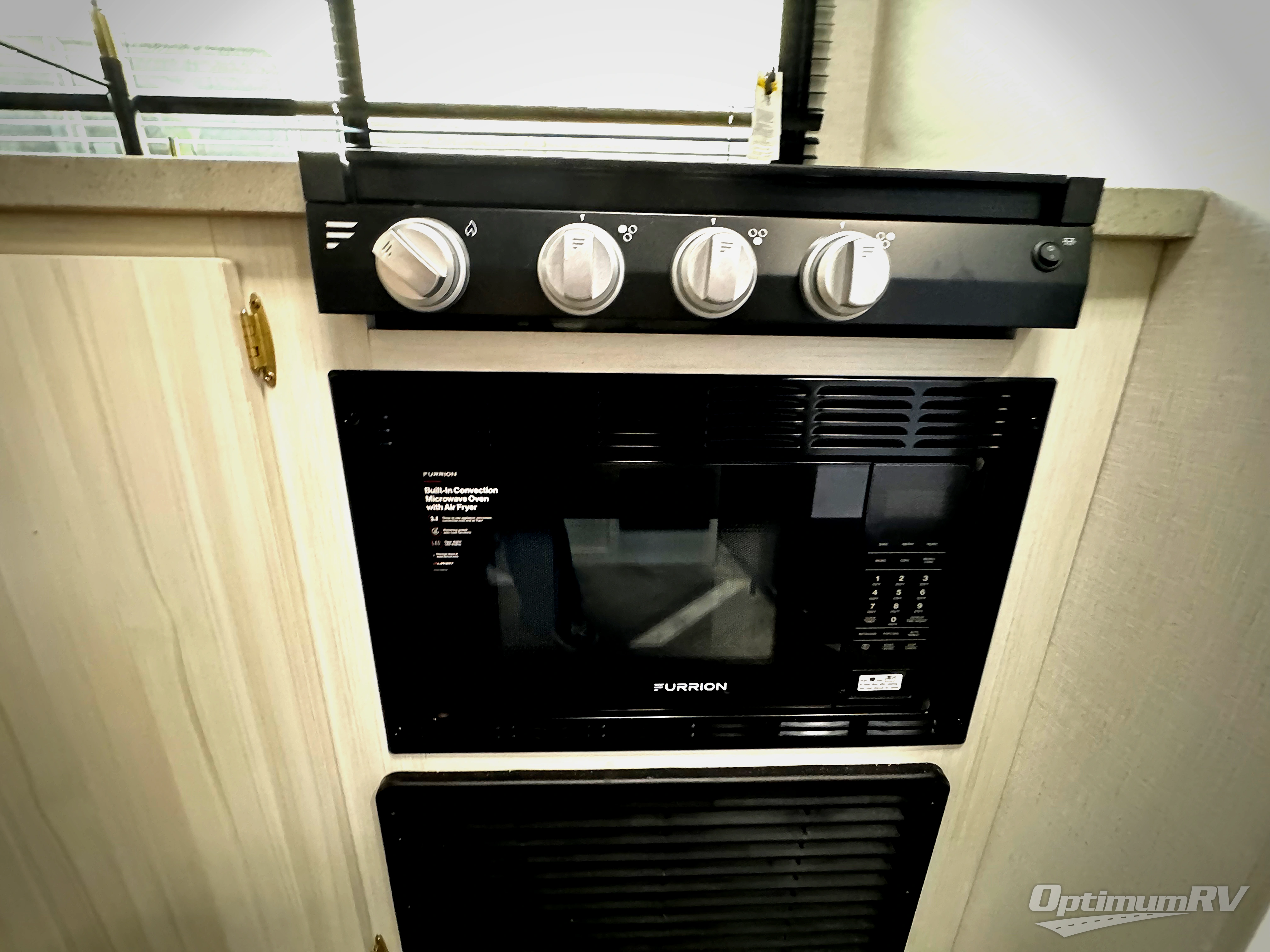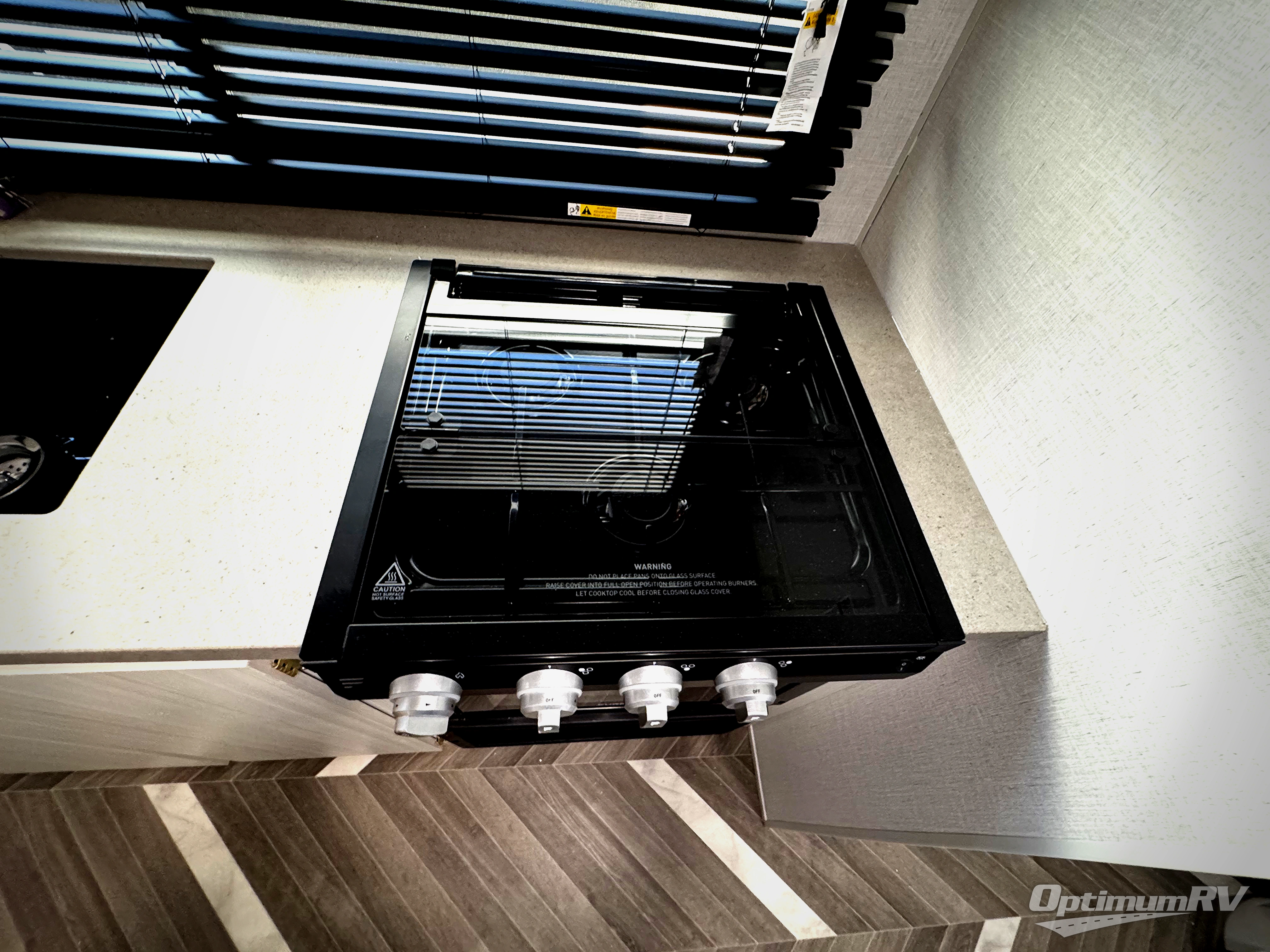 Escape the city life for weekends at the campground in this travel trailer for four. You will be pleased to find a king bed in the front private bedroom, along with dual bedroom wardrobes to keep your clothes tidy. The full rear bath includes dual bath sinks so you both can get ready at the same time, and there is a shower with a linen closet to keep clean towels close by. Your crew can relax on the L-shaped open lounge and removable table, and the chef of your group can keep themselves busy in the kitchen. There is a 3-in-1 cooktop with a convection oven, a pantry and 12V refrigerator for food storage.