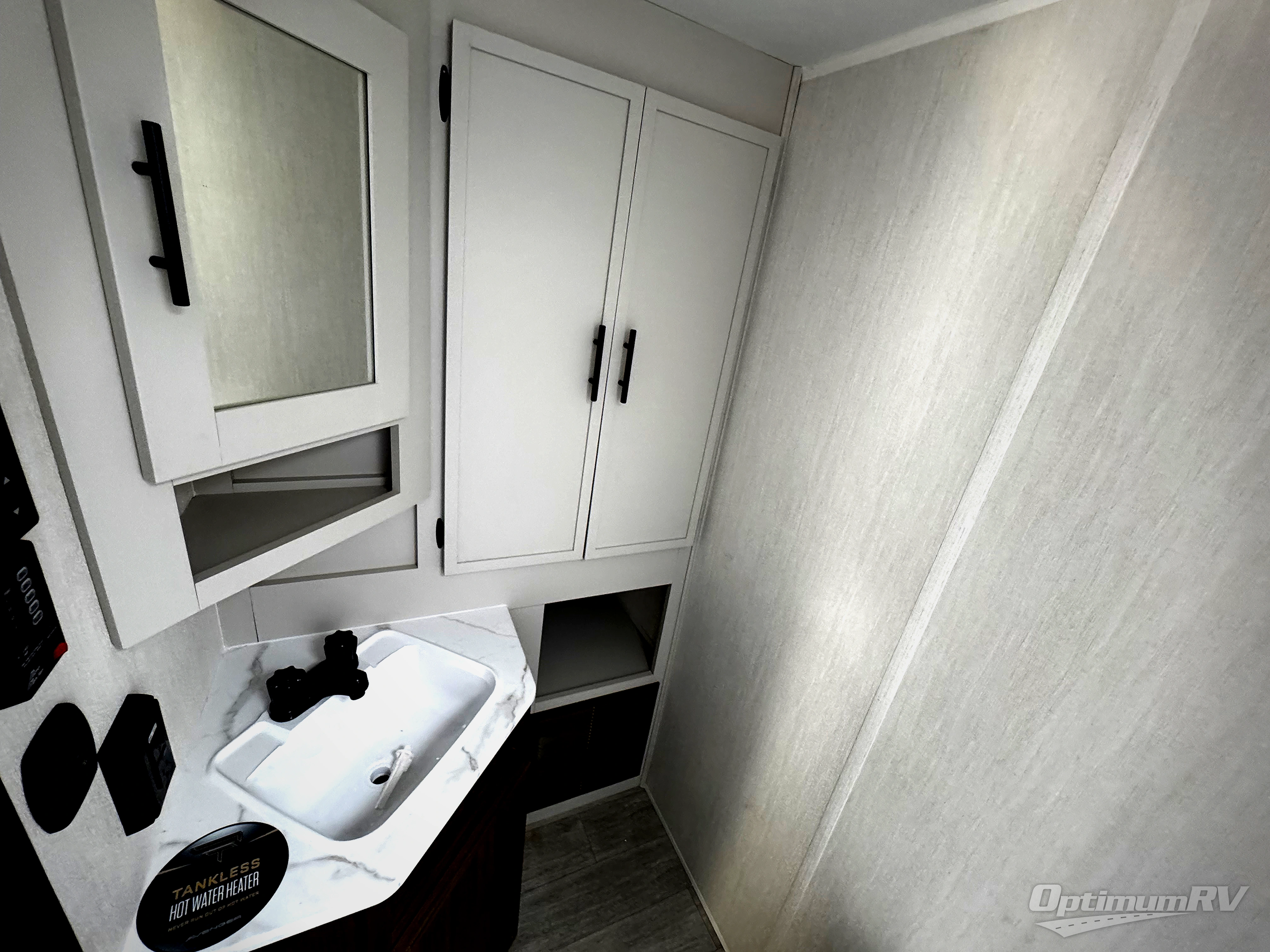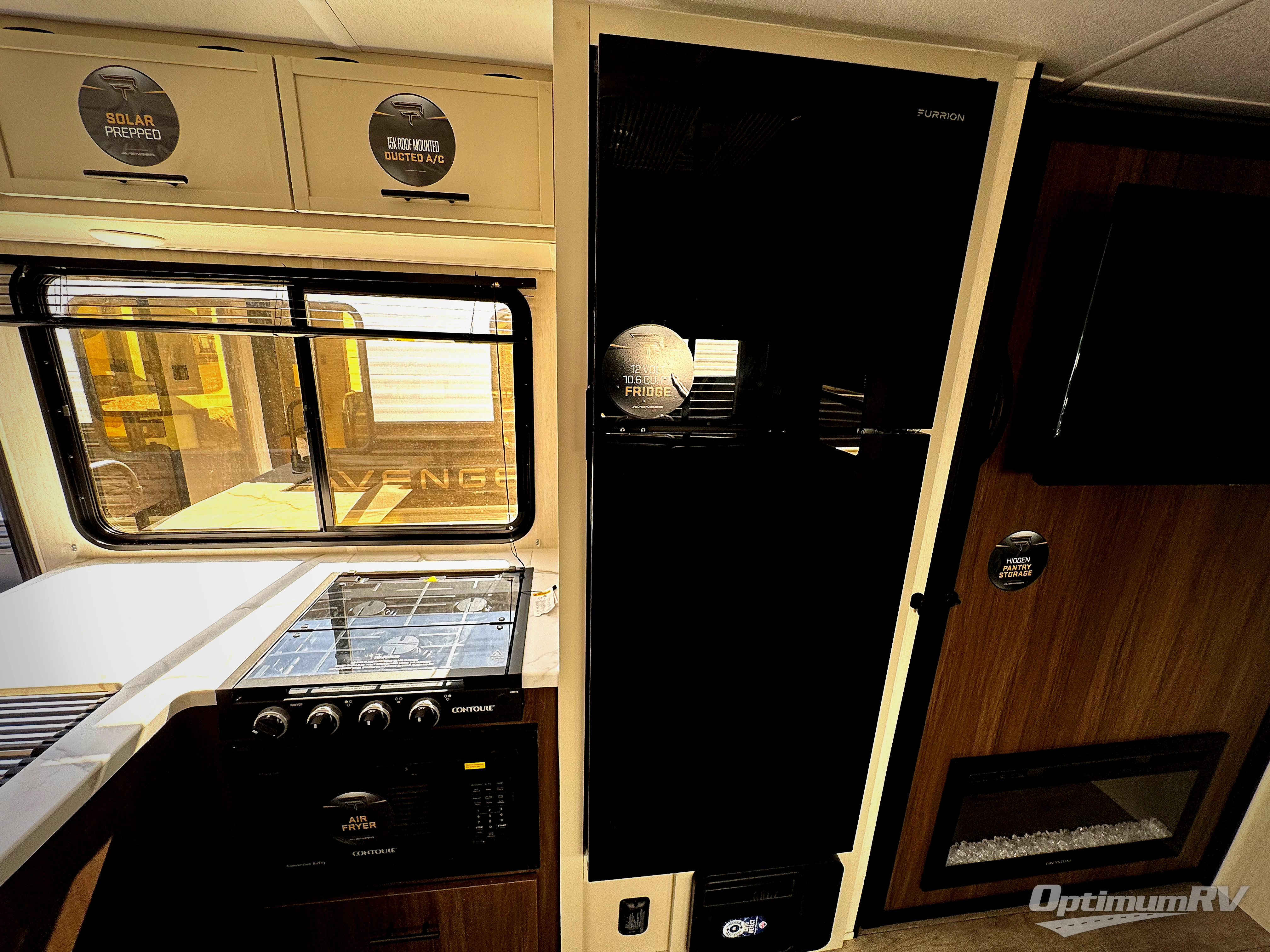 With any Avenger travel trailer by Prime Time RV, you will find innovation, a solid build, and comfort at every turn. Each model is built with Tuff Coat on the exterior metal, a fully enclosed underbelly, and a PVC roof membrane to help extend the life of your trailer. You will also find automotive name badging on the exterior, along with an exterior shower, front rail LED light strips, plus an XL padded entry grab handle to name a few conveniences. There are plenty of storage spaces inside, as well as Congoleum flooring and woven PVC marine grade slide out flooring, a designer shower surround, and seamless pressed countertops. You are sure to appreciate the onboard water filtration system, tankless water heater, plus 30K BTU furnace and 15K ducted A/C to help keep you comfortable.