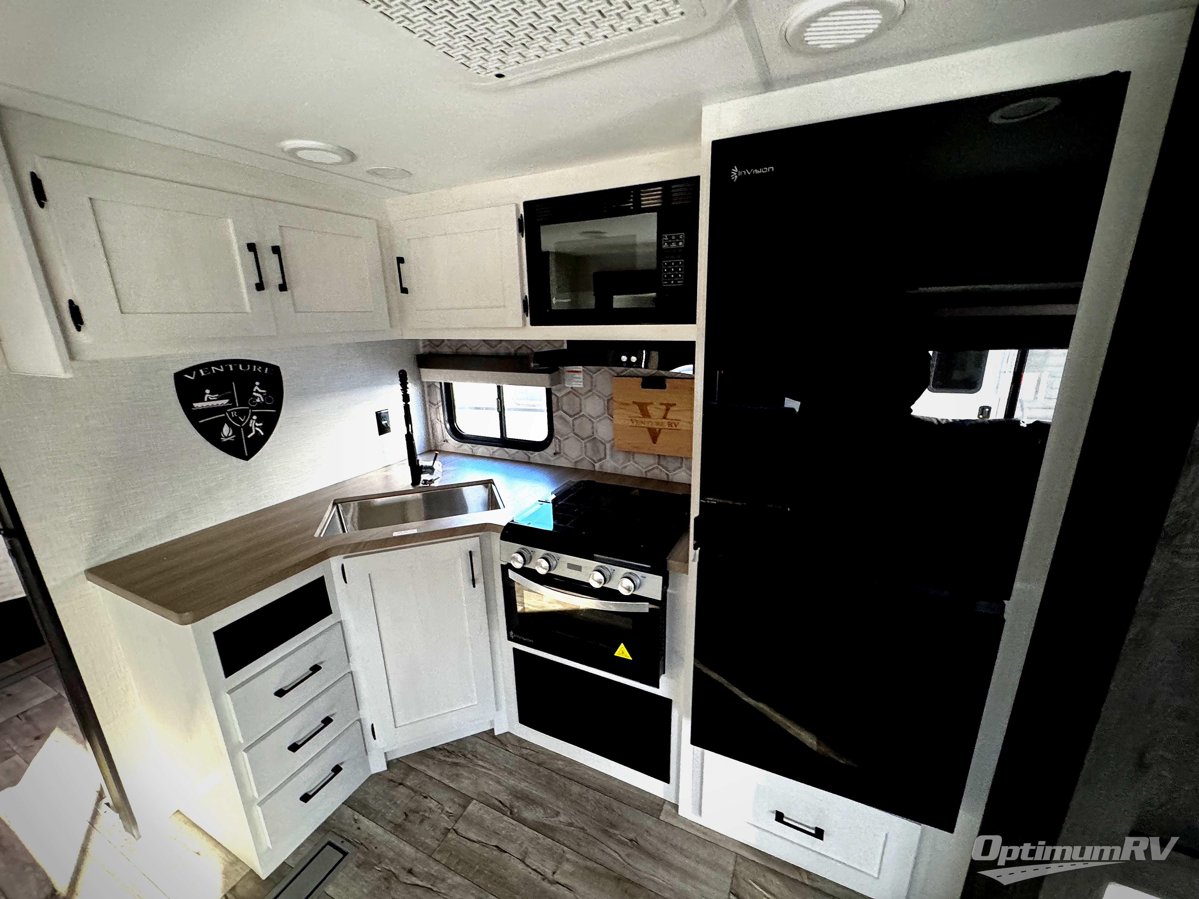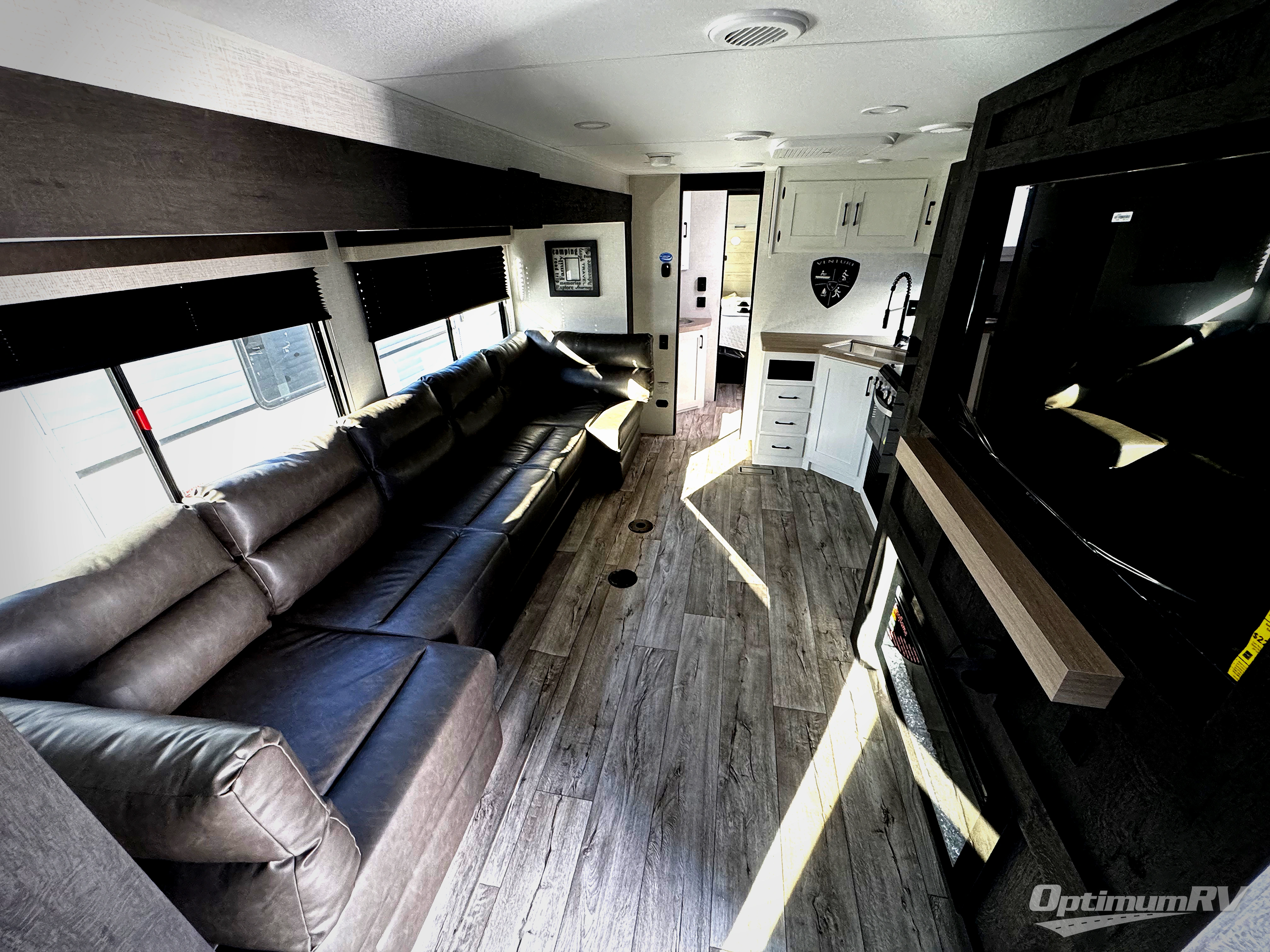 With any Sienna travel trailer by Venture RV, you will enjoy a lightweight unit, convenient amenities, and a durable construction that includes a BAL NXG-bolted frame. There is also a heated and enclosed one-piece underbelly, residential fiberglass insulation, and a reflective PVC roof membrane within the Weather-Shield Package to help extend your camping season. Outside, the BAL 5.0 power stabilizer jacks and power tongue jack will have you set up in no-time, and the Venture RV bottle opener/dog tie down will make it easy to bring your furry friends along. Head inside to enjoy the modern farmhouse design, along with Beauflor throughout with no carpet, custom backsplash, large underbed storage, and a bath skylight to name a few comforts!