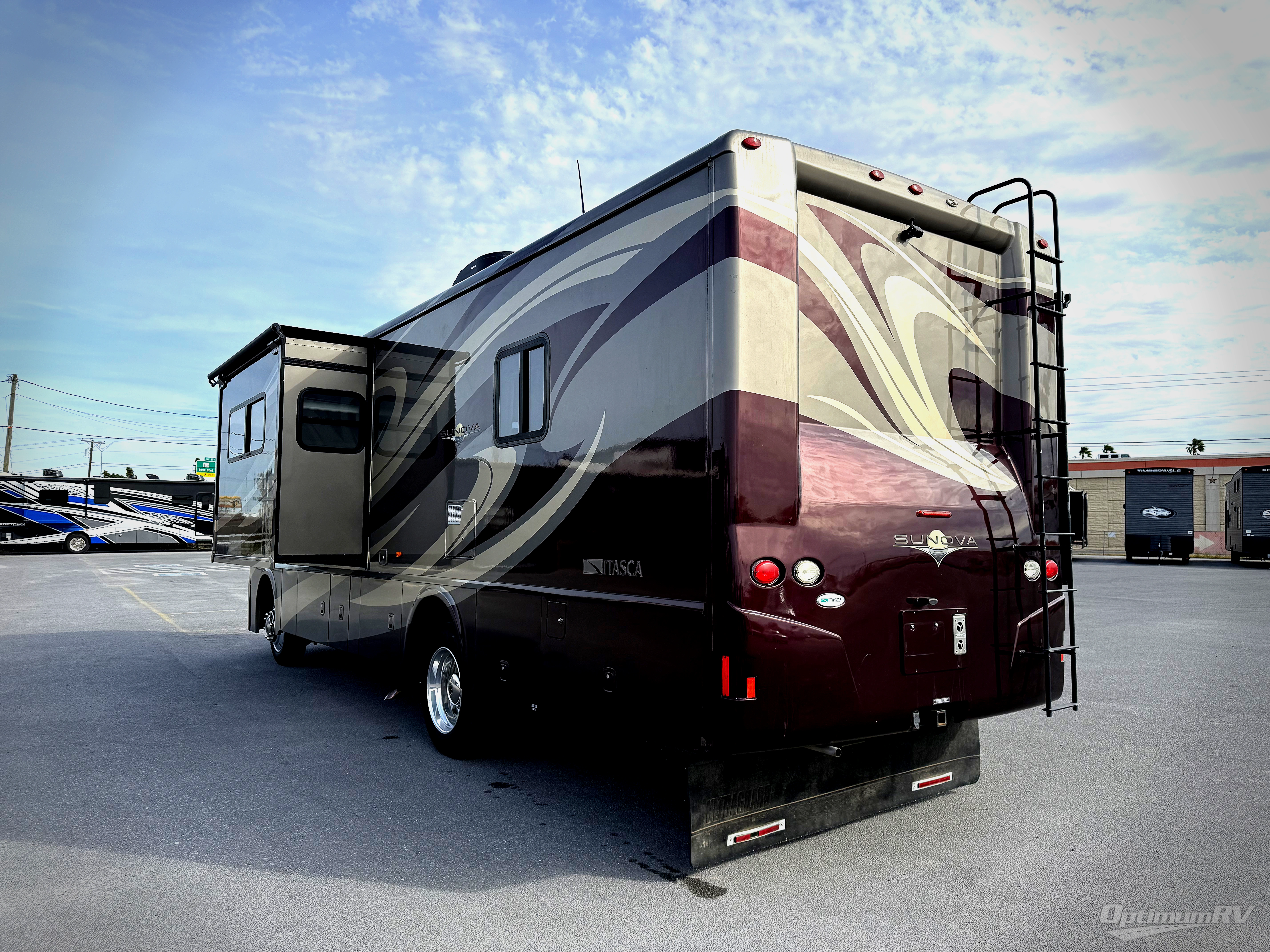 Itasca Sunova Class A Coach w/Rear Queen Bed w/Nightstands & Overhead Storage/ Pantry/Refrigerator/3 Burner Range and Dbl. Kitchen Sink Slideout, Bedroom Chest of Drawers, Wardrobe, Dbl. Sliding Door, Side Aisle Bath Including: Vanity w/Sink, Tub/Shower, & Toilet, Pantry, TV, Extendable U-Shaped Dinette Sectional Slideout, Recliner and Much More! Available Options May Include: Euro Recliner.