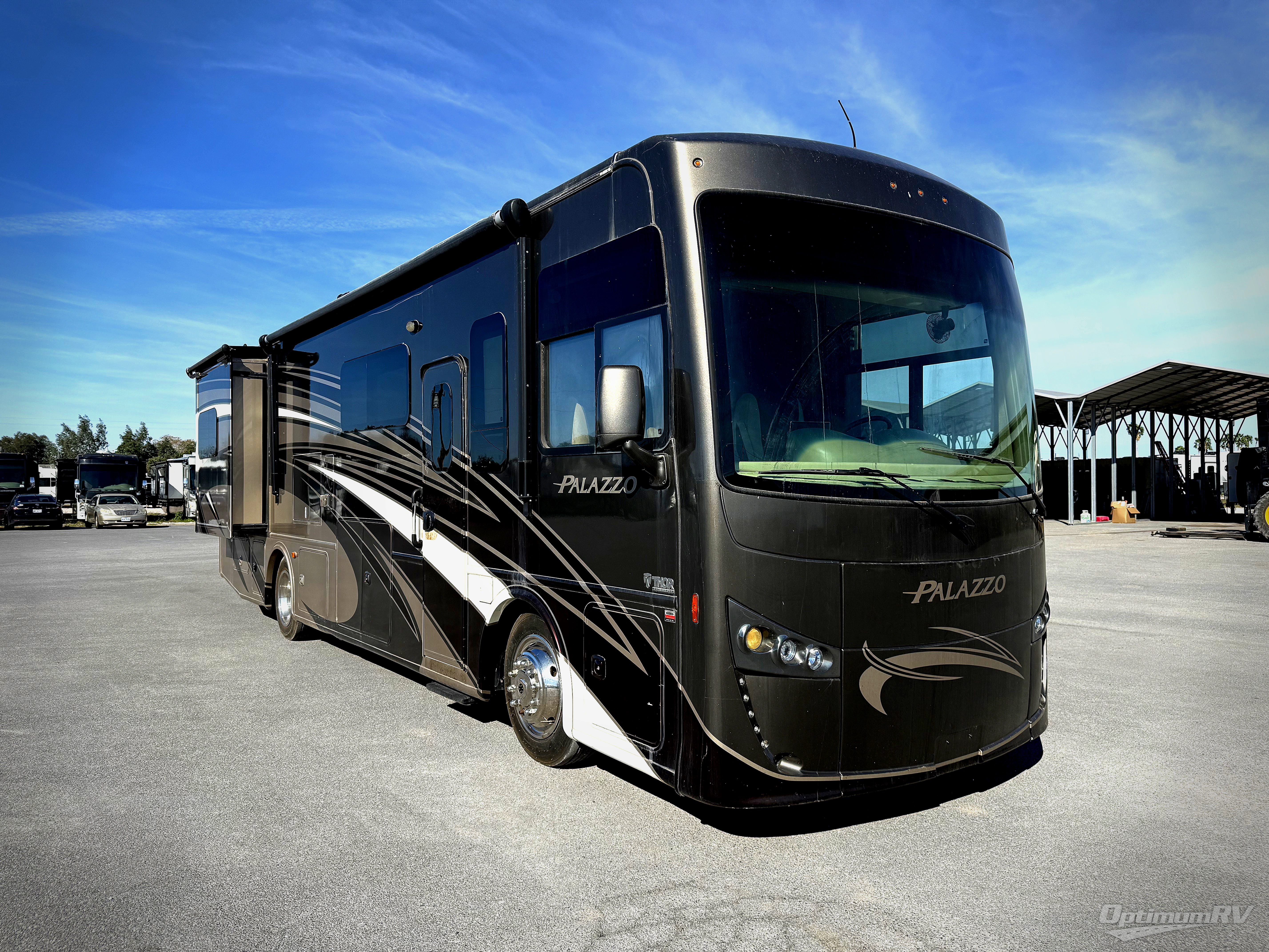 Thor Motor Coach offers this Palazzo 33.2 class A diesel motorhome with double slides for open floor space.
