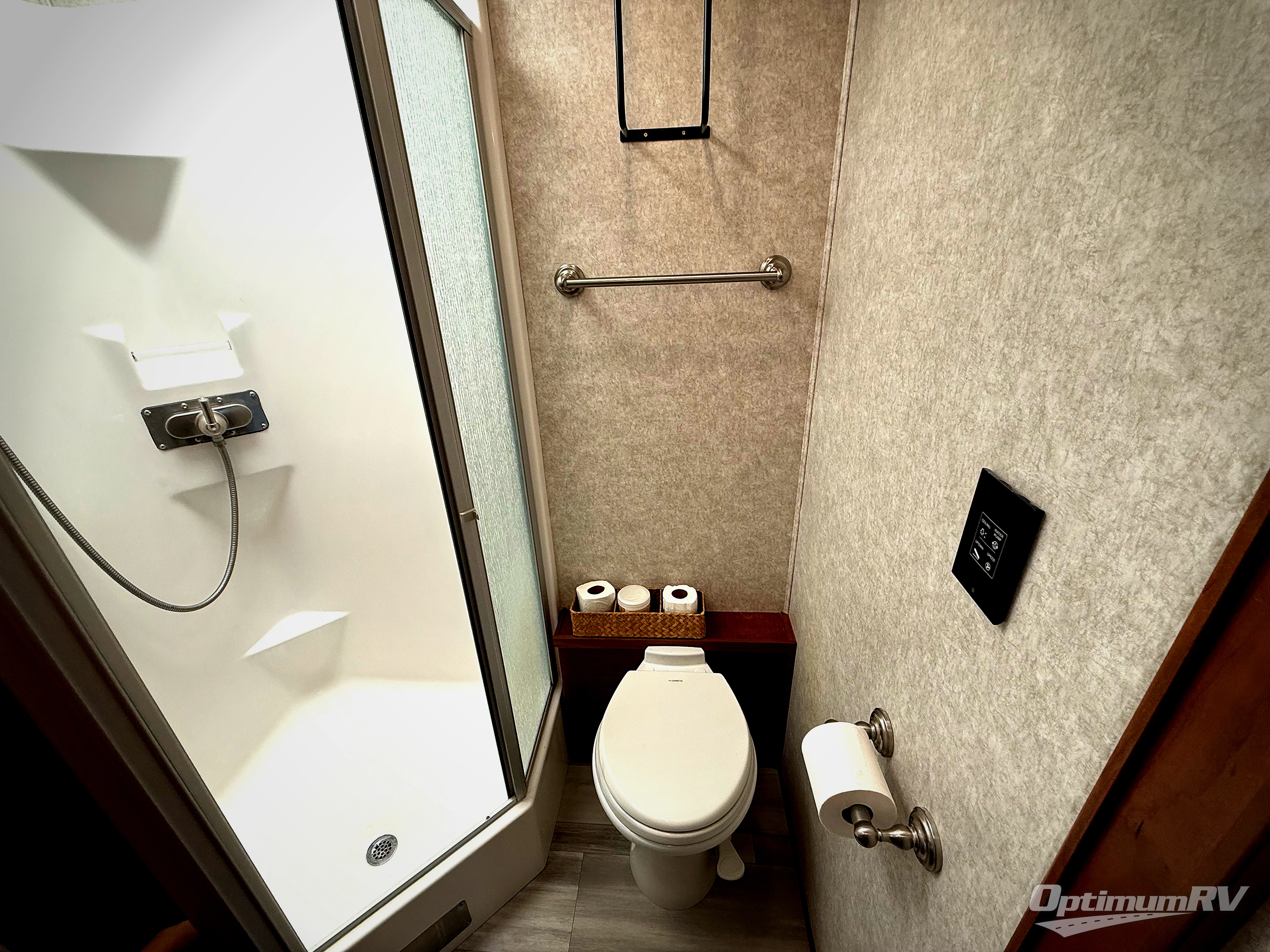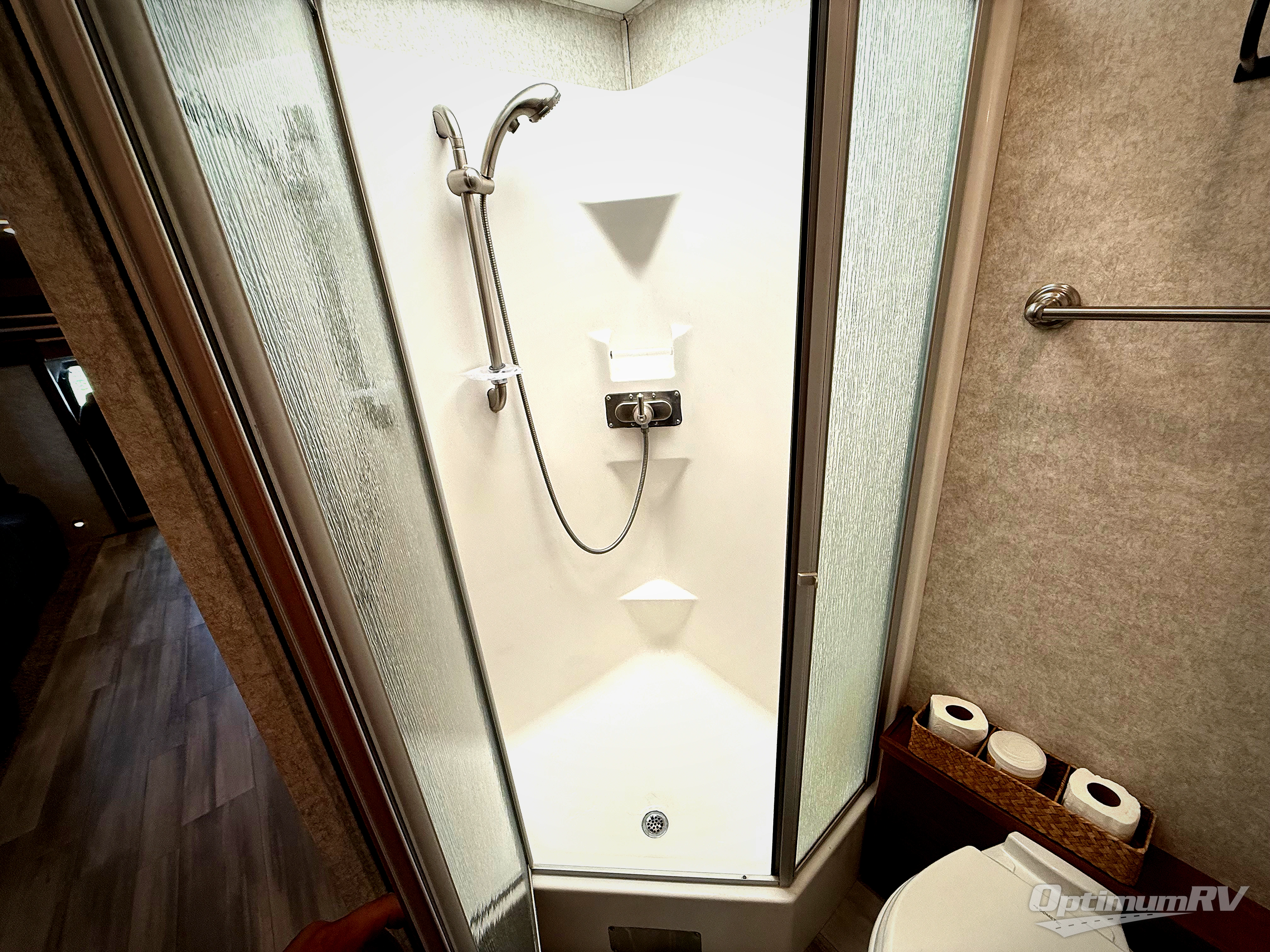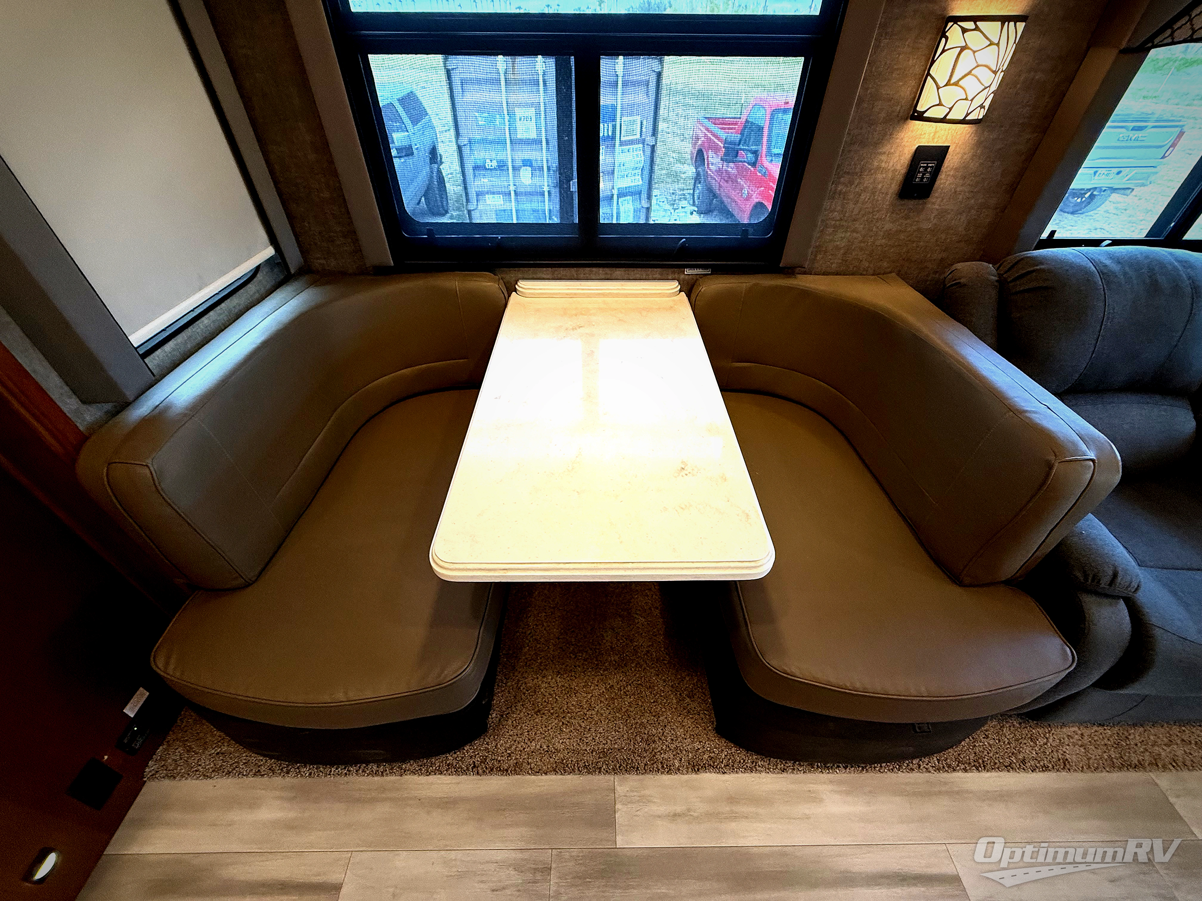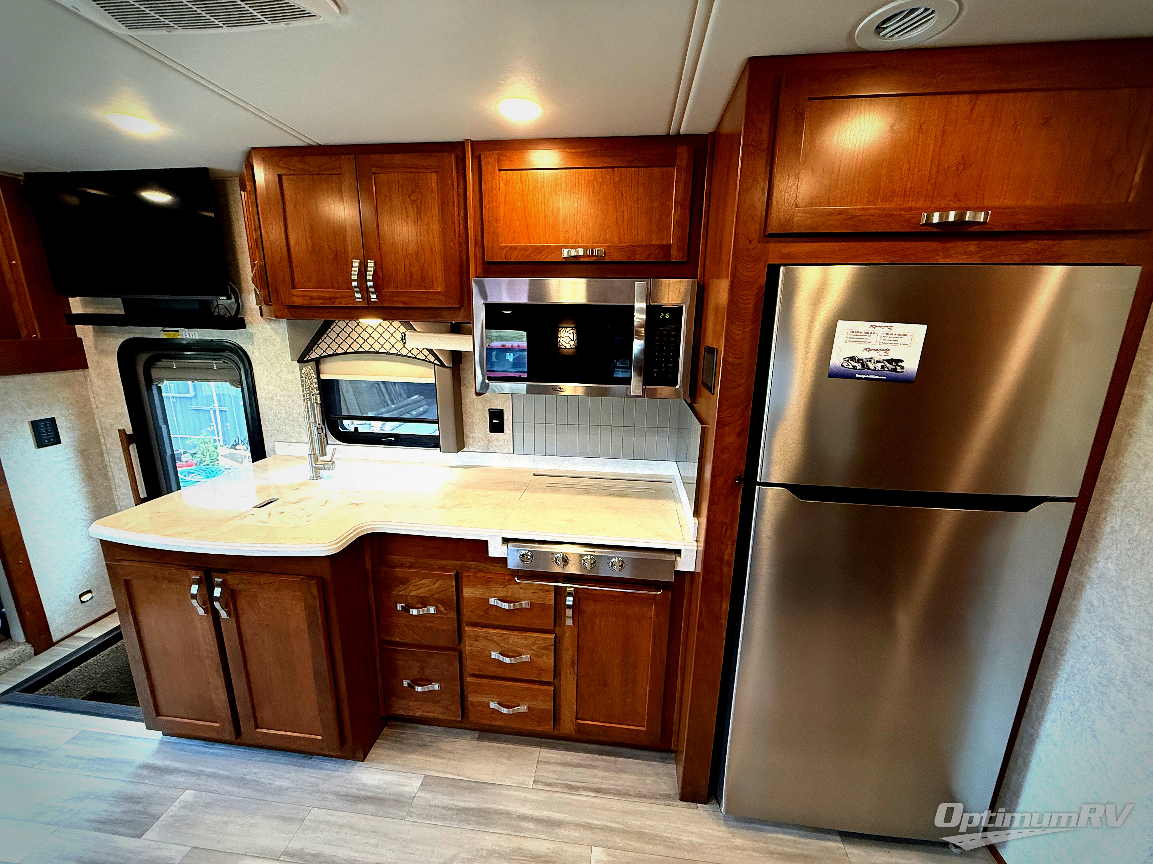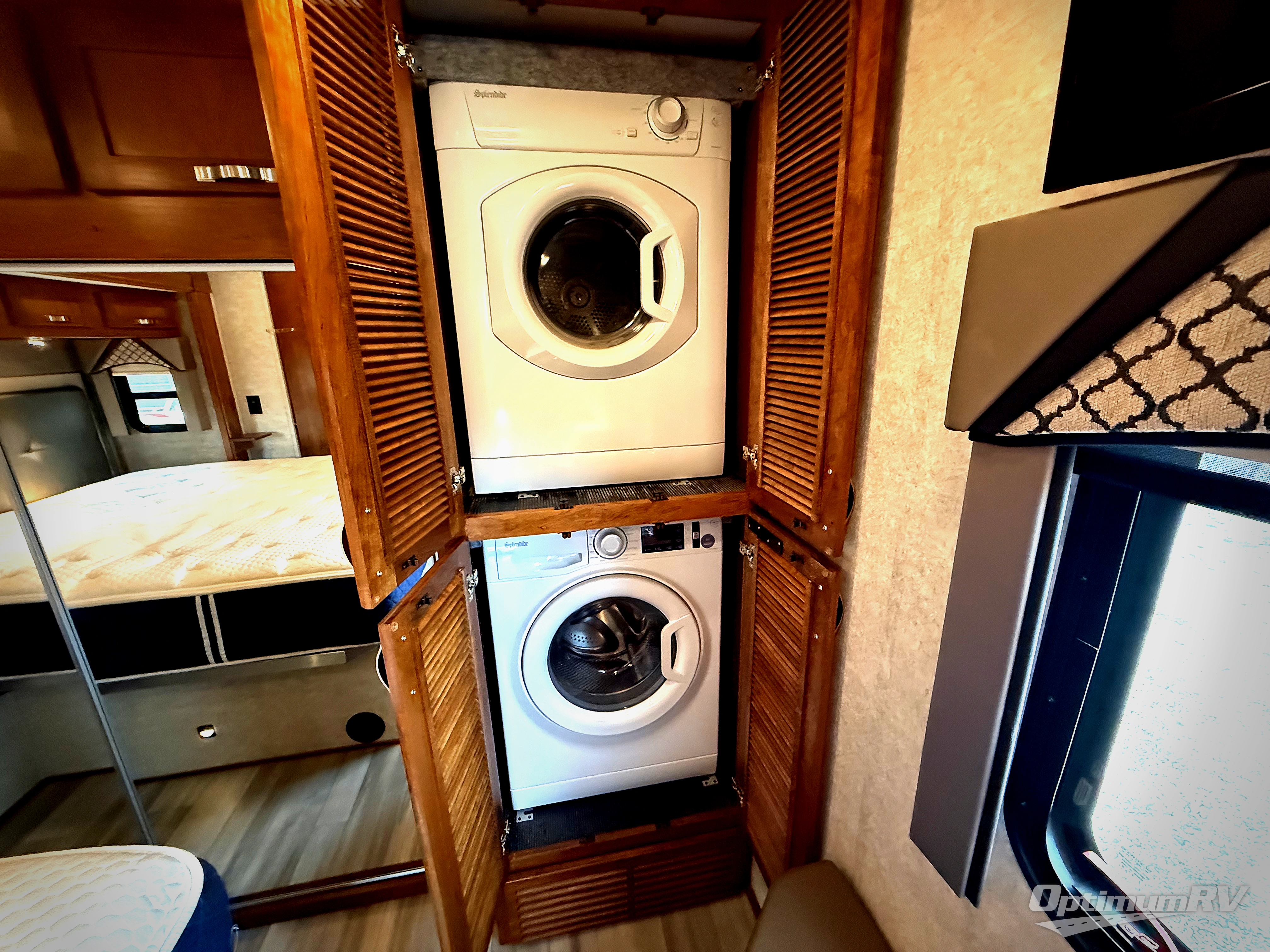 Enjoy a home on wheels with this motorhome! Start your mornings feeling refreshed and ready to go after sleeping on the 72" x 74" king bed and showering in the neo-angled shower with a skylight above and a vent to eliminate steam in the walk-through bathroom. The bedroom also has a 32" TV with a cedar chest, a dresser with overhead cabinets, a large wardrobe, and an area prepped to add an optional washer and dryer. You can prepare your best meals with the three burner cooktop and 19 cu. ft. refrigerator and enjoy them at the booth dinette. The hide-a-bed sofa and 60" x 80" bunk over cab offer comfortable sleeping spaces for extra guests too!