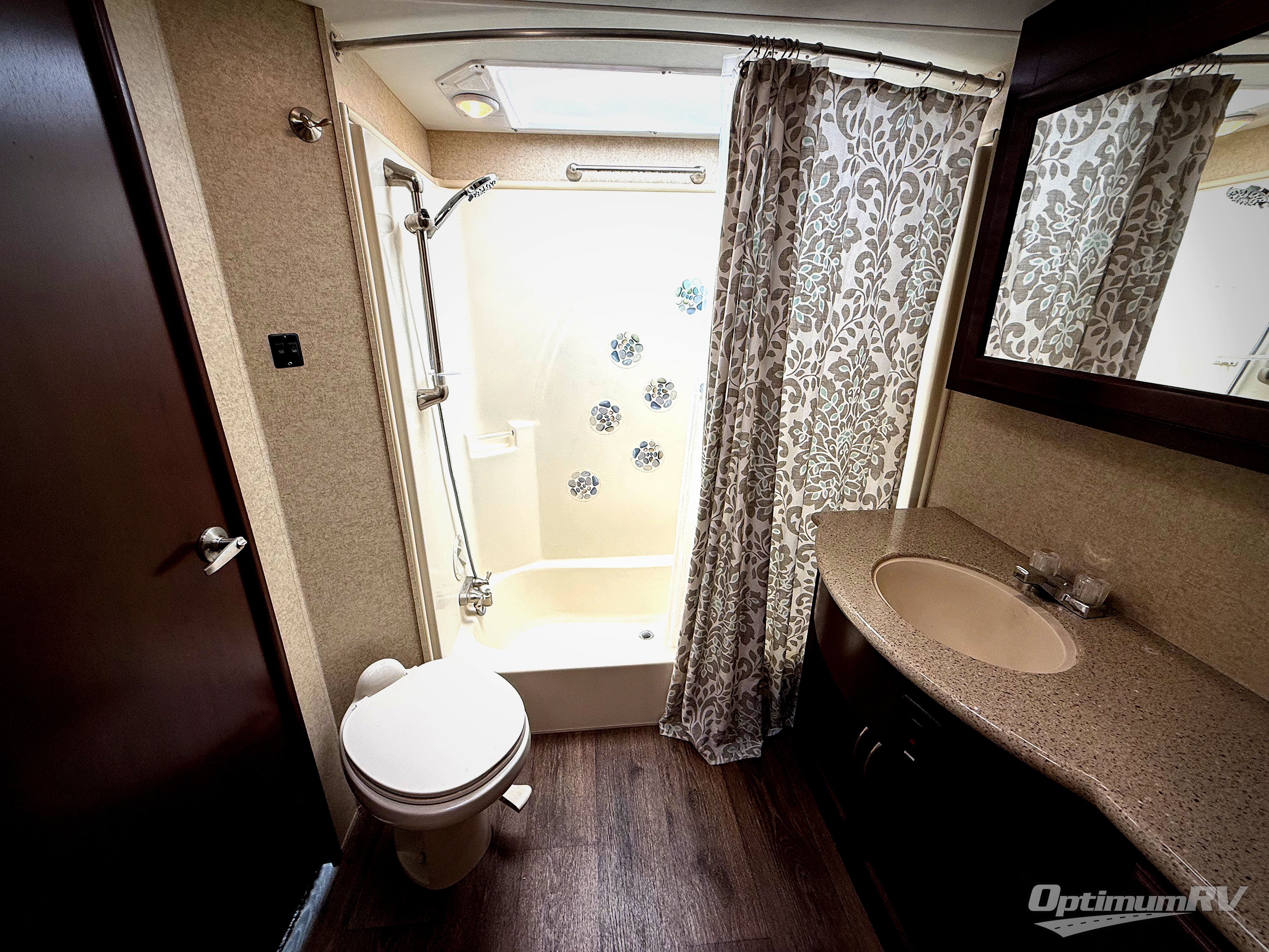 The rear 12' cargo garage will help you easily take along some toys. The rear 8' ramp door makes loading and unloading a snap. There is also a side man door for added convenience also. Inside find plenty of space for your toys, plus corner overhead cabinets, and a half bath. Plus you can add the optional electric queen bed with split bench seat/bed for extra guests, and so much more!