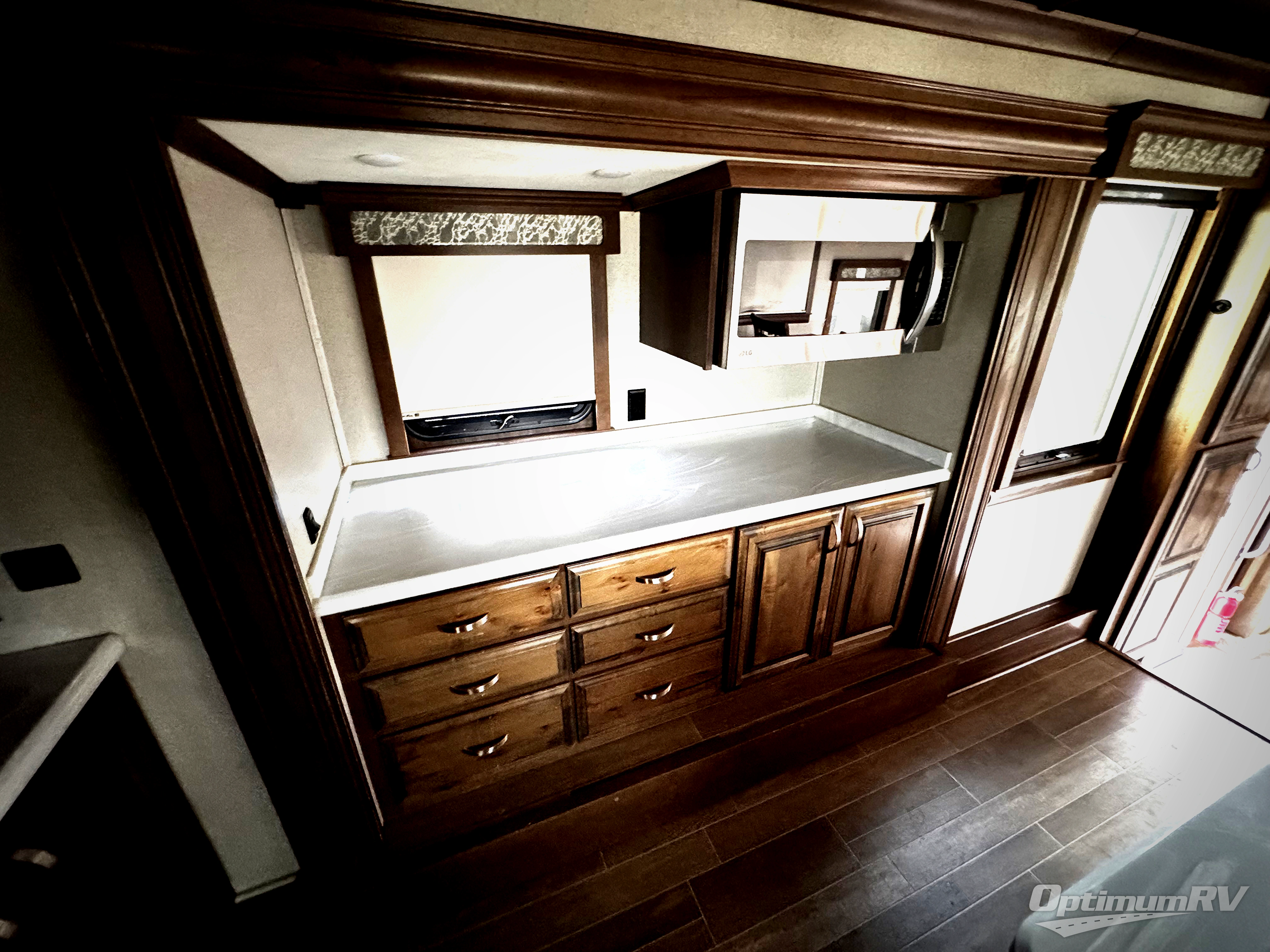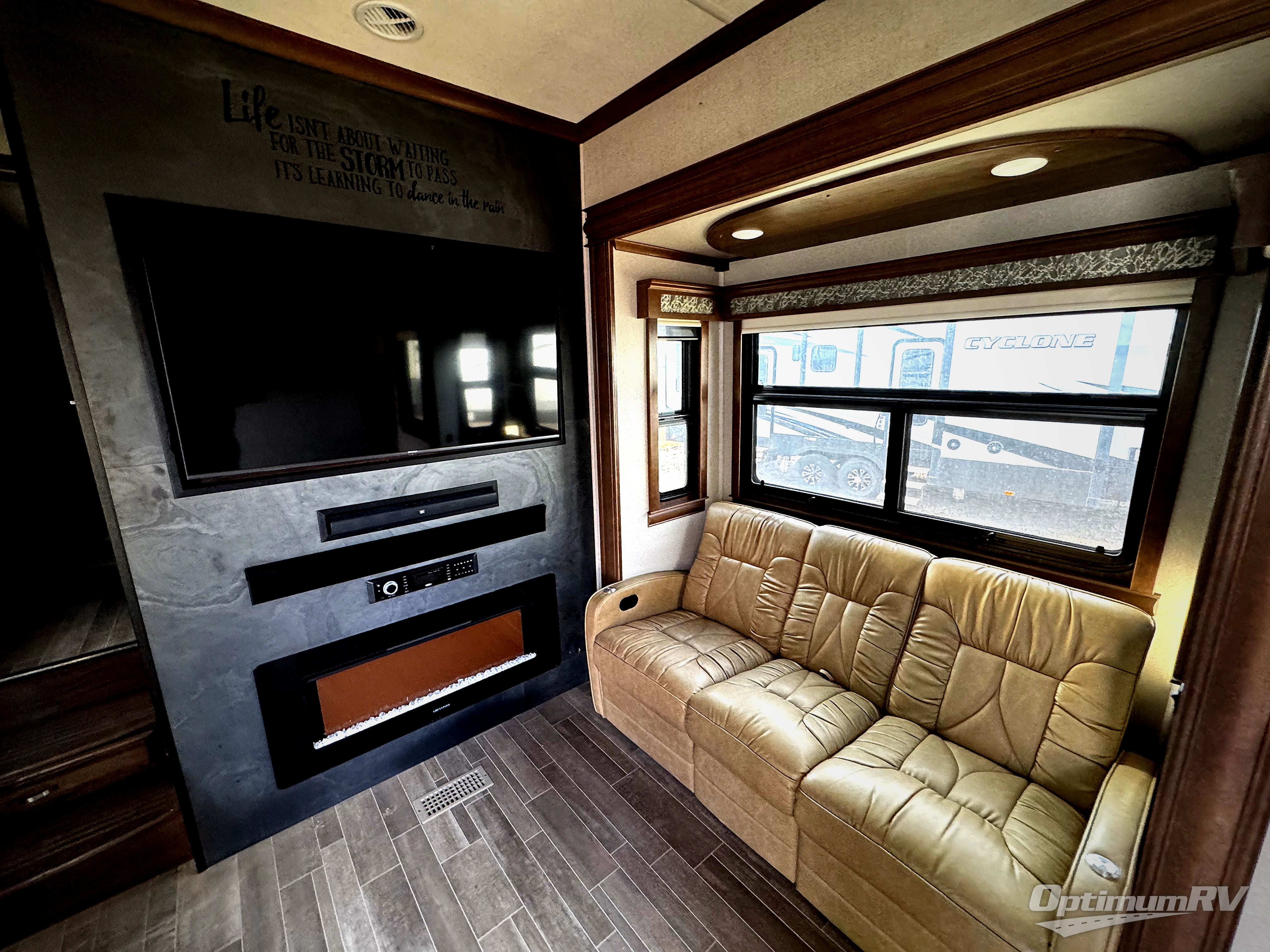 This RiverStone 39FKTH toy hauler fifth wheel gives you all of the at-home comforts plus the convenience of bringing along a few dirt bikes or a four wheeler. Whether you are traveling near or far you can easily load an unload your big toys with the zero gravity ramp door. After you are done playing outside for the day then come relax in the living area where you will find two hide-a-bed sofas and a set of theater seats. You can warm up at the fireplace or enjoy watching a movie or show at the 60" LED Smart TV with a premium soundbar and DVD player/stereo. In the front kitchen you will find plenty of counter space for meal prep as well as an island with a double sink and a dishwasher for cleanup to be a breeze!
