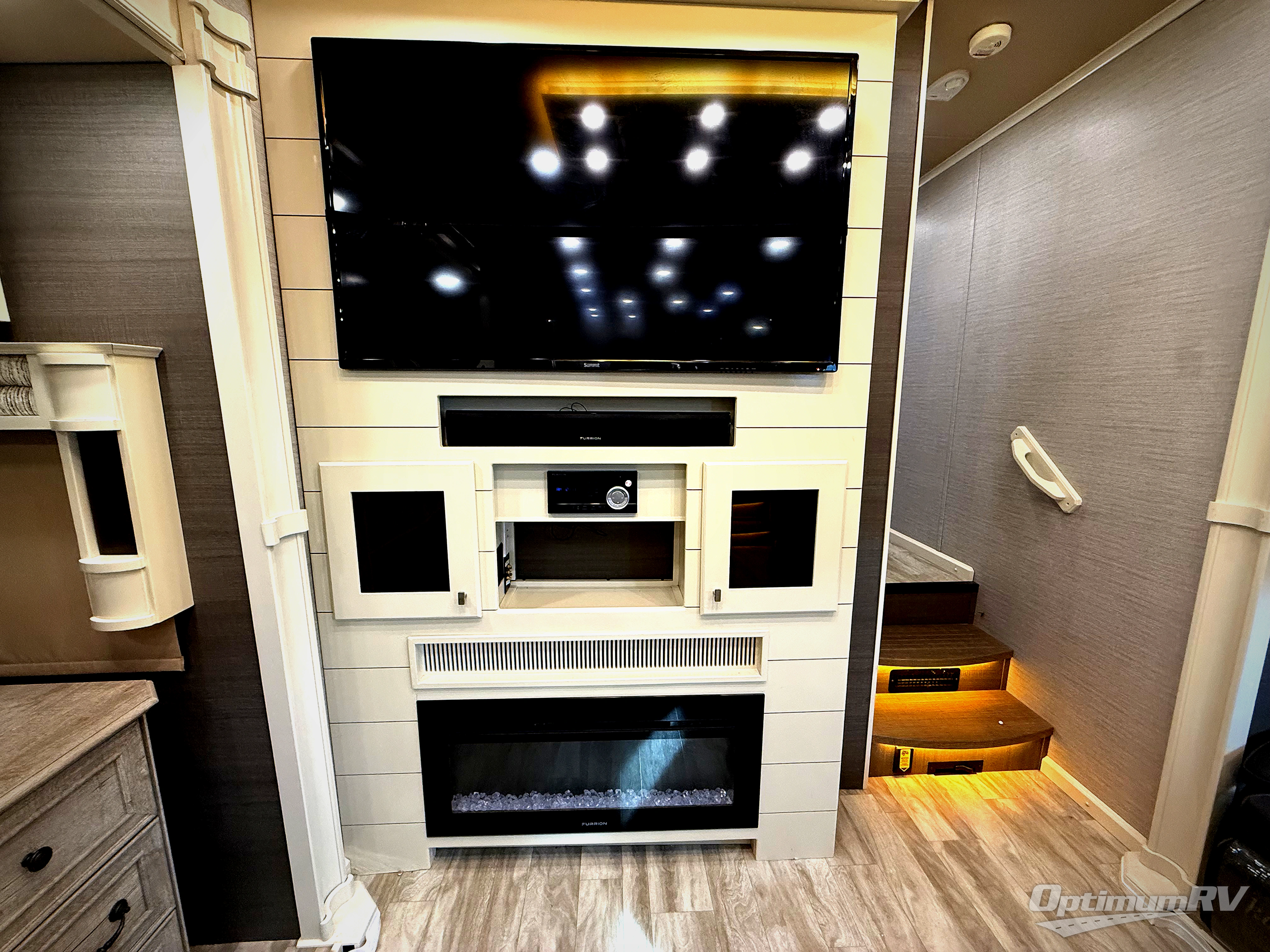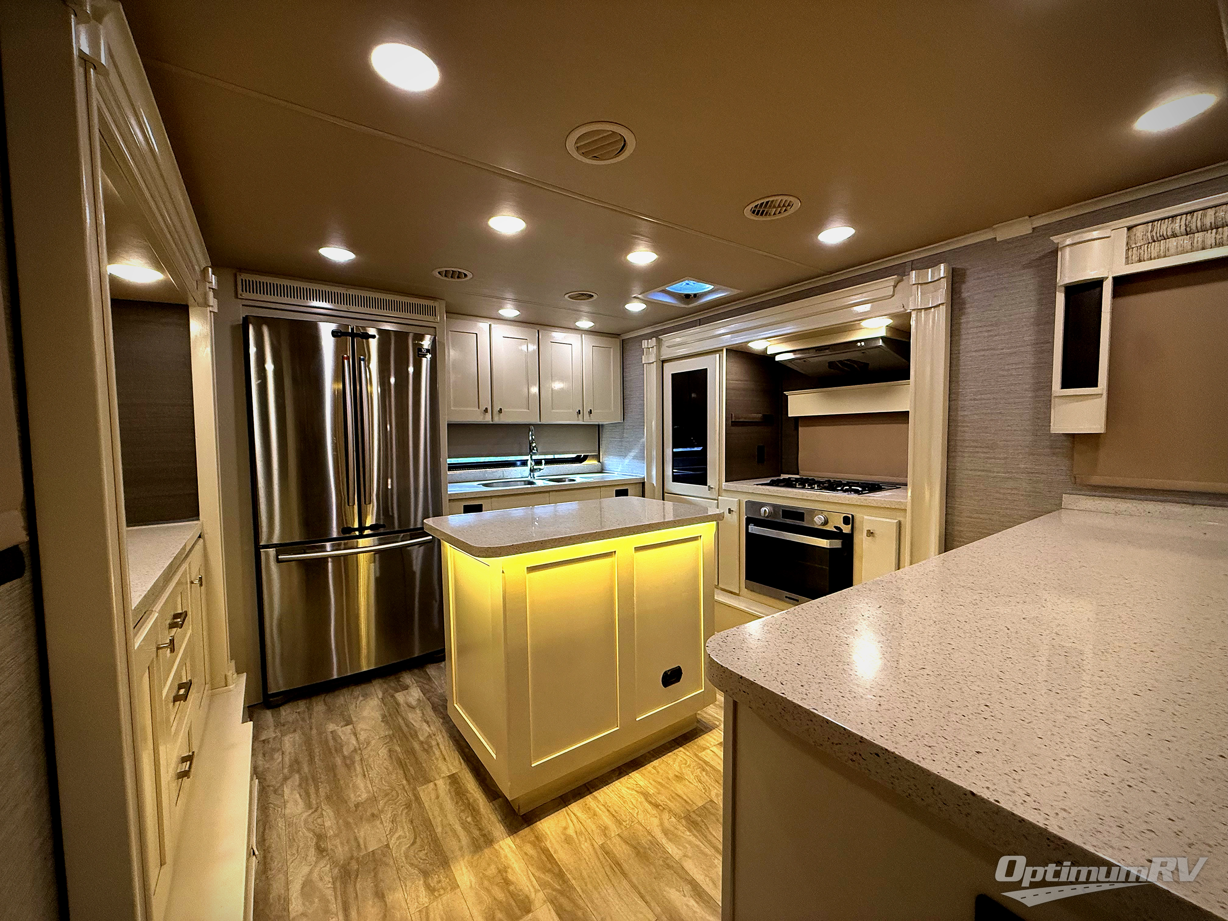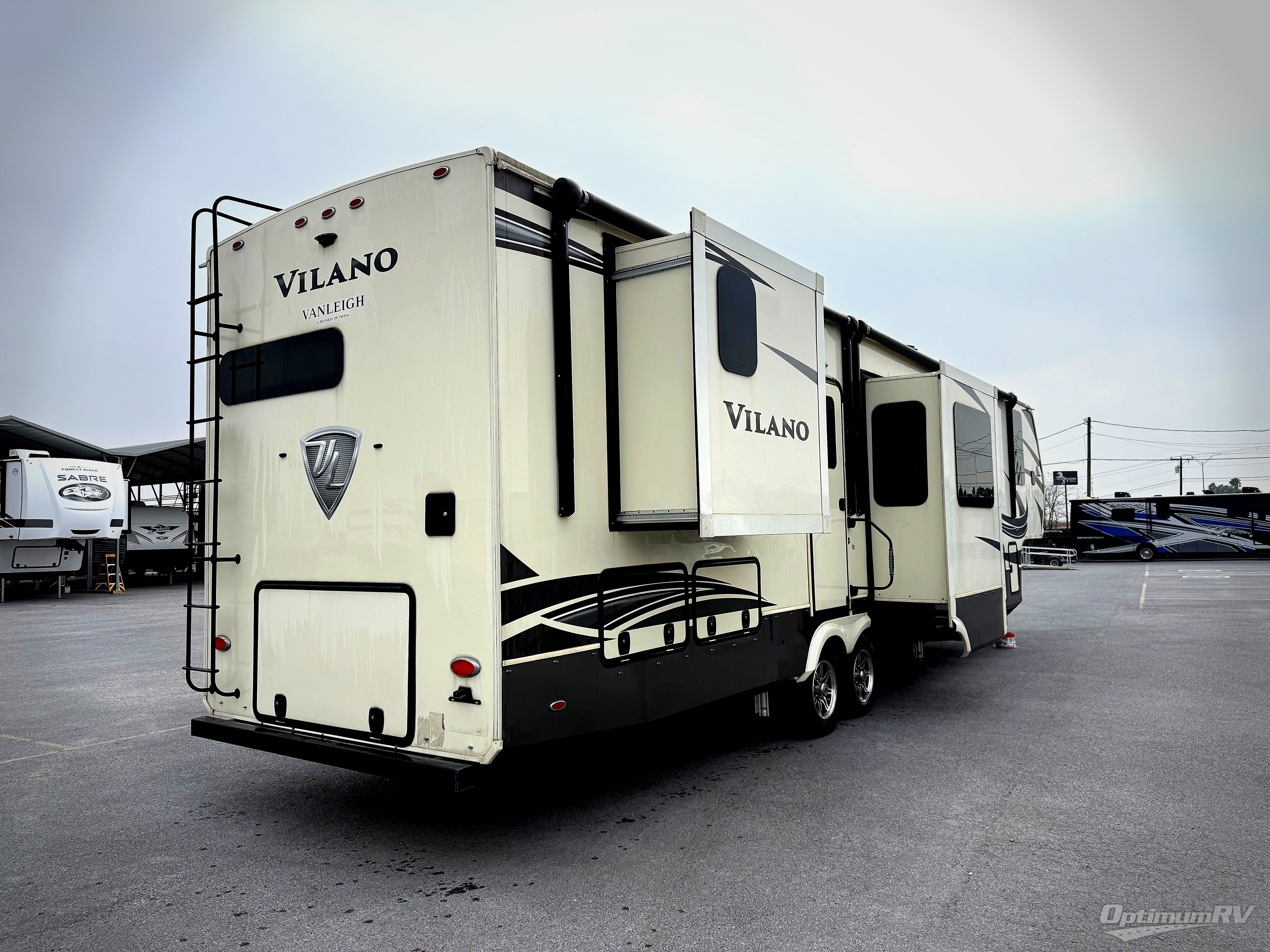 With each Vilano fifth wheel by VanLeigh you will enjoy many luxurious features that will make you feel you're at a resort instead of camping. Each model features a full profile ceiling throughout, high quality residential Franklin furniture that is made in the U.S.A, solid surface kitchen countertops, plus recessed LED ceiling lighting throughout. All of your entertainment needs will be met with an LED TV in the living area and a 32" TV in the bedroom, a sound bar with surround sound, plus an entertainment center with Bluetooth, DVD, and Aux controls. There is even exterior speakers that will allow you to be the life of any campground. Some of the other exterior features you are sure to love is the LED exterior lighting system, the motion-lit pass through storage compartment, plus the fully enclosed and heated underbelly with heat return will allow you to extend your camping season for year round fun!