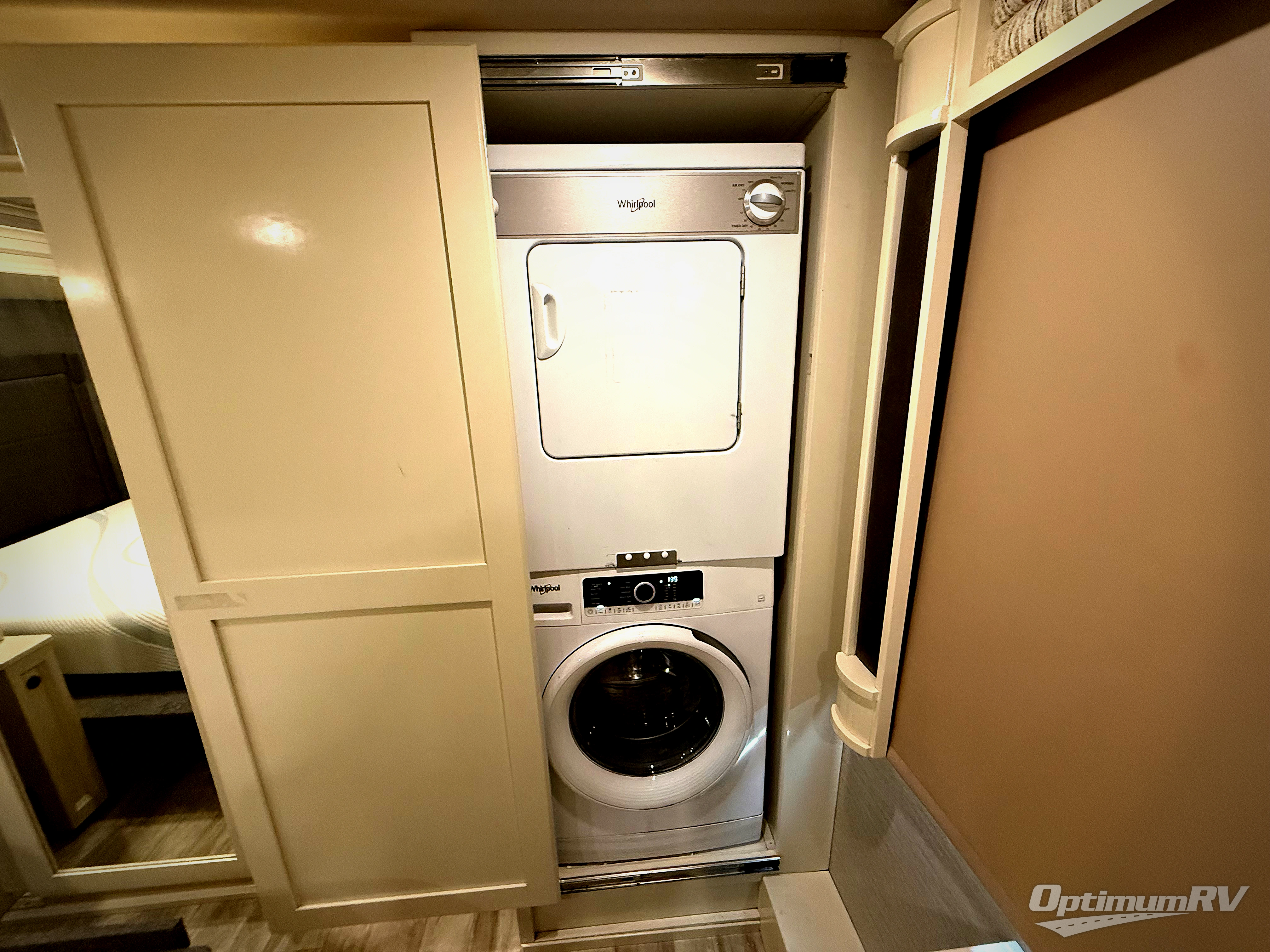 Nothing says luxury like this fifth wheel packed with high-end features to make you feel right at home. The chef of the family will love the rear kitchen with an island that includes overhead lighting as they prepare dinner. The kids can sit at the bar-style dining table to play a game of cards, and the residential refrigerator can hold all your food for the week. Head to the middle living area where you can relax on the theater sofa that is directly across from the 55" TV and 40" fireplace. There are also two tri-fold sofas here that will provide comfortable sleeping arrangements for the grandkids. This model includes a large full bath with a space-saving pocket door, plus two bath sinks so two people can freshen up at once. Mom and dad will love the front private bedroom with its slide out king bed, large front closet, plus a dresser and a window seat cabinet for all their things. There is even a space that has been prepped to add an optional washer and dryer if you choose. What's stopping you from gong full-time RVing in this fifth wheel!?