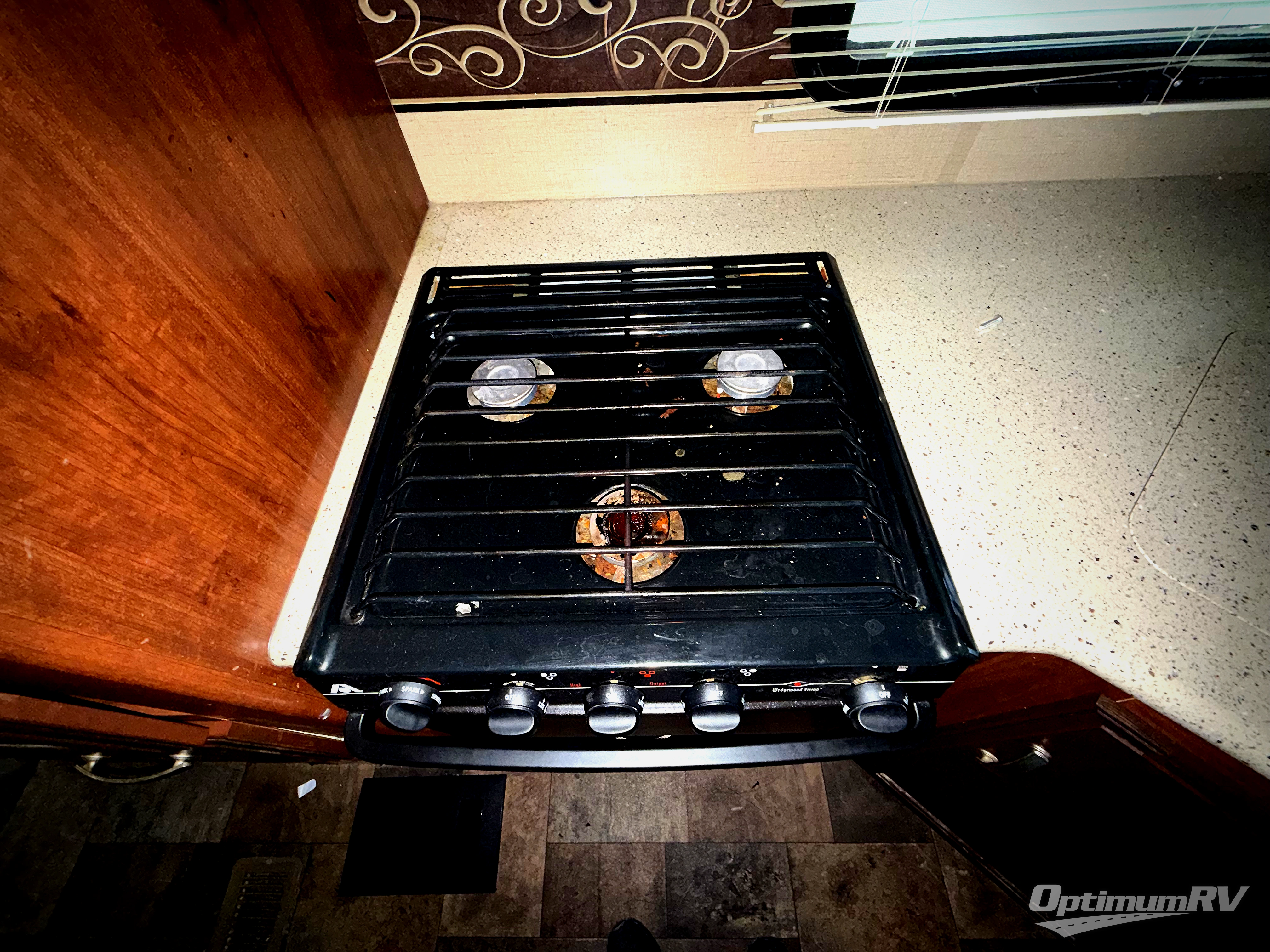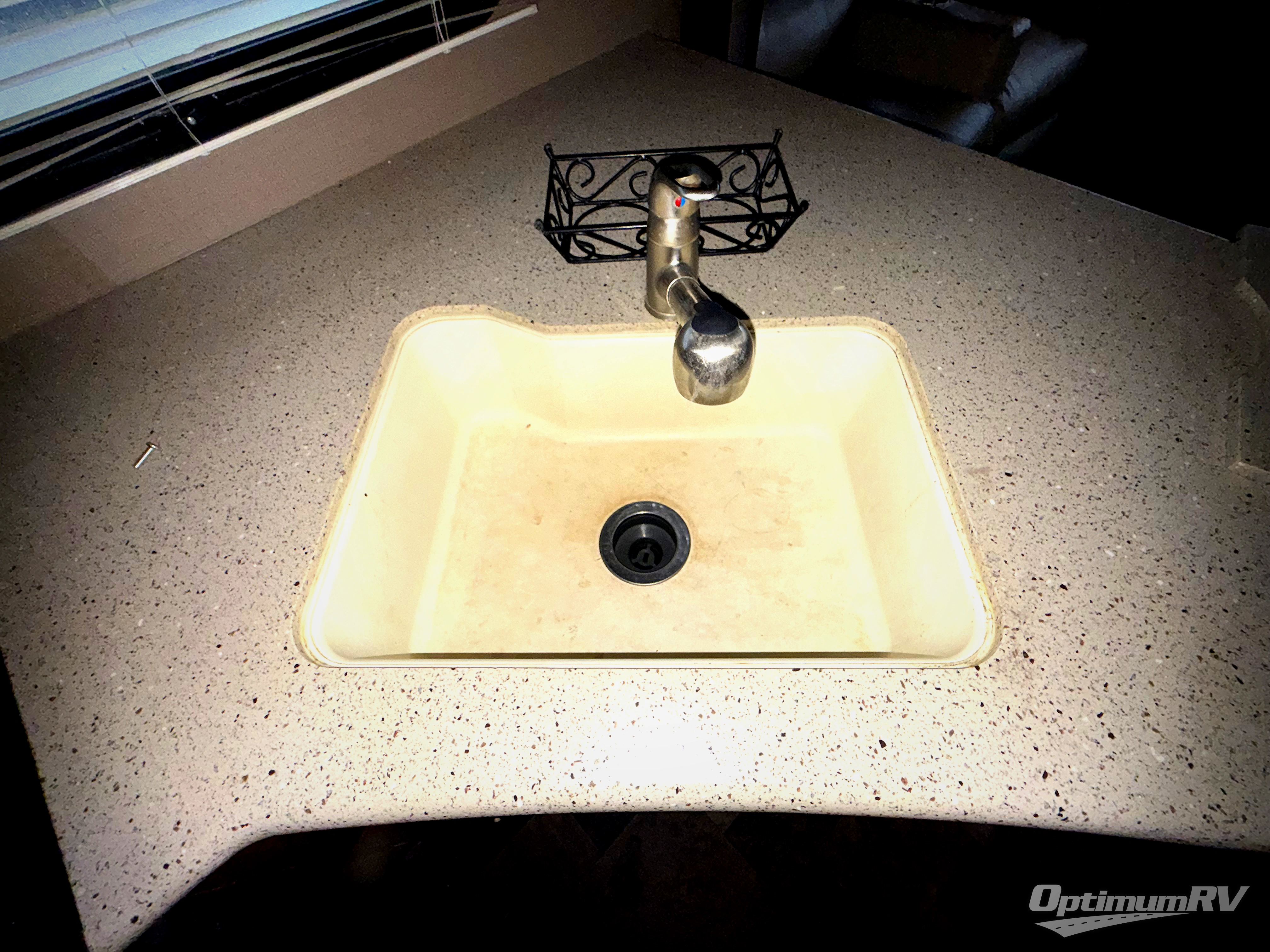 Outside notice the handy outside camp kitchen which features a single sink and dual burner cook top. The front pass-through storage compartment will also allow you to stow away all of your outdoor camping gear, and so much more!
