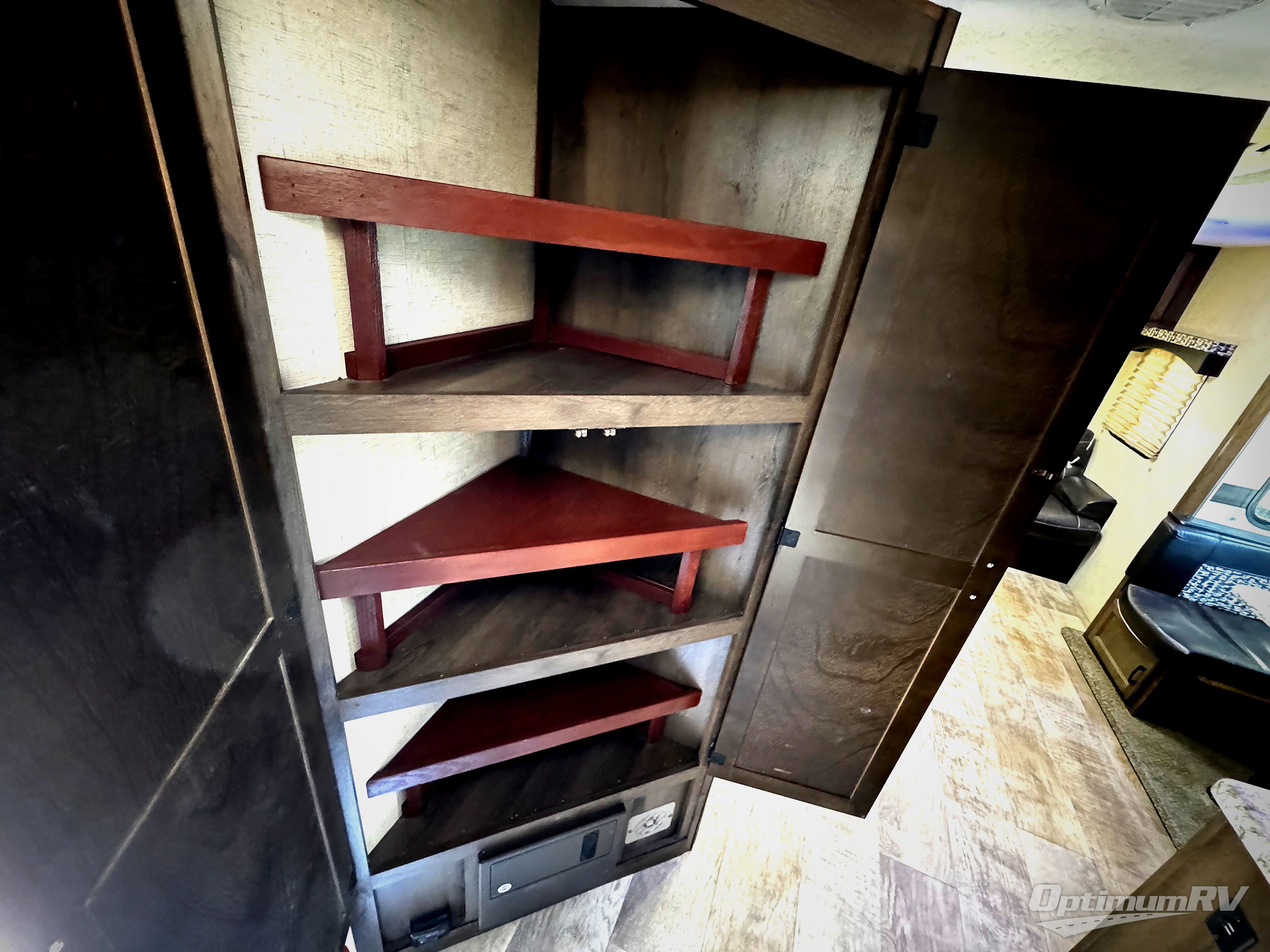 There are plenty overhead cabinets and storage locations inside and outside including the pass through compartment and trunk door along the exterior.