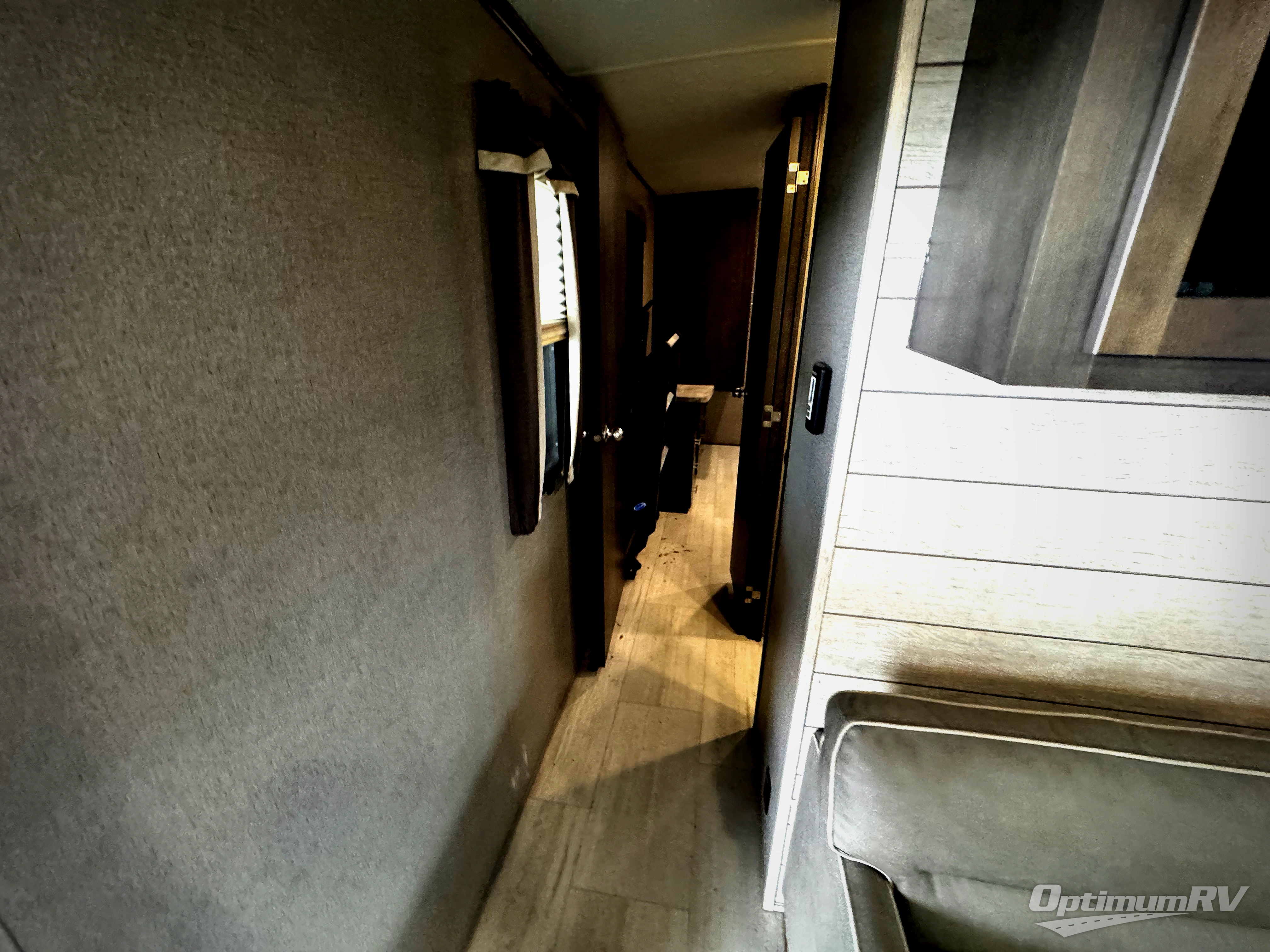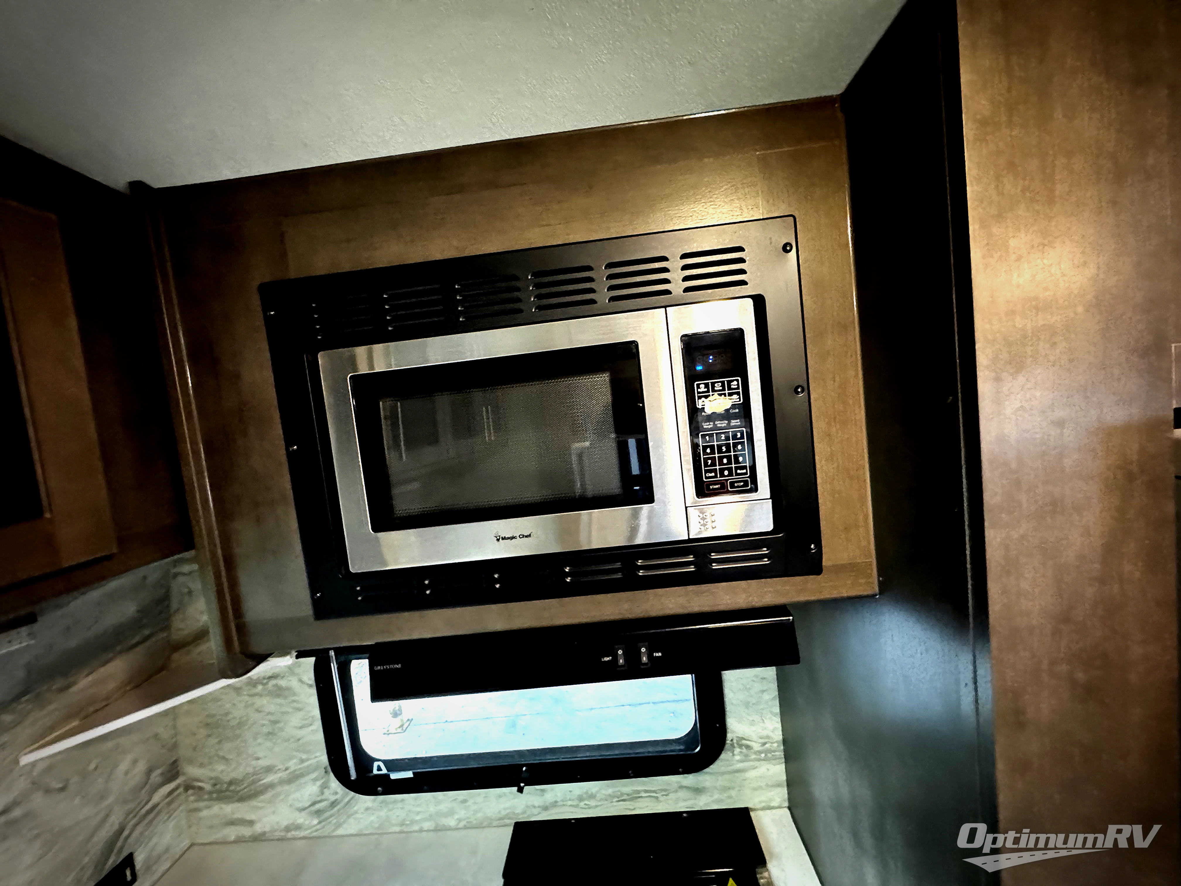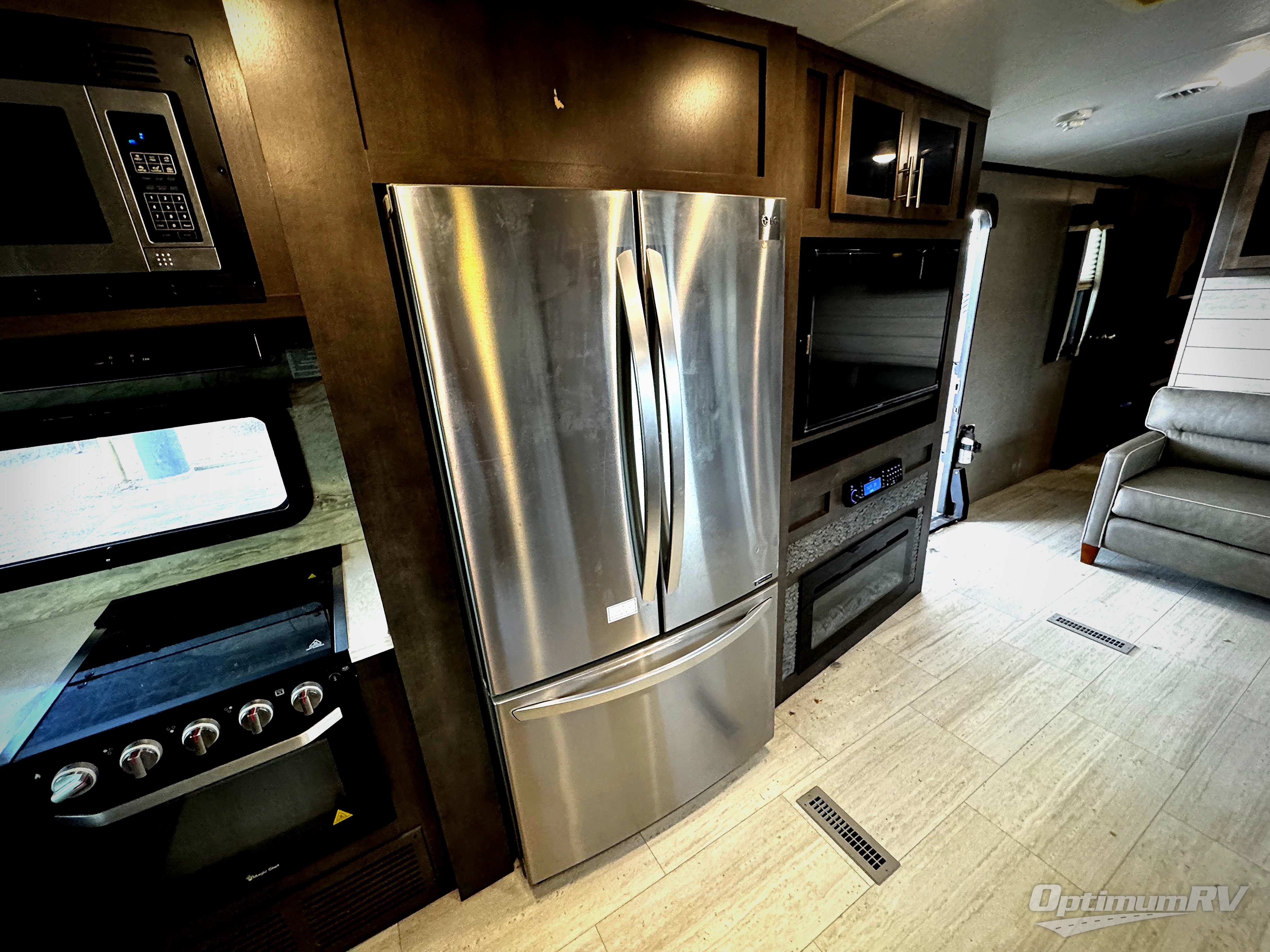 This travel trailer includes many at-home comforts and all the conveniences you need while camping with family. The front kitchen includes ample counter space and the pantry will come in handy for paper goods and snacks. You'll find comfortable seating space on the dinette booth, hide-a-bed sofa, and theater seat and the LCD TV with a fireplace will provide all your entertainment needs. This model features a rear private suite with its own exterior entry door, access into the dual entry bath, and a space that has been prepped to add a washer dryer if you choose.