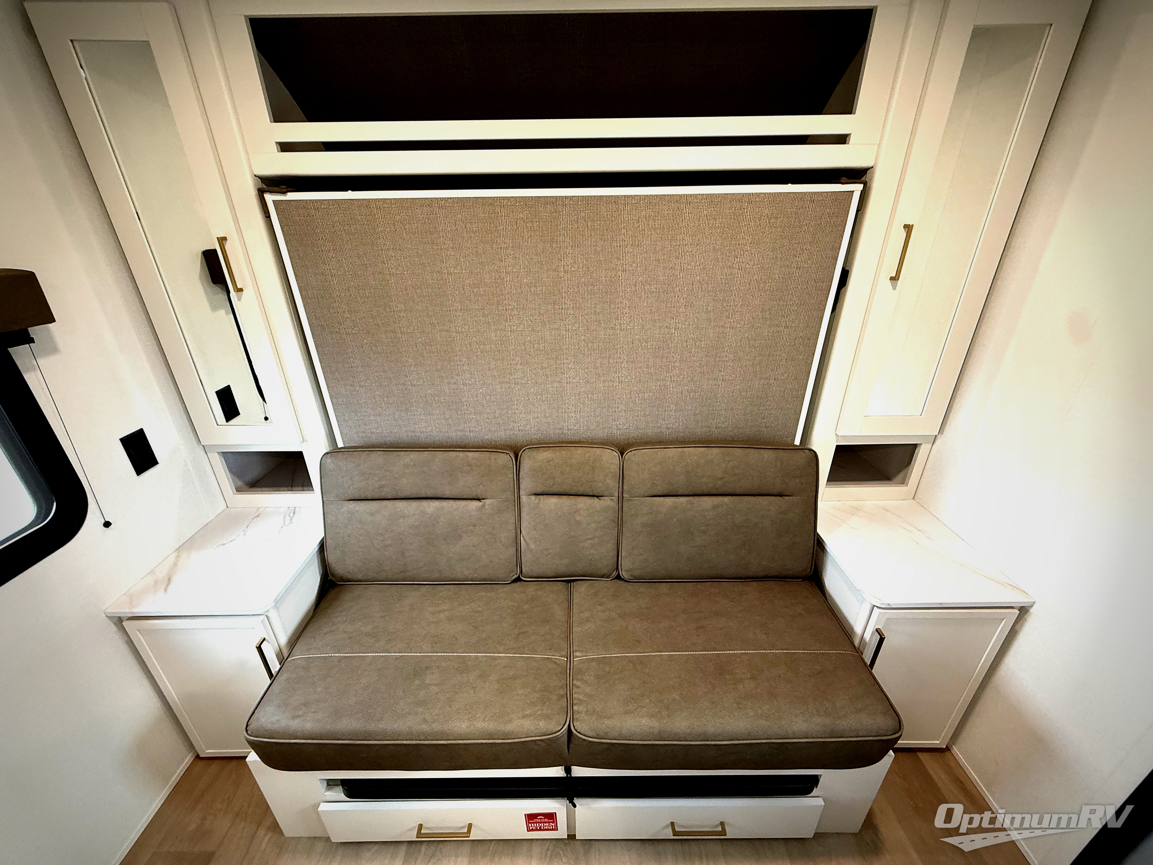 This is the perfect couple's trailer with versatile seating and sleeping space! You'll find a queen-size Murphy bed up front with storage space beside and above plus a full rear bath for added privacy. Once you've made lunch in the full kitchen, you can dine at the booth dinette or take your plate outdoors to sit under the 10' power awning. You'll also find pass-thru storage outside that will be perfect for fishing poles, lawn chairs, tools and more!